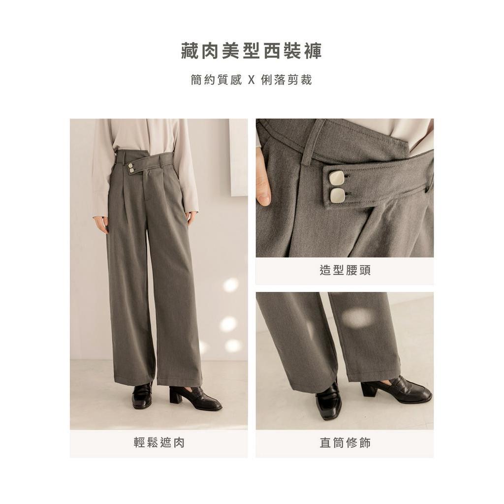 OB嚴選 造型腰頭不易皺打褶直筒西裝褲 《BA6990》大尺碼/現貨/女裝深灰,3L|奶茶,S|奶茶,L|奶茶,XL|奶茶,2L|深灰,M|深灰,L|深灰,2L|奶茶,3L|深灰,S|深灰,XL|奶茶,MPantsOB嚴選官方旗艦店