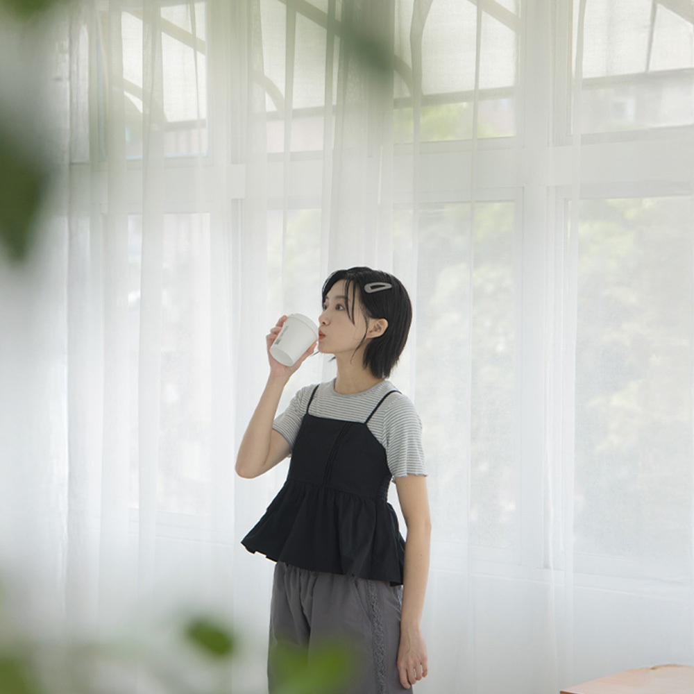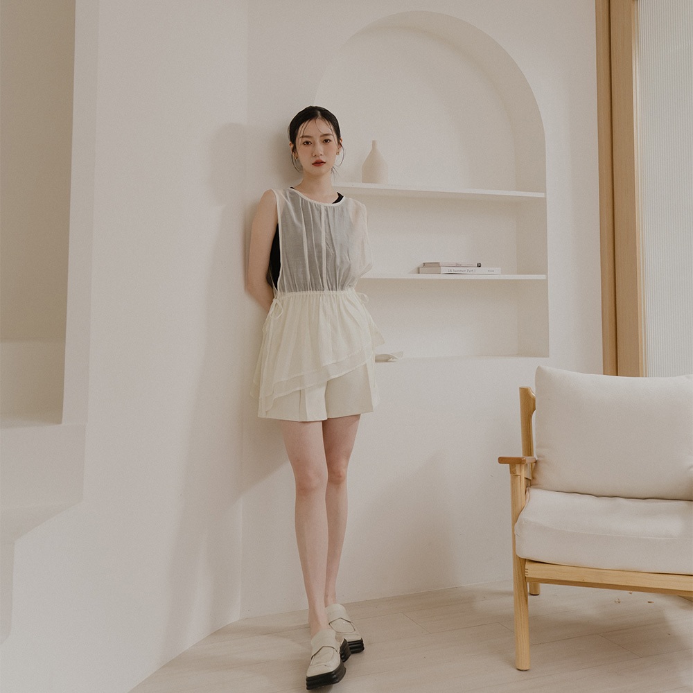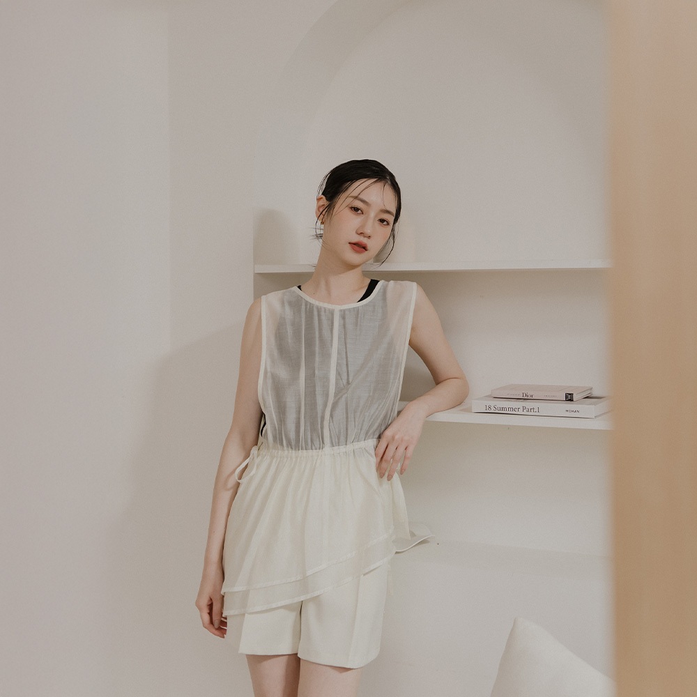QUEENSHOP_ S 女裝 光澤透膚腰間抽繩設計背心-杏 現+預 【01098831】杏Tanks & CamisolesQUEENSHOP