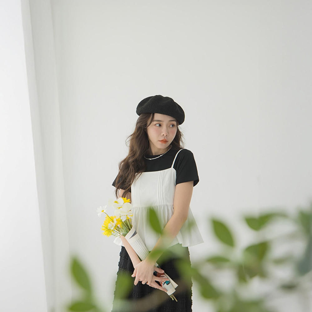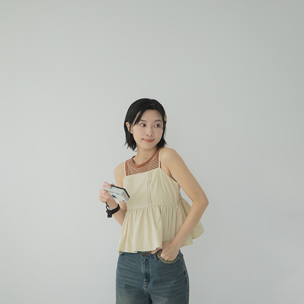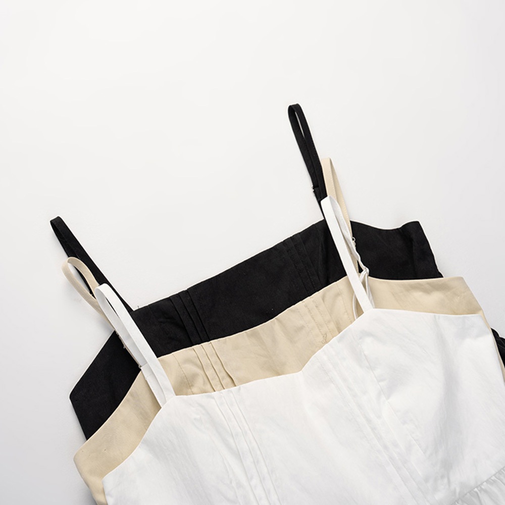 QUEENSHOP_ S 女裝 壓褶線條後鬆緊傘襬背心 三色售 現+預 【01099009】黑|白|卡其Tanks & CamisolesQUEENSHOP