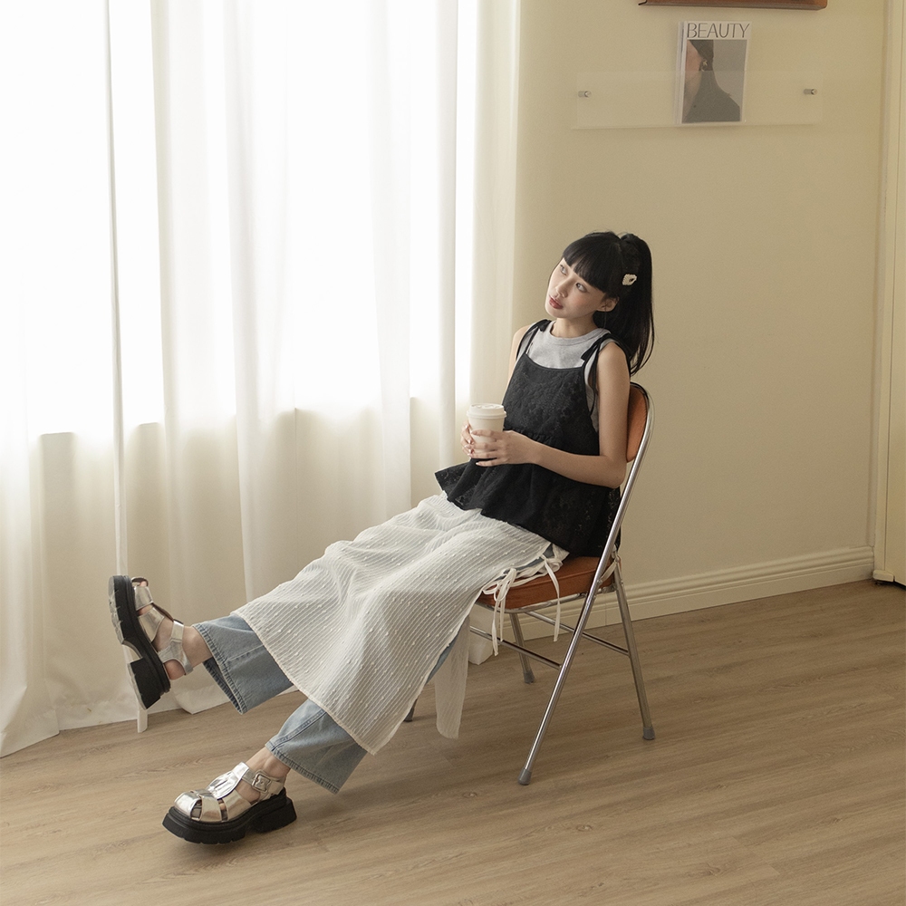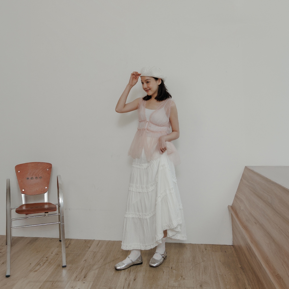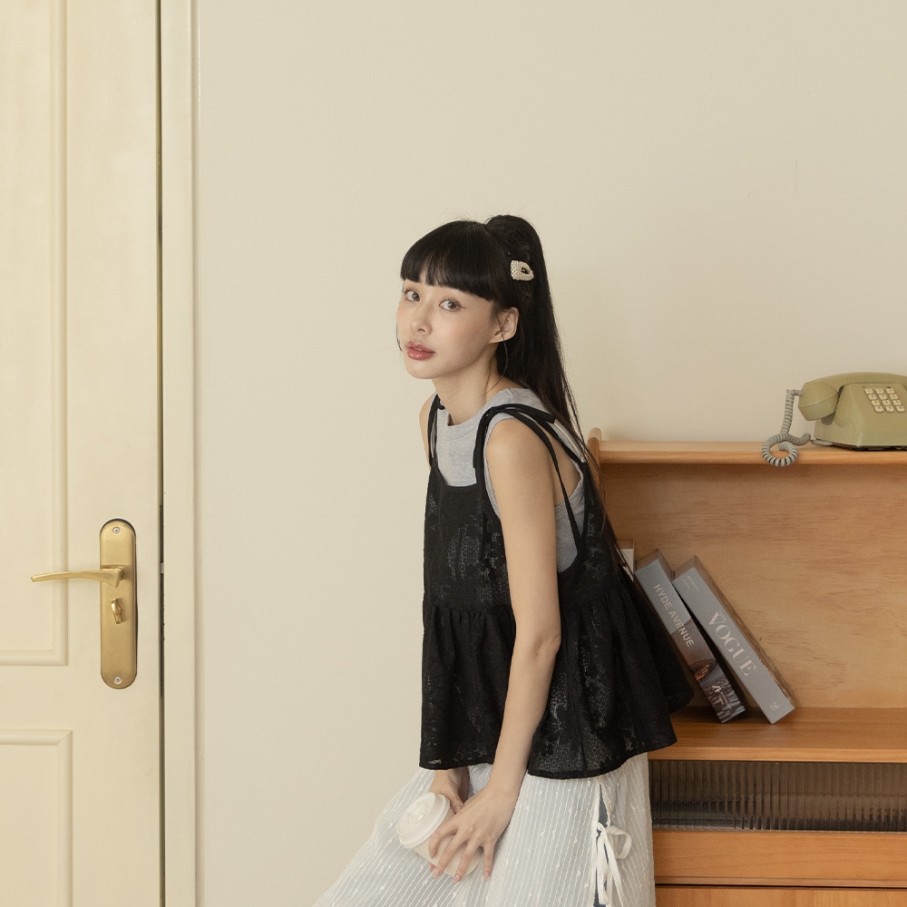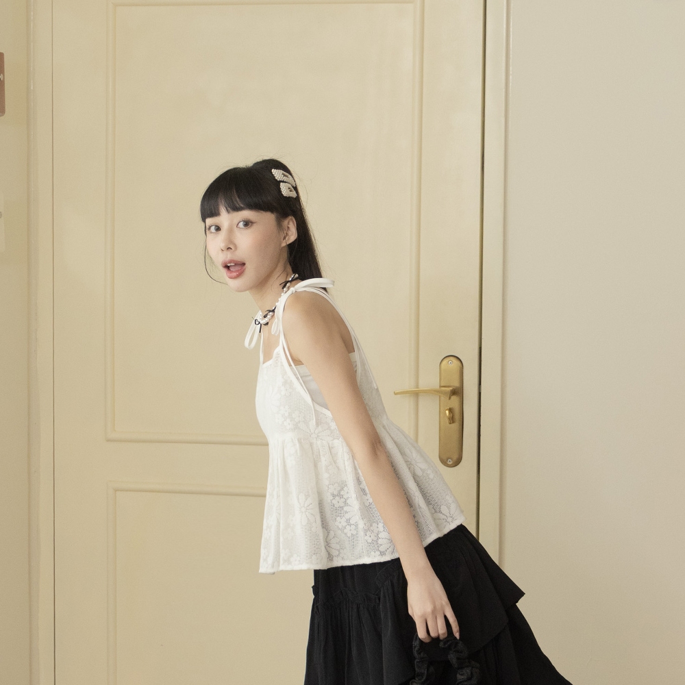 QUEENSHOP_ S 女裝 花花透膚針織傘擺罩衫背心 兩色售 現+預 【01098834】黑|白Tanks & CamisolesQUEENSHOP