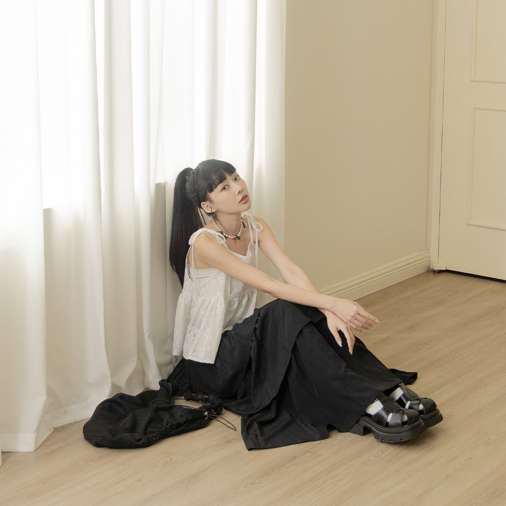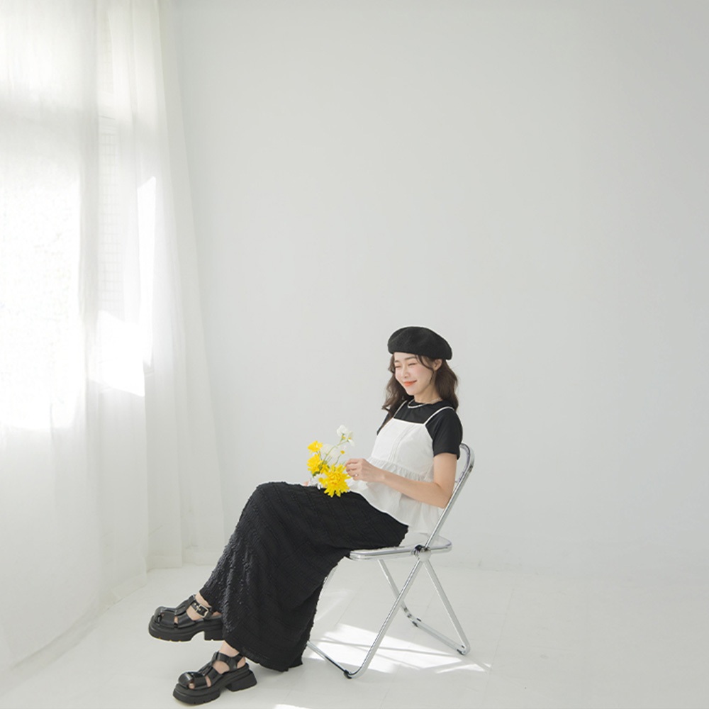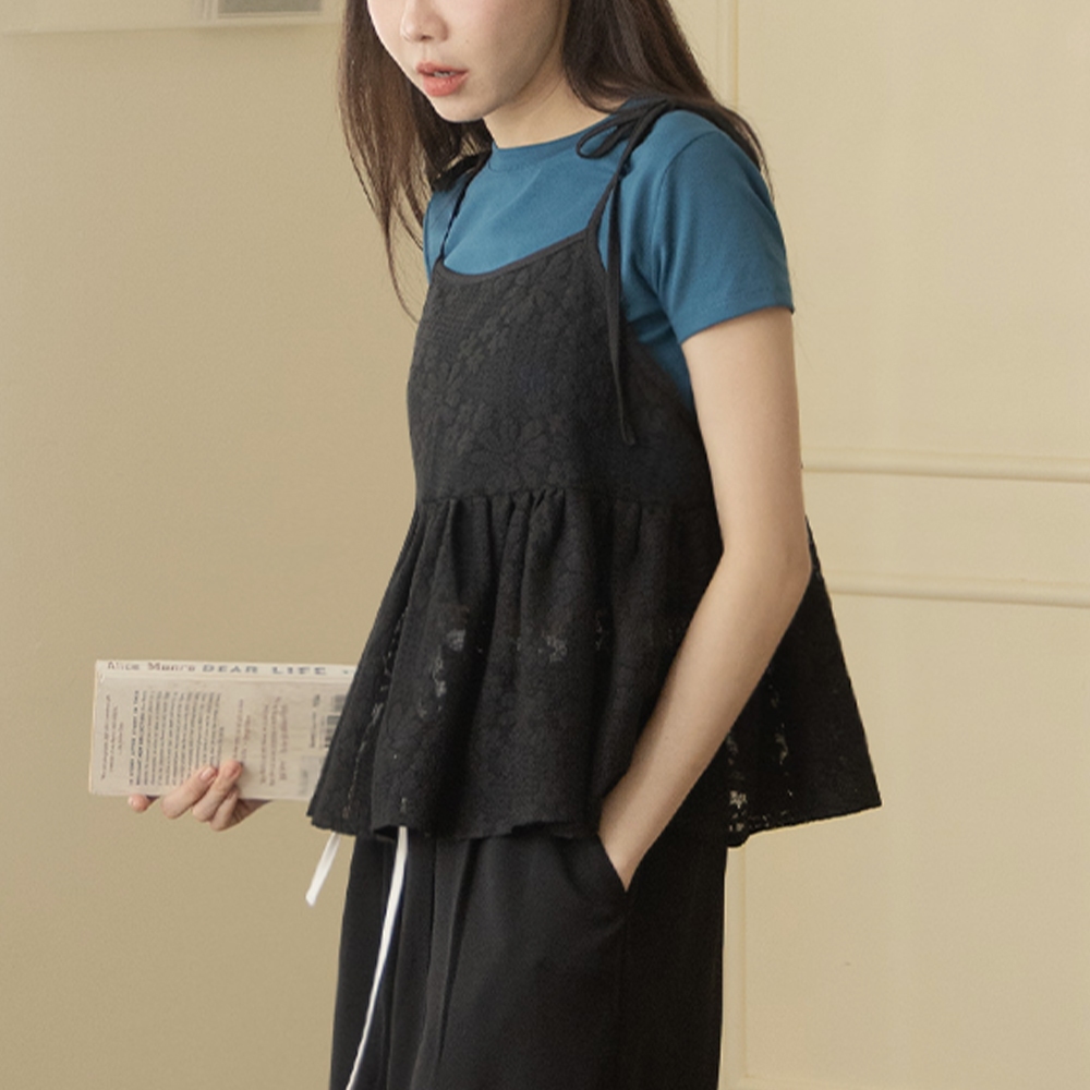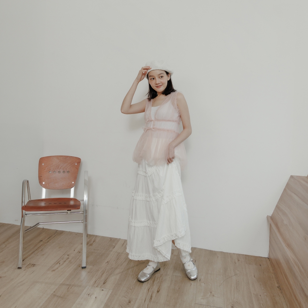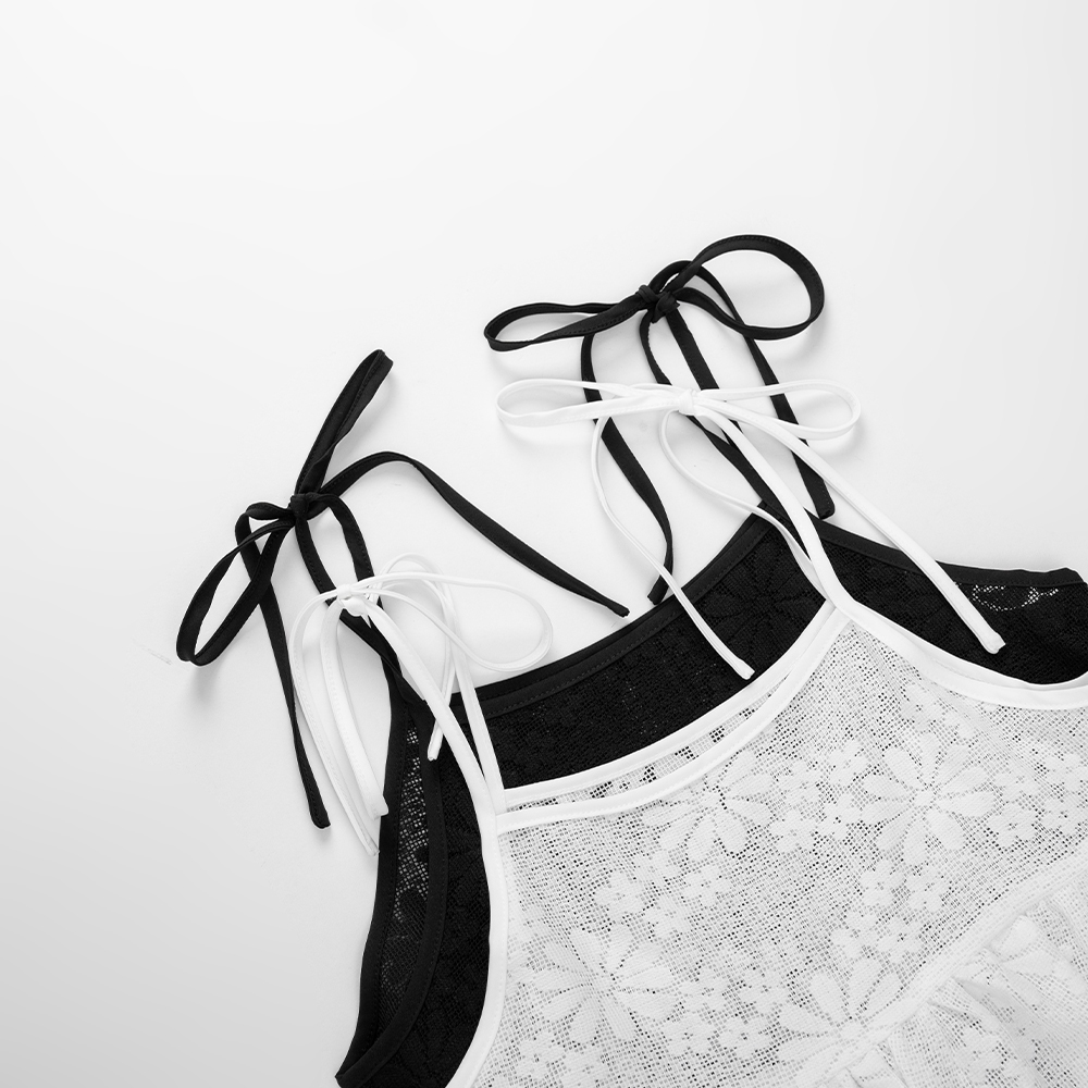 QUEENSHOP_ S 女裝 花花透膚針織傘擺罩衫背心 兩色售 現+預 【01098834】黑|白Tanks & CamisolesQUEENSHOP