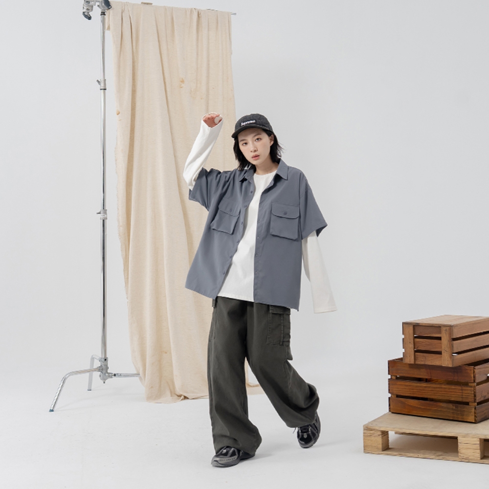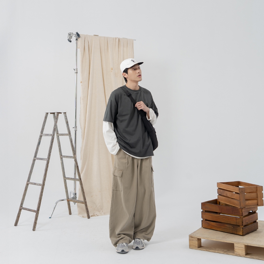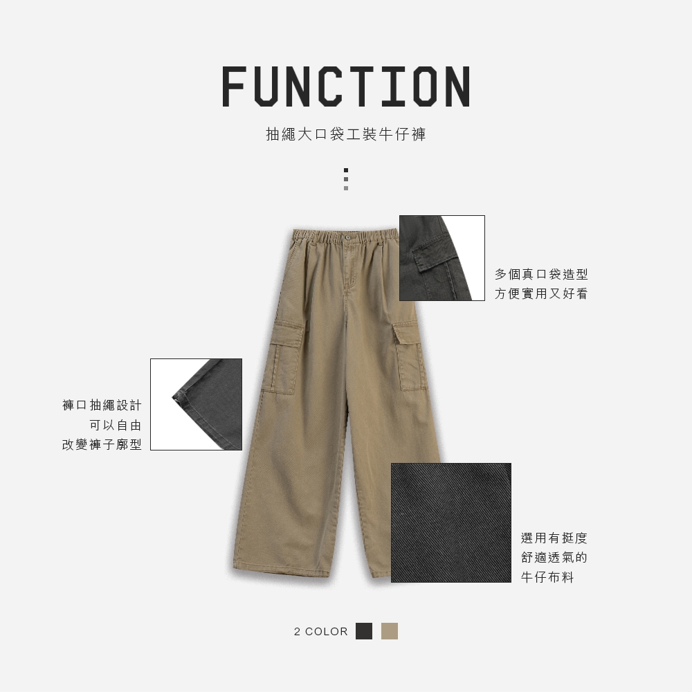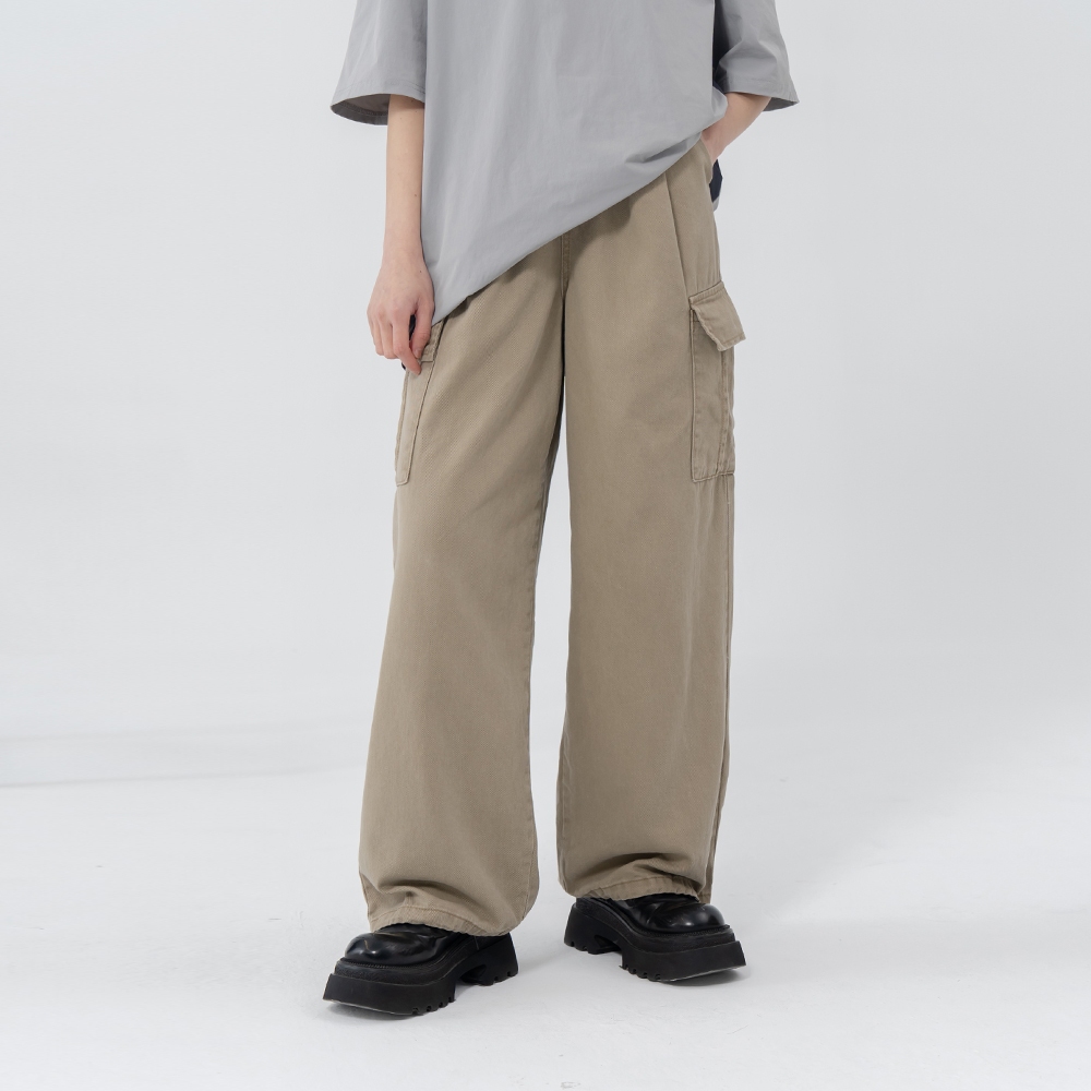 QUEENSHOP_ S 情侶裝 抽繩大口袋工裝牛仔褲 兩色售 1/2/3 現+預 【04011822】灰1|灰2|灰3|卡其1|卡其2|卡其3PantsQUEENSHOP