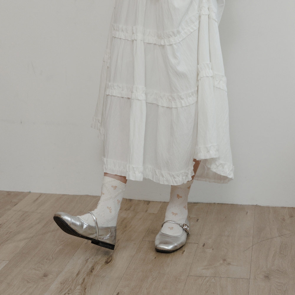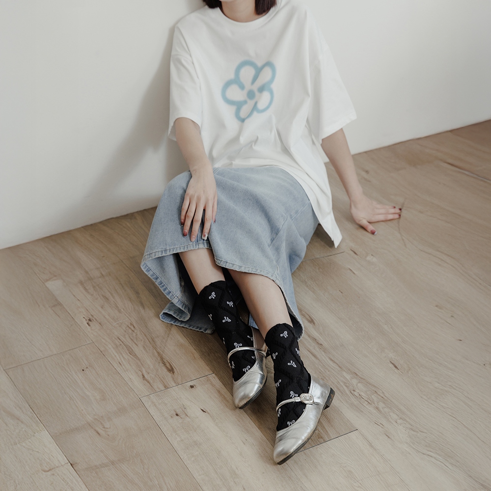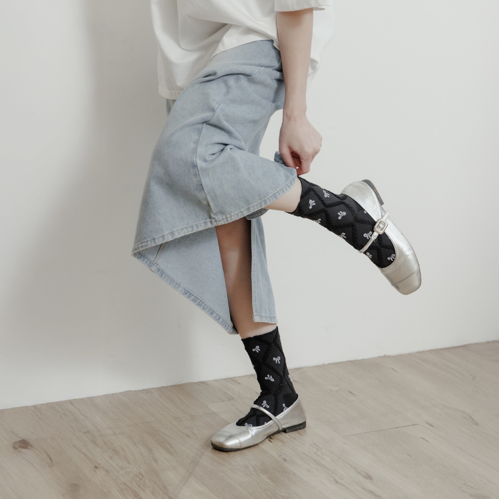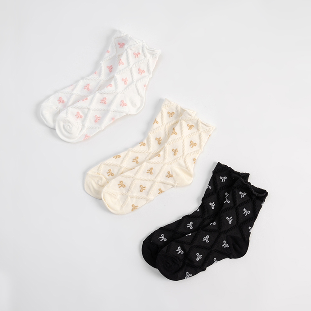 QUEENSHOP_ S 女裝 正韓 撞色立體蝴蝶結滾邊中筒襪 三色售 現+預 【07110577】黑|白|杏SocksQUEENSHOP