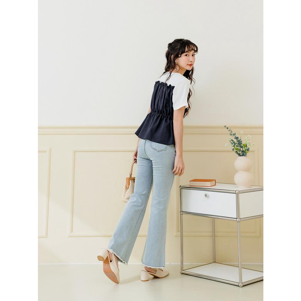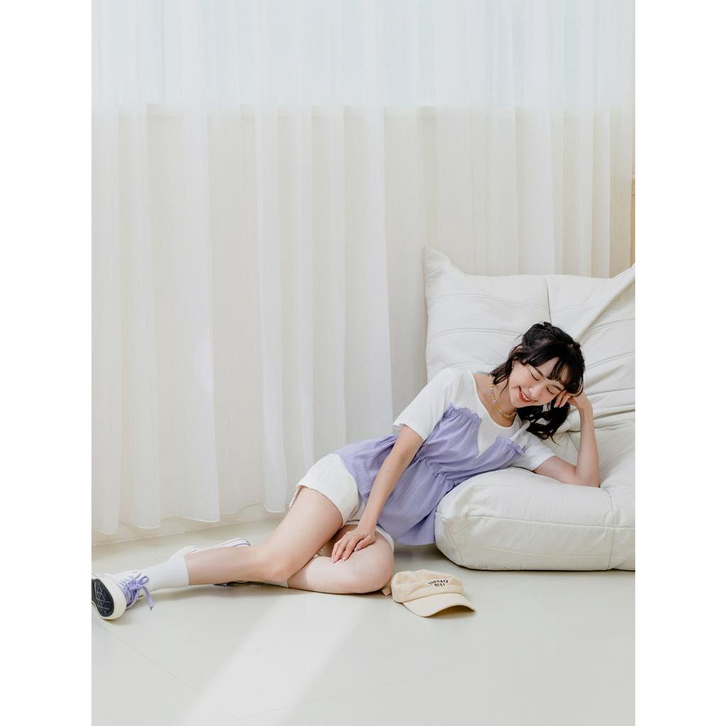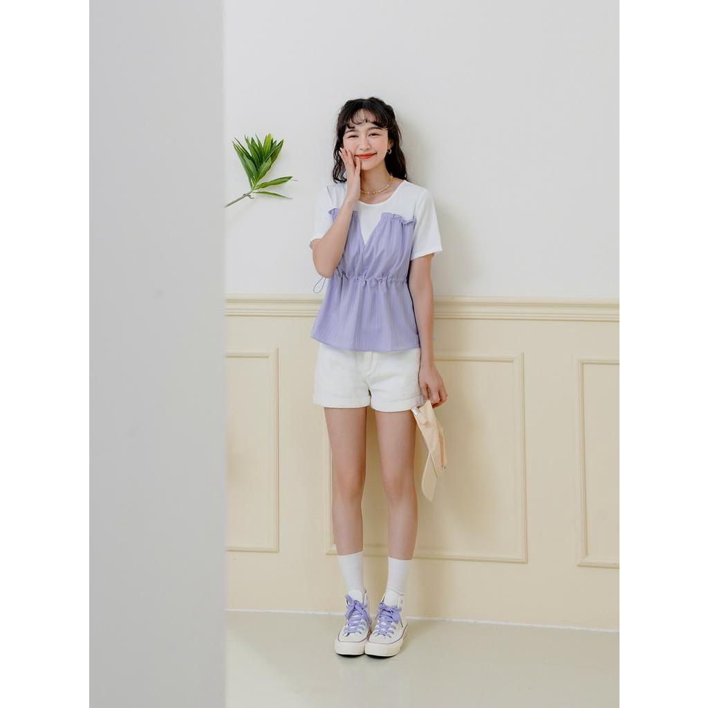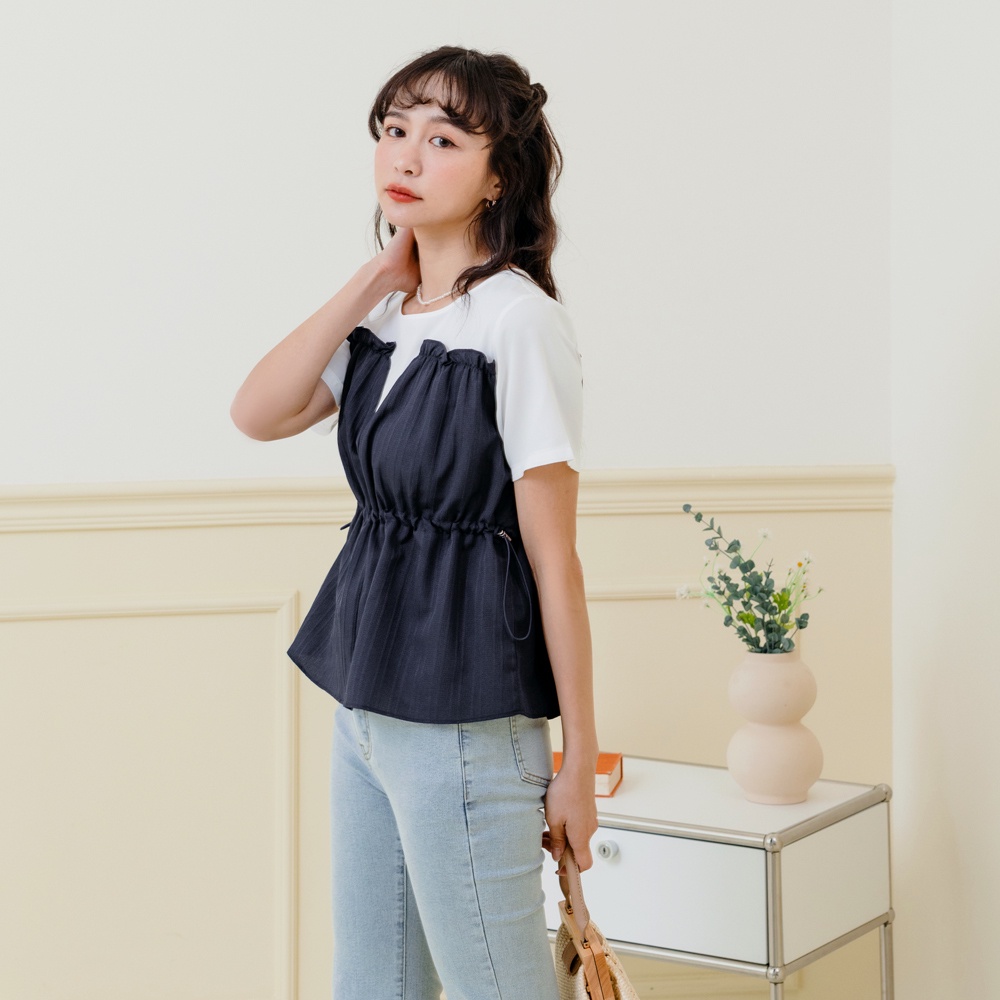 OB嚴選 假兩件荷葉造型收腰上衣 《AB18574》大尺碼/現貨/女裝深藍,S|深藍,M|深藍,XL|深藍,2L|薰衣草紫,L|薰衣草紫,XL|薰衣草紫,2L|深藍,L|深藍,3L|薰衣草紫,S|薰衣草紫,M|薰衣草紫,3LT-shirtsOB嚴選官方旗艦店