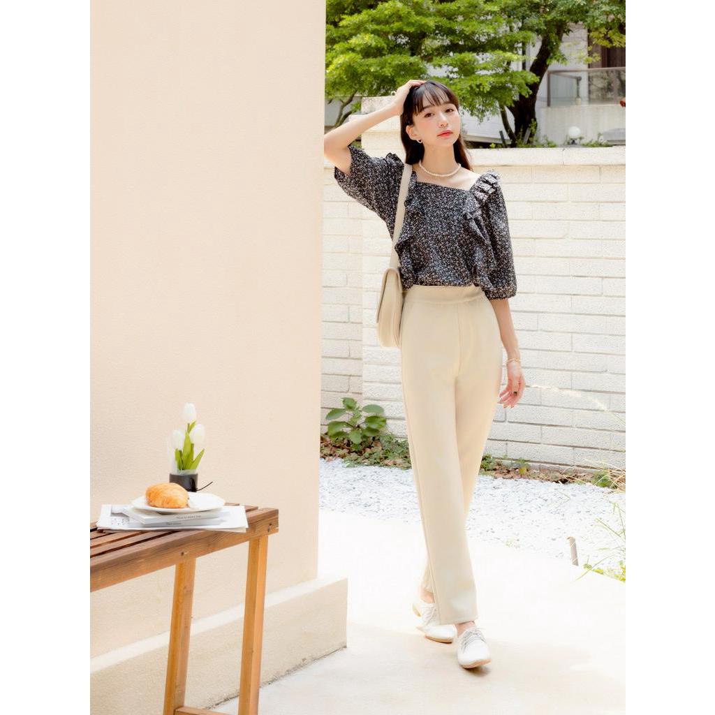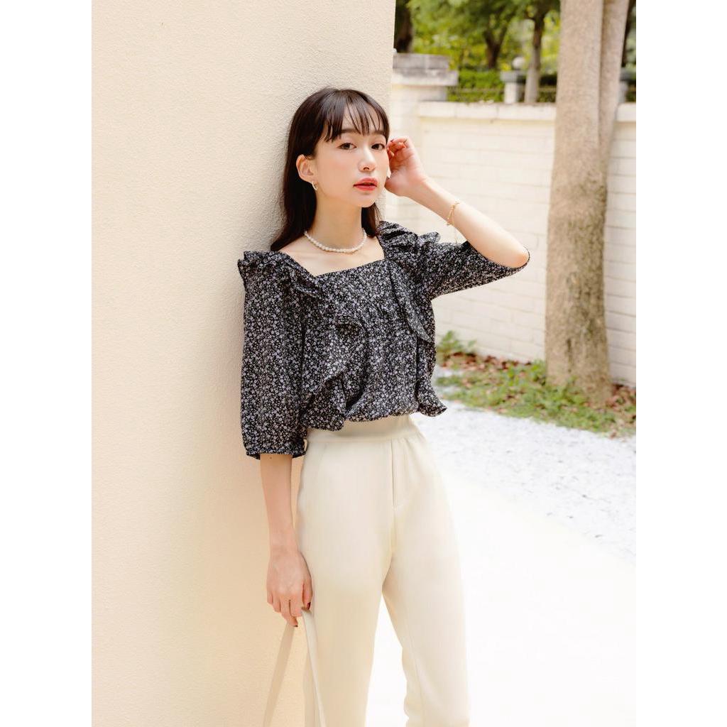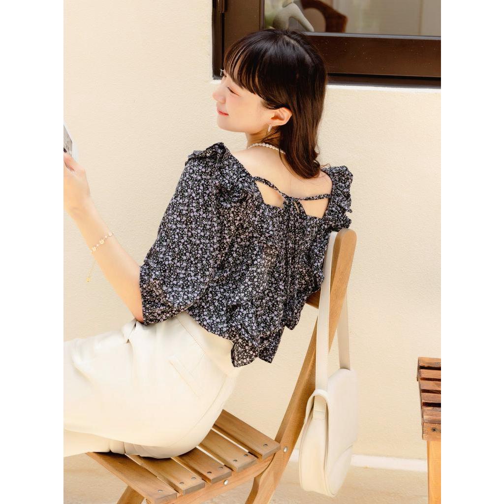 OB嚴選 小V臉.方領印花荷葉造型後綁帶上衣 《AB17537》大尺碼/現貨/女裝黑,M|黑,L|黑,XL|黑,2L|黃,L|黃,XL|黃,2L|黃,3L|黑,S|黑,3L|黃,S|黃,MT-shirtsOB嚴選官方旗艦店