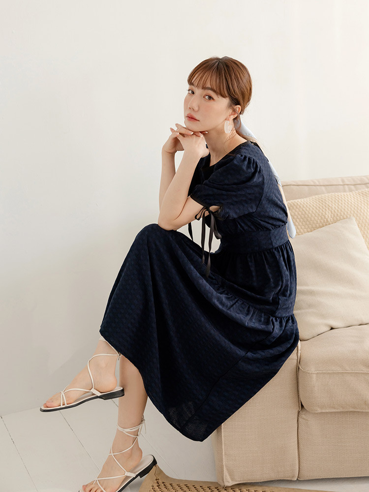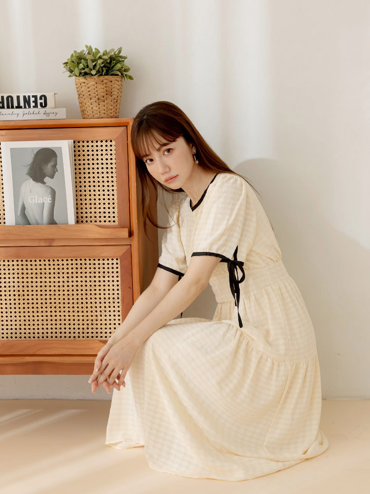 OB嚴選 格紋收腰剪裁造型綁帶洋裝 《DA10468》深藍,S|深藍,M|深藍,L|深藍,XL|深藍,2L|深藍,3L|象牙白,S|象牙白,M|象牙白,L|象牙白,XL|象牙白,2L|象牙白,3LOB嚴選官方旗艦店