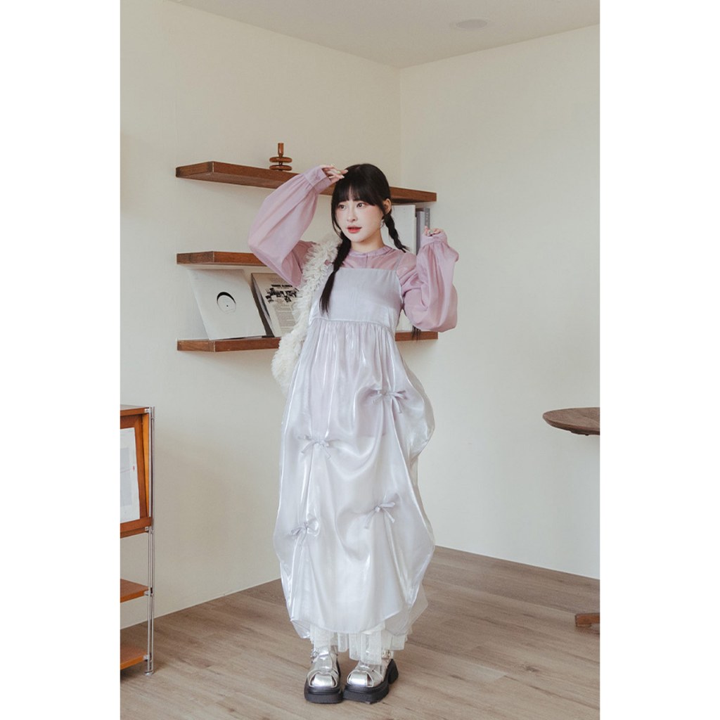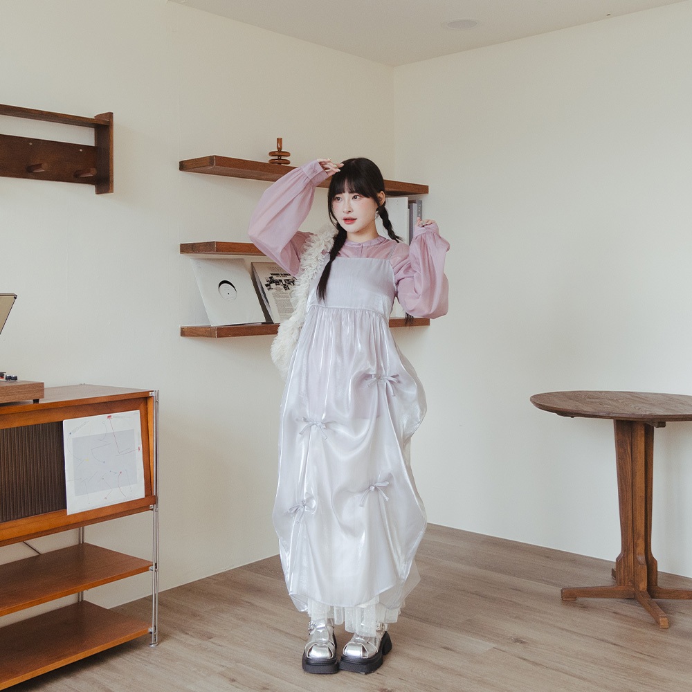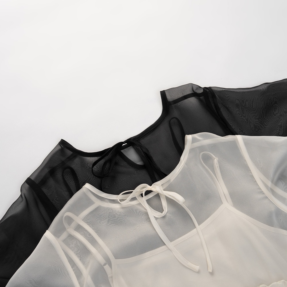 QUEENSHOP_ S 女裝 棉花糖 蝴蝶結透紗細肩長罩衫 兩色售M-XL 現+預 【01098941】黑M|黑L|黑XL|灰M|灰L|灰XLQUEENSHOP