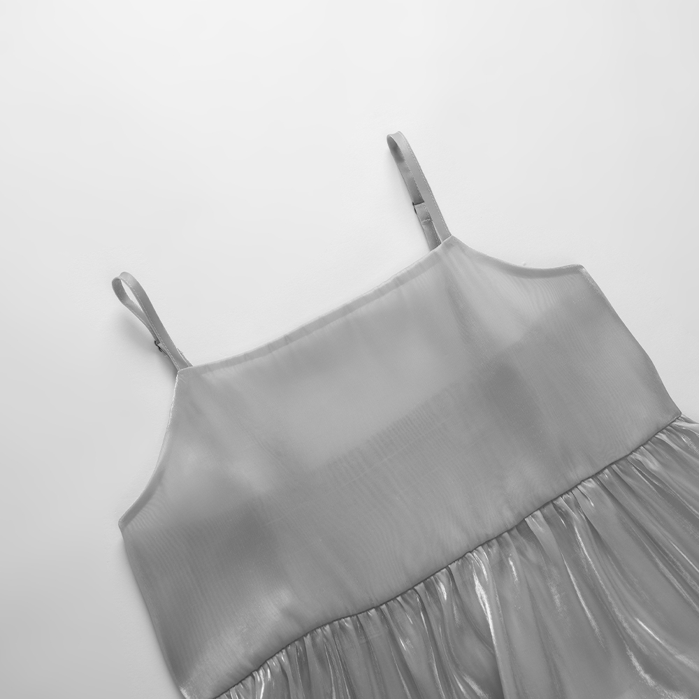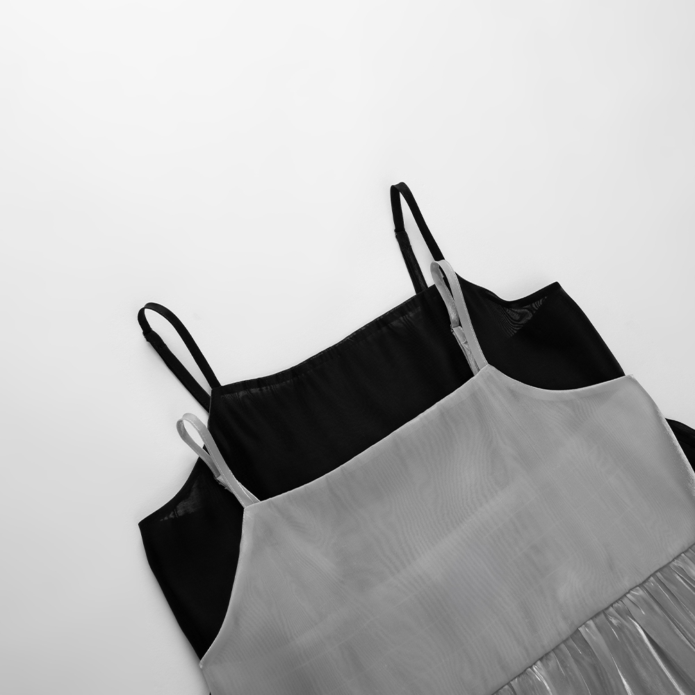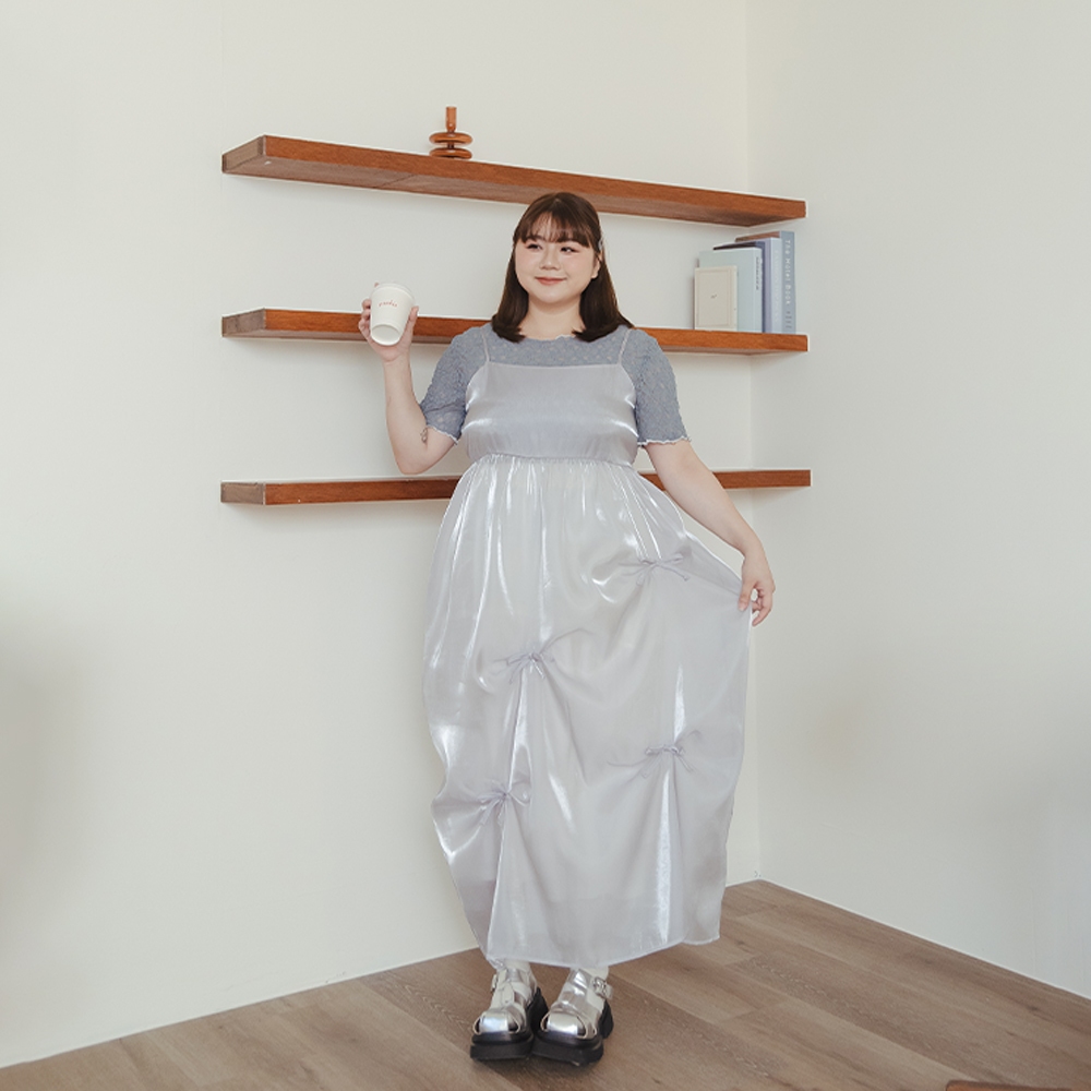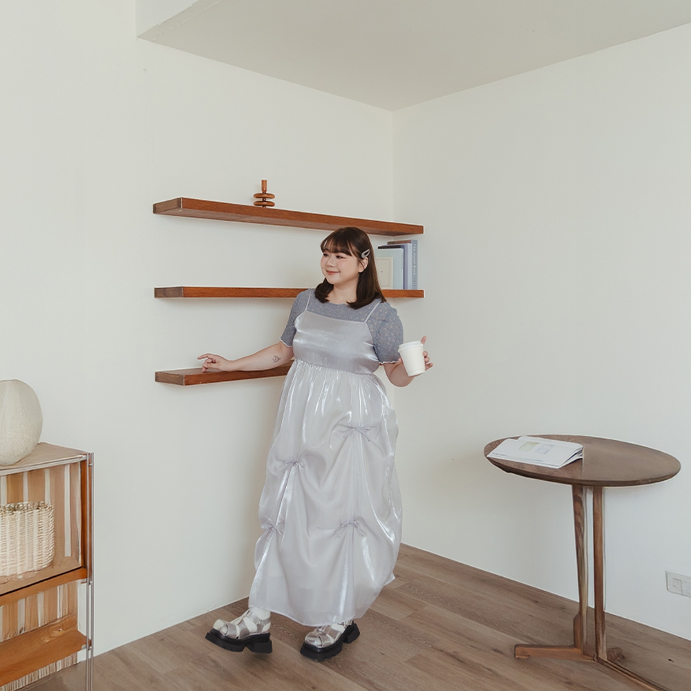QUEENSHOP_ S 女裝 短袖 微光澤透紗兩件式細肩長洋裝 兩色售 現+預 【01087113】