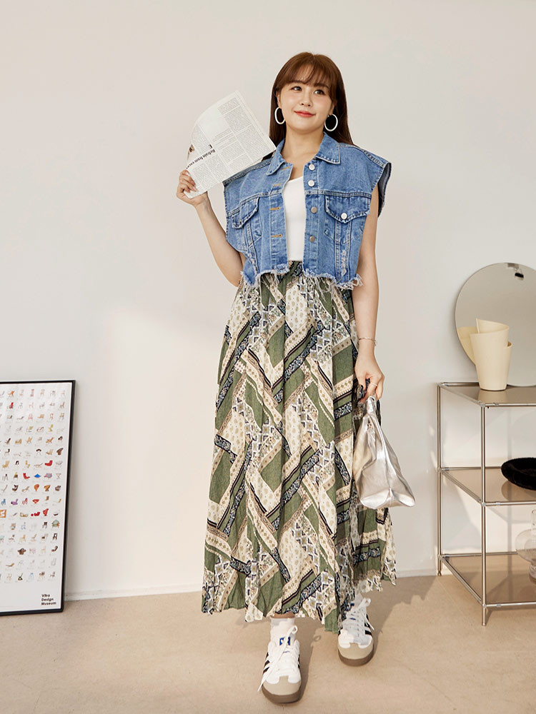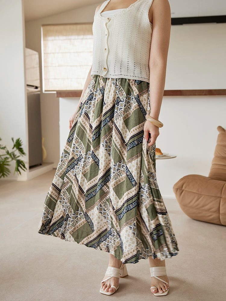 OB嚴選 雲朵自訂款-圖騰壓褶傘襬長裙 《CA2958》大尺碼/女裝/現貨綠,XL|綠,2L|綠,3LOB嚴選官方旗艦店