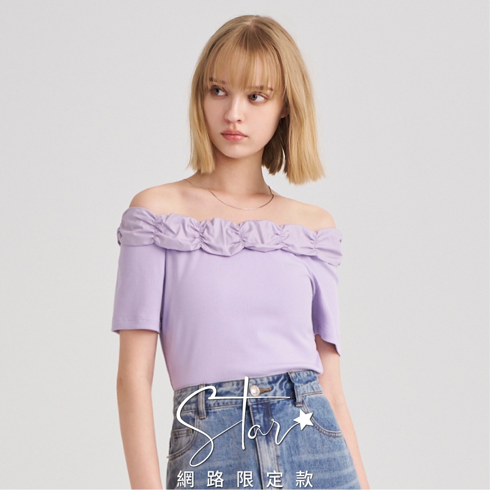 SO NICE【特惠】立體摺花船領拼接短版彈力坑條上衣|白/淺紫|都會時尚女裝【3543F026】淺紫,40(L)|淺紫,42(XL)|白,36(S)|白,38(M)|白,40(L)|淺紫,36(S)|淺紫,38(M)|白,34(XS)|白,42(XL)|淺紫,34(XS)T-shirtsSO NICE 官方旗艦店
