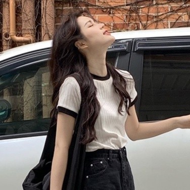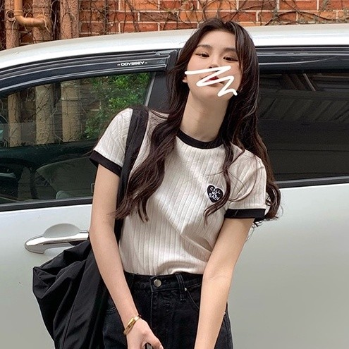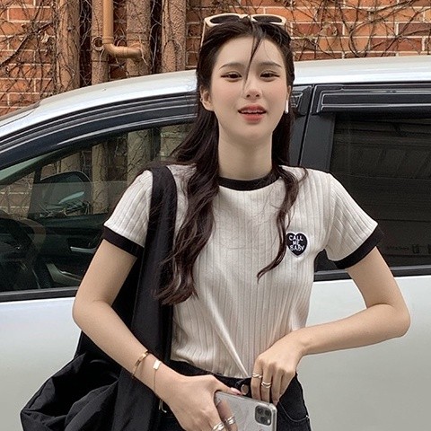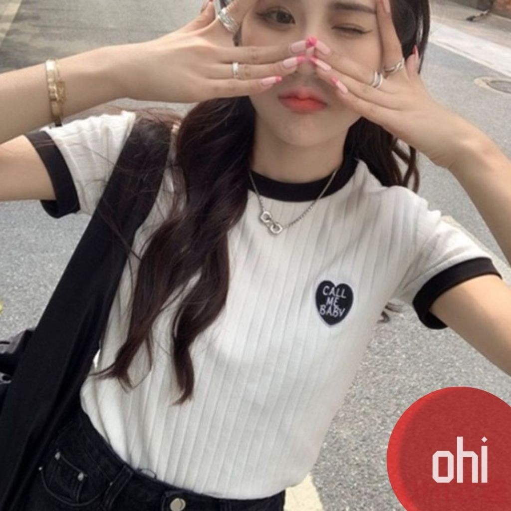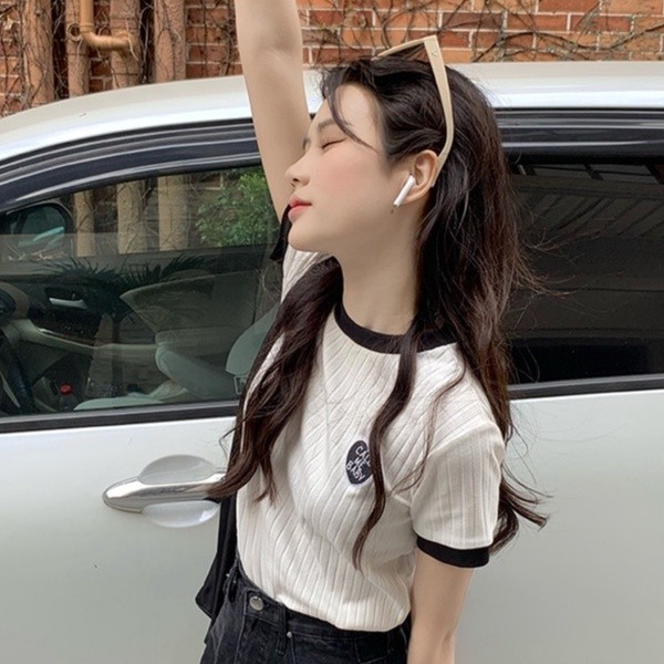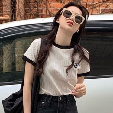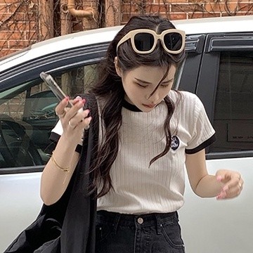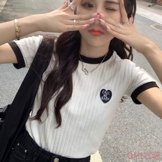 【ohi】滾邊撞色小標設計感短T 短袖 短T T恤 女上衣 女裝(GWHA144)白色T-shirtsOHI衣著