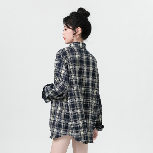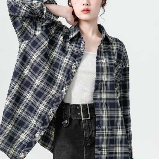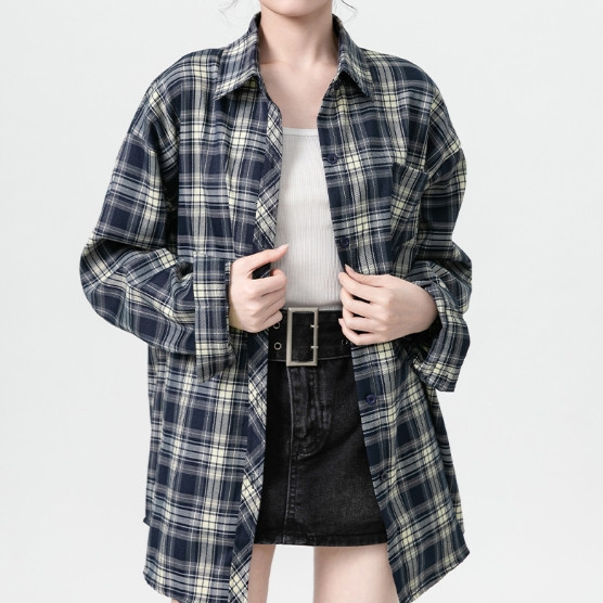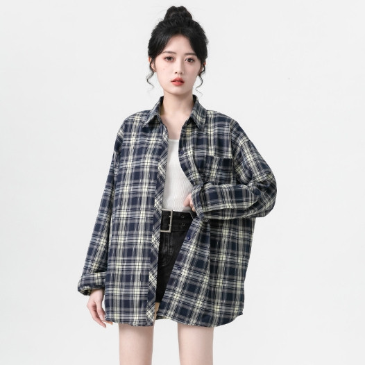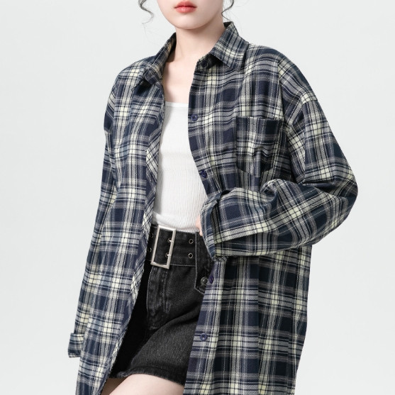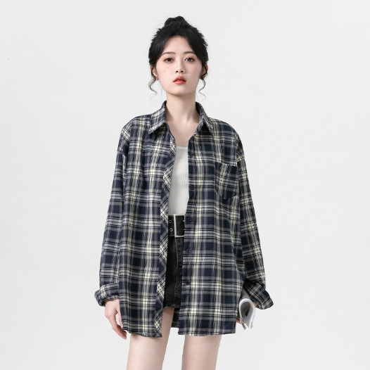 【ohi】格子襯衫 復古港風休閒襯衣 長袖襯衫 女生襯衫 襯衣 襯衫 上衣 寬鬆上衣 長袖上衣 女裝 GSS9001藏青格,S|藏青格,M|藏青格,L|藏青格,XL|藏青格,2XLShirts & BlousesOHI衣著