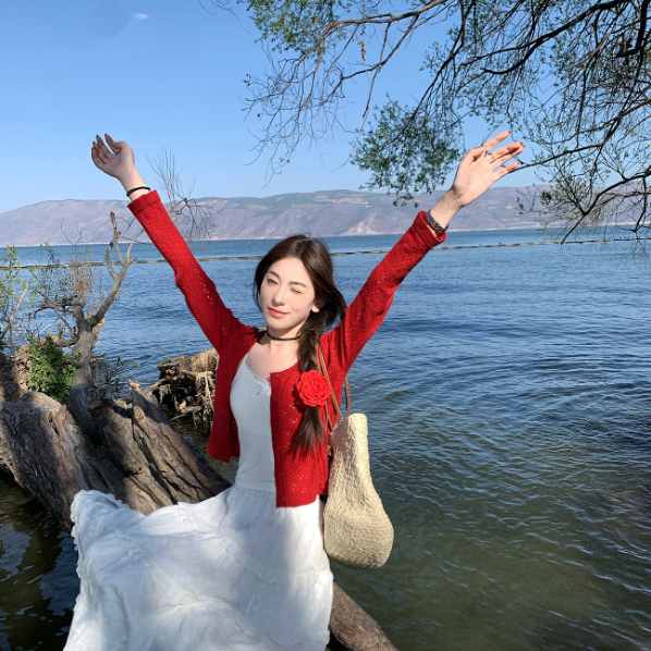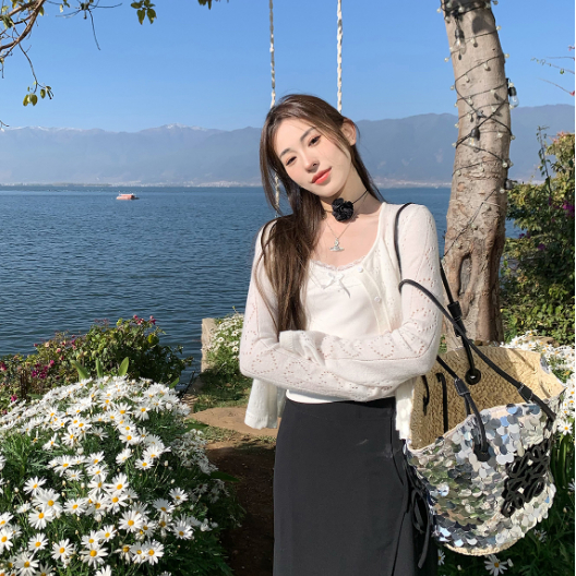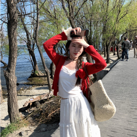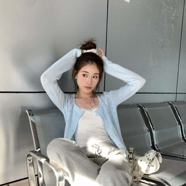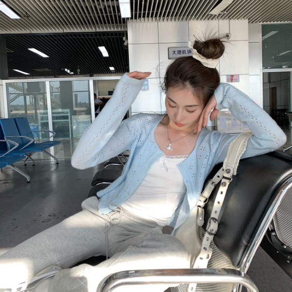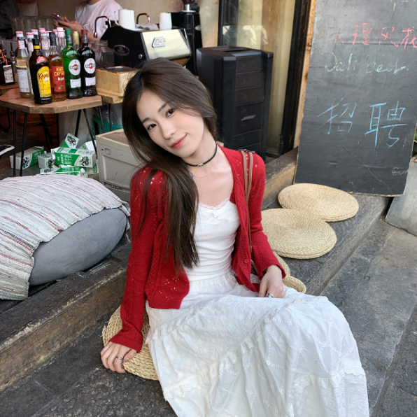 【ohi】防曬針織開衫外套 薄款罩衫 氣質縷空披肩 針織長袖罩衫外套 夏天衣服 女裝 GWH6475紅色,均碼-65KG以內都可穿|藍色,均碼-65KG以內都可穿|白色,均碼-65KG以內都可穿OHI衣著