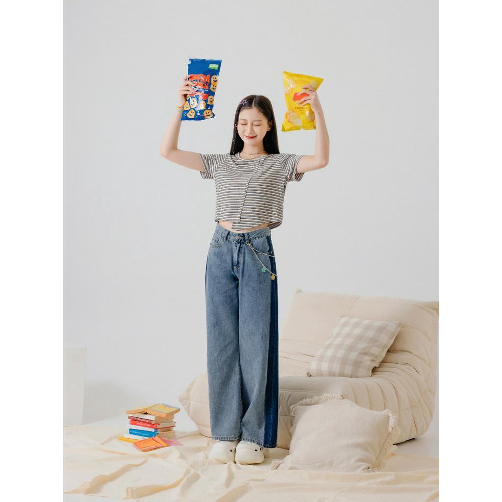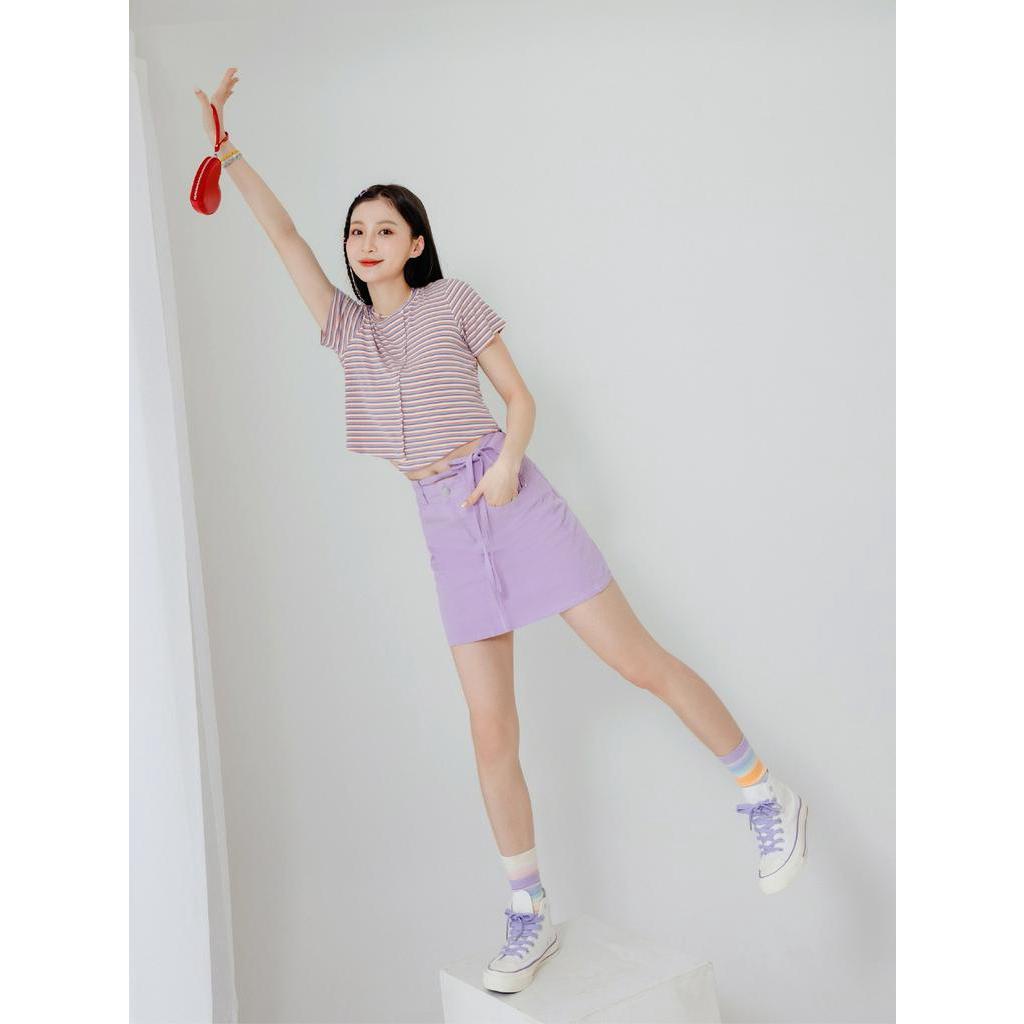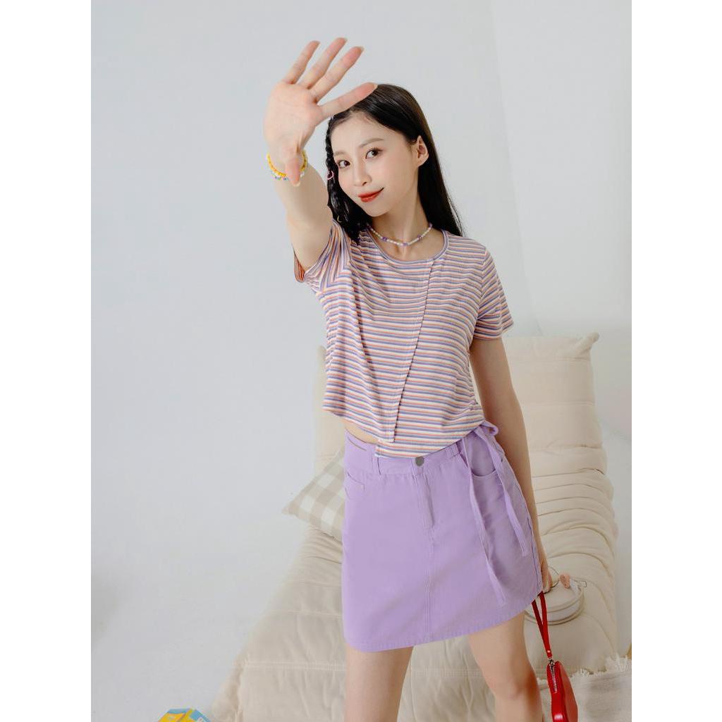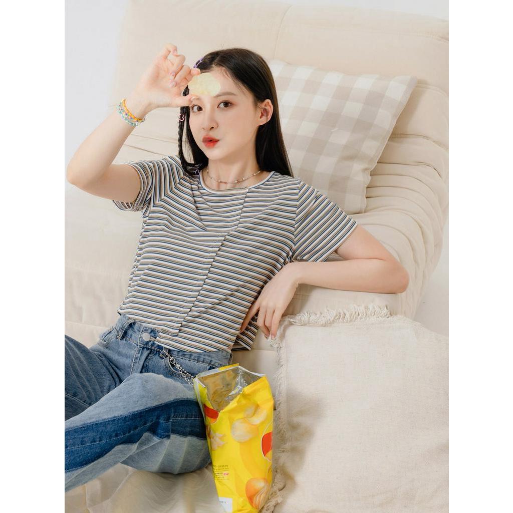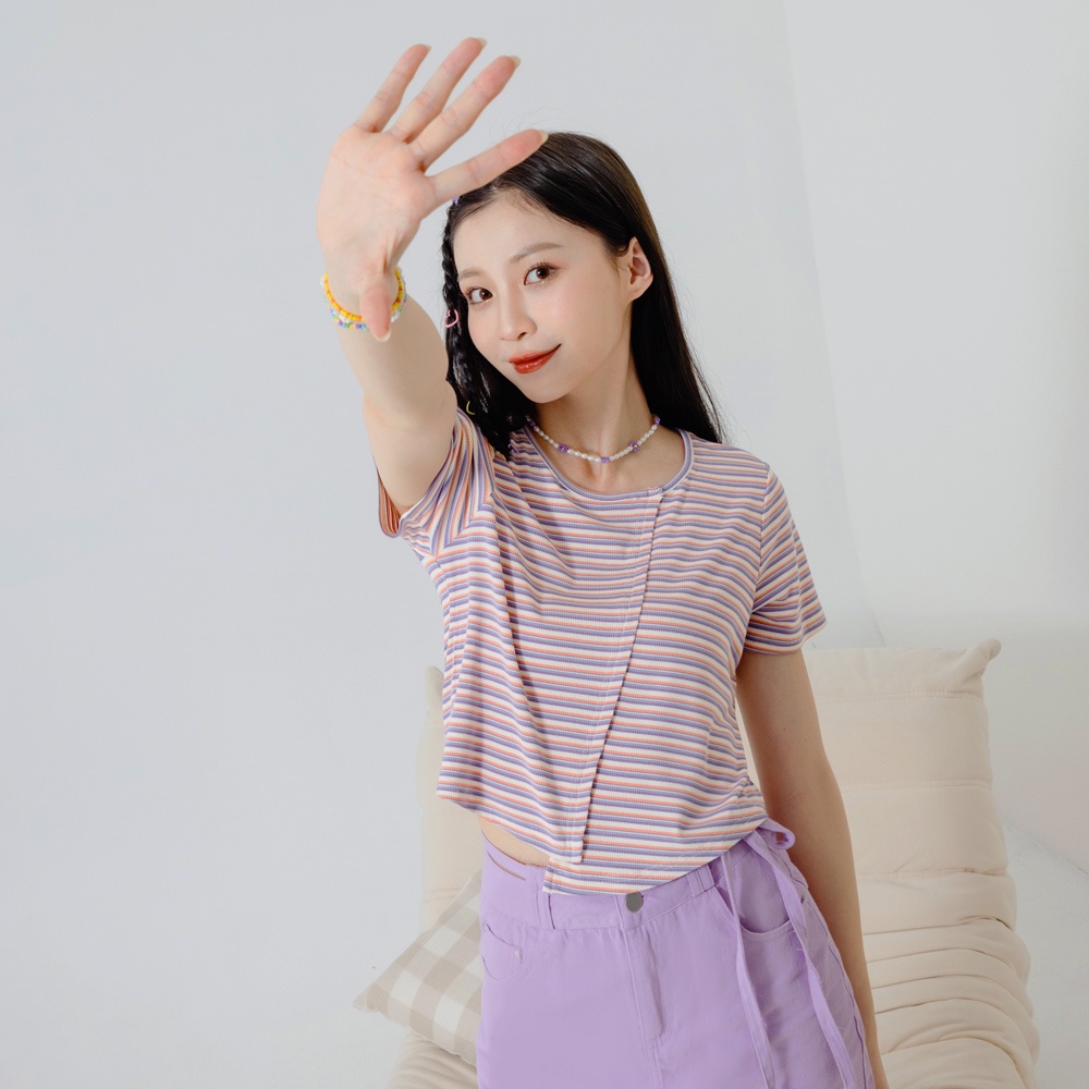OB嚴選 羅紋撞色不對稱拼接短版上衣 《AB18694》大尺碼/女裝/現貨粉紫條,XL|深藍咖條,S|深藍咖條,L|深藍咖條,XL|深藍咖條,3L|粉紫條,L|粉紫條,M|粉紫條,2L|粉紫條,3L|深藍咖條,M|深藍咖條,2L|粉紫條,ST-shirtsOB嚴選官方旗艦店