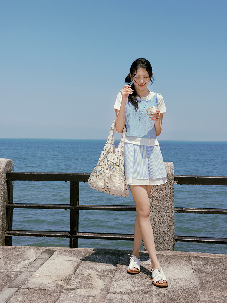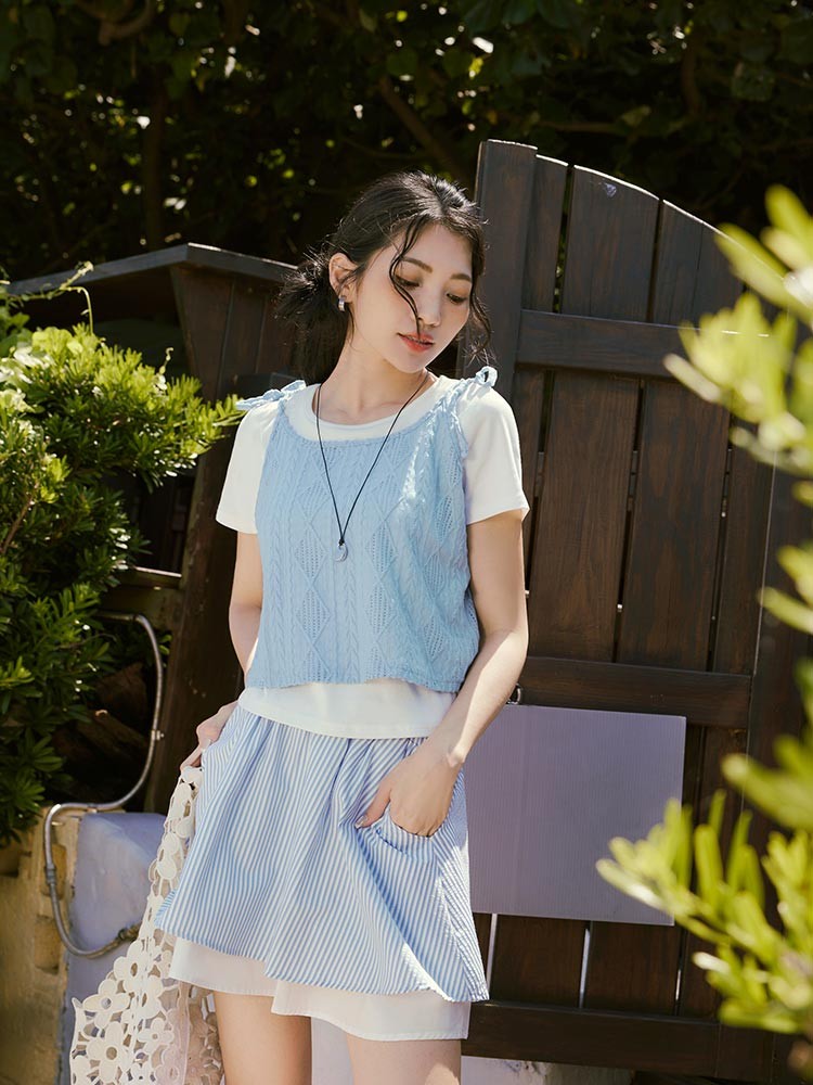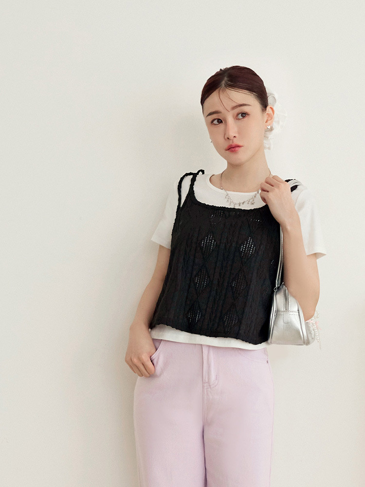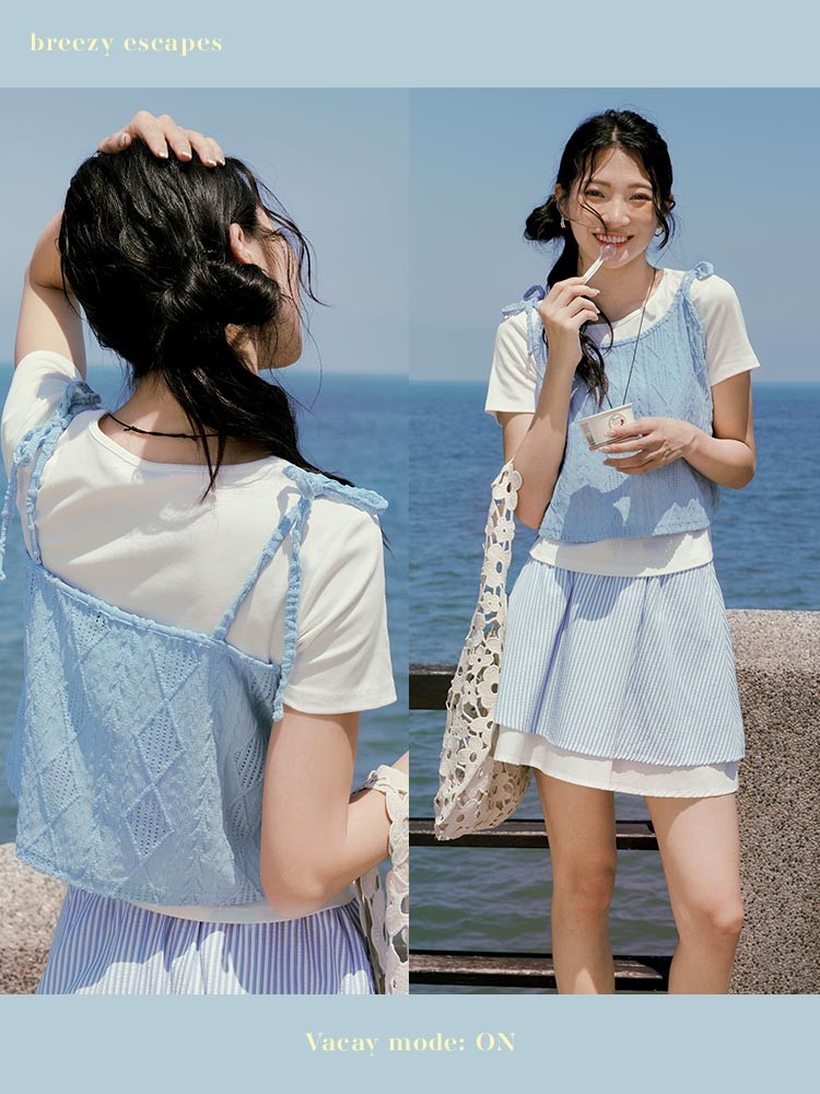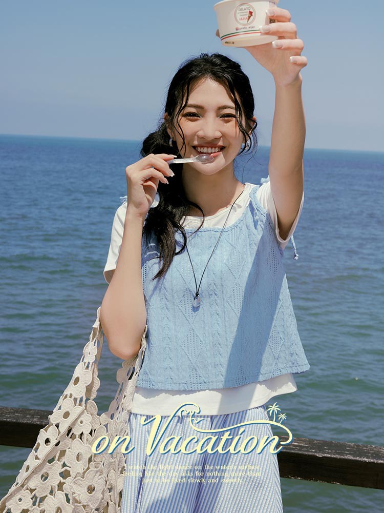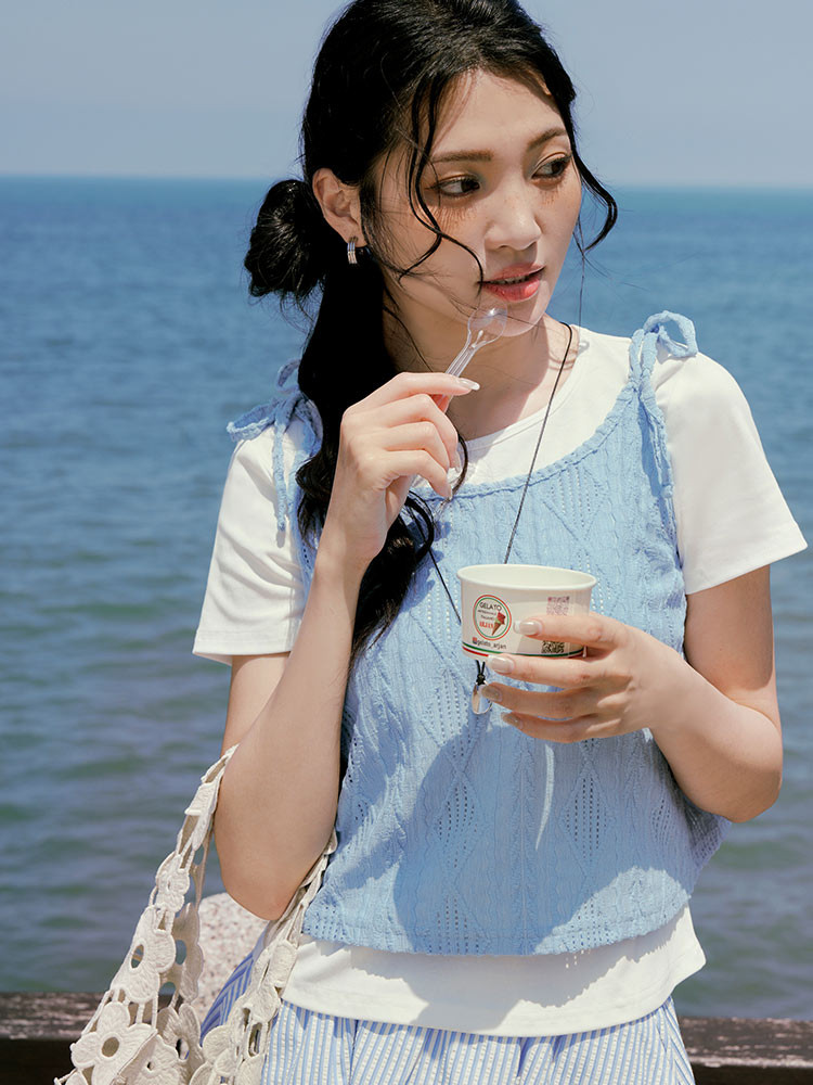 OB嚴選 兩件式菱格壓紋綁帶背心上衣 《AB20342》淺水藍,M|淺水藍,L|淺水藍,XL|淺水藍,2L|淺水藍,3L|黑,M|黑,L|黑,XL|黑,2L|黑,3LT-shirtsOB嚴選官方旗艦店
