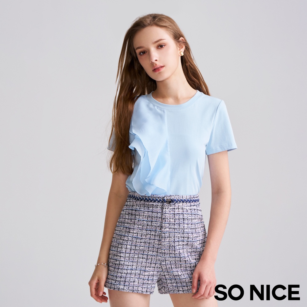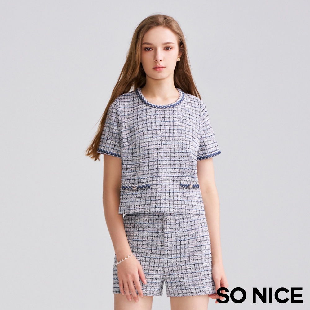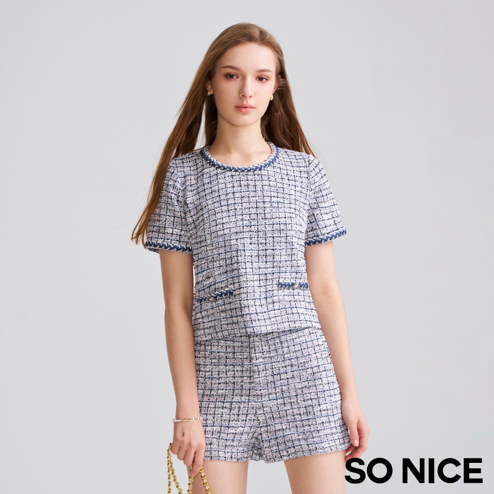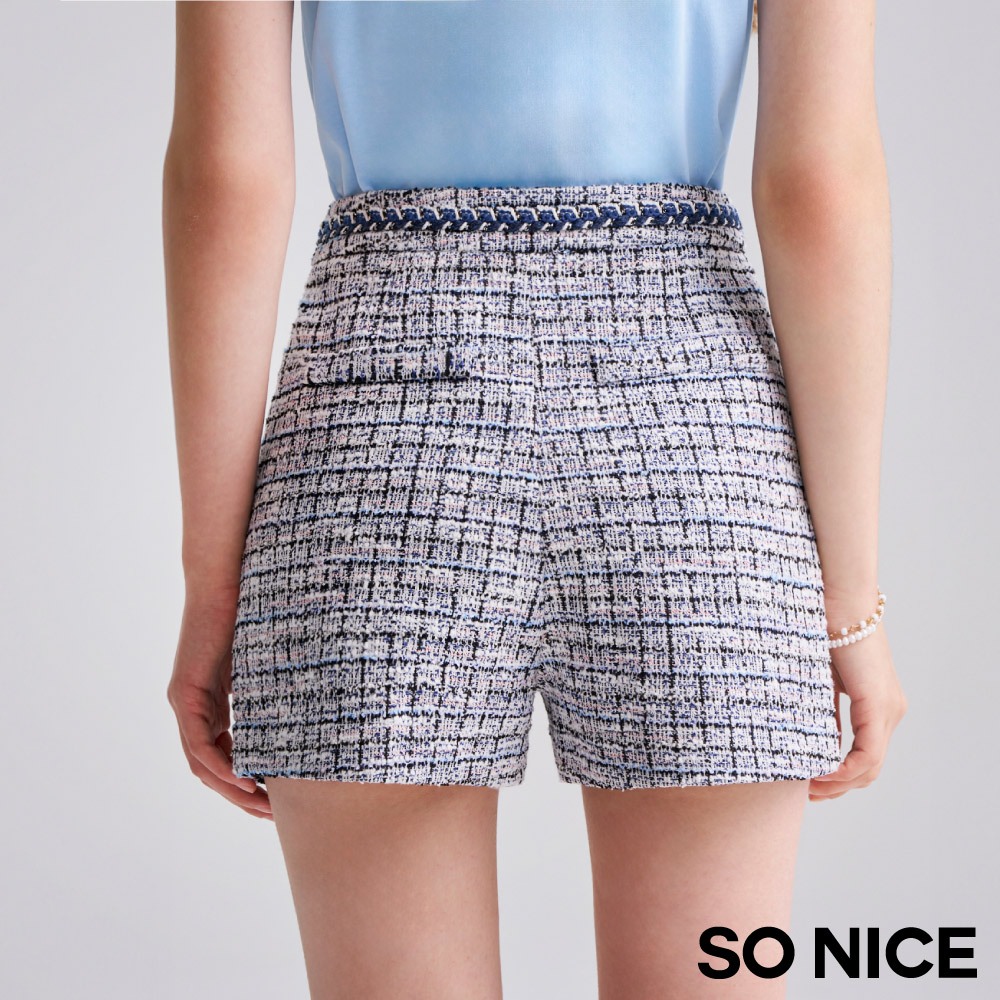 SO NICE【特惠】小香風短褲 短褲 藍色 [小香風織帶彈性花呢布短褲]【75442001】藍,36(S)|藍,38(M)|藍,40(L)|藍,42(XL)|藍,34(XS)ShortsSO NICE 官方旗艦店