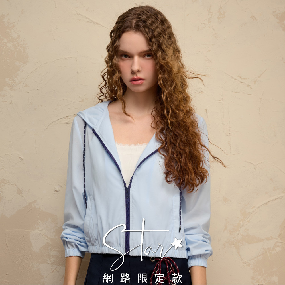 SO NICE 運動風撞色抽繩連帽防曬外套|白/淺藍|STAR|都會時尚女裝【2554F008】淺藍,36(S)|淺藍,38(M)|淺藍,40(L)|白,38(M)|白,40(L)|白,42(XL)|淺藍,34(XS)|白,34(XS)|白,36(S)|淺藍,42(XL)OthersSO NICE 官方旗艦店