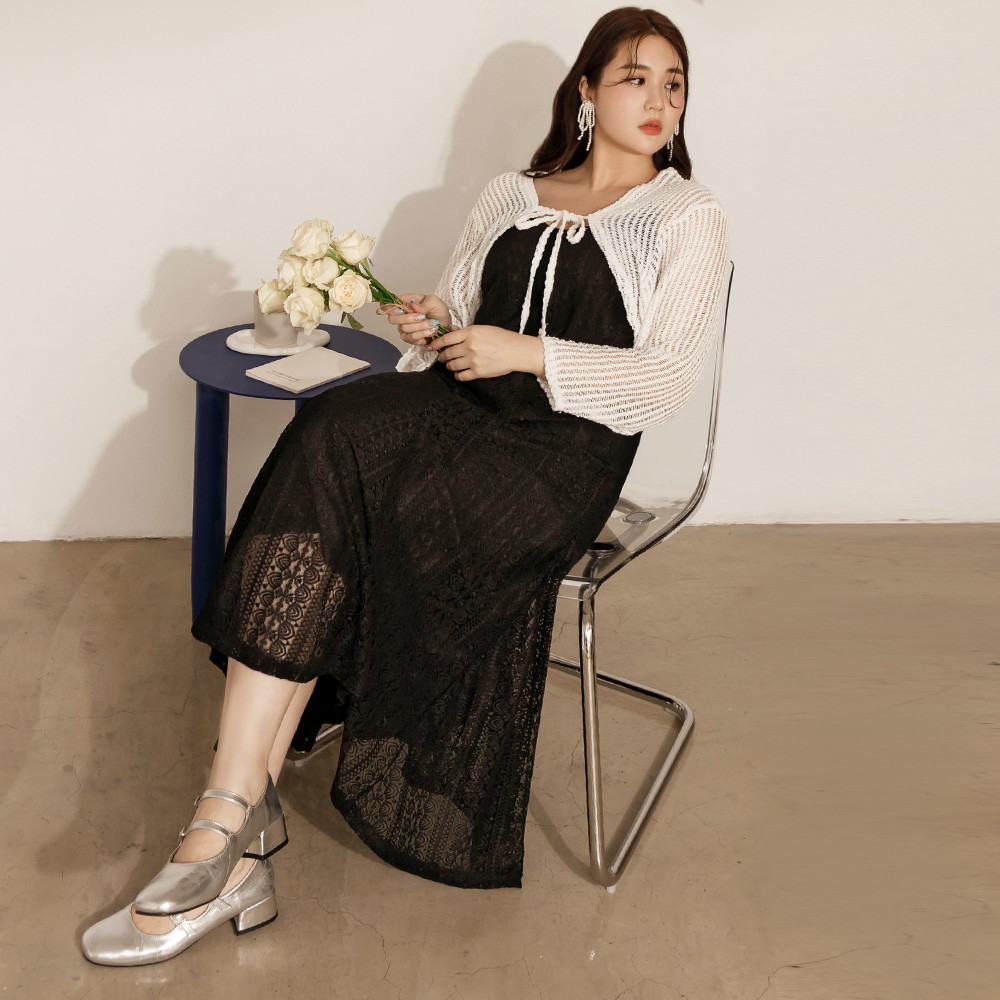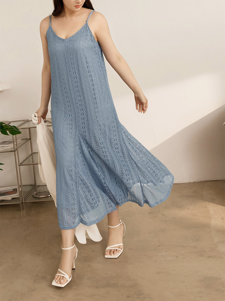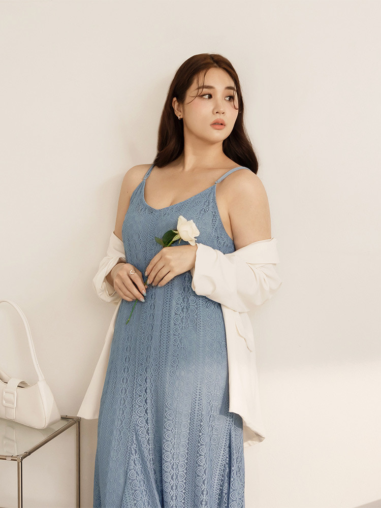 OB嚴選 雲朵自訂款-蕾絲細肩帶修身傘襬長洋裝 《DA10034》大尺碼/女裝/現貨黑,4L|藍,XL|藍,2L|藍,3L|黑,XL|黑,2L|黑,3L|藍,4LOB嚴選官方旗艦店