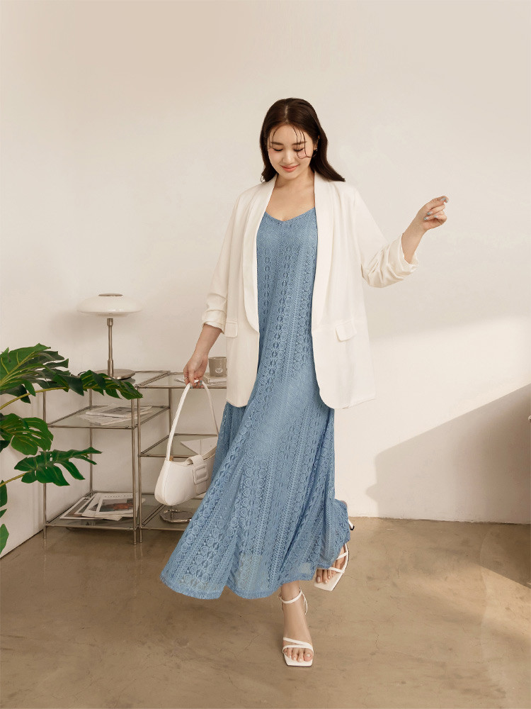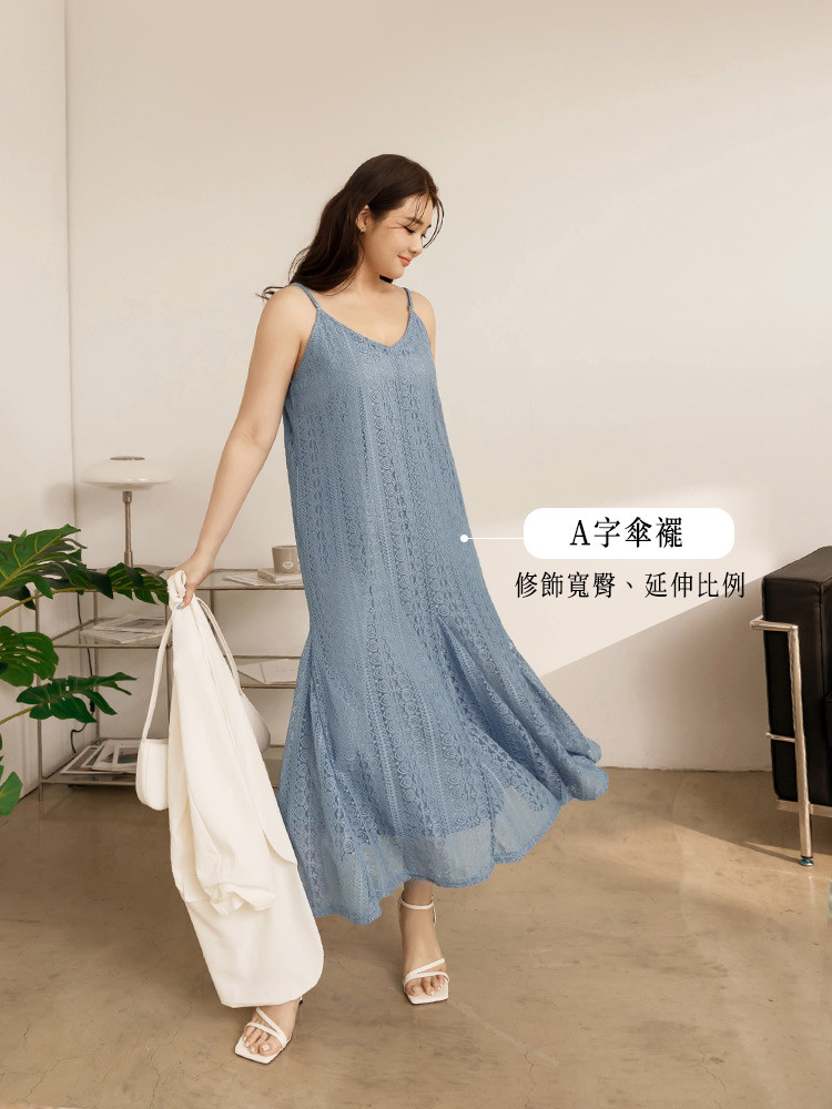 OB嚴選 雲朵自訂款-蕾絲細肩帶修身傘襬長洋裝 《DA10034》大尺碼/女裝/現貨
