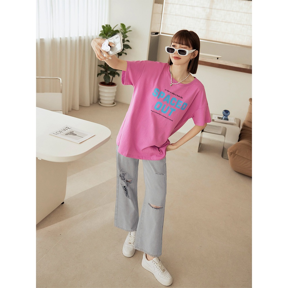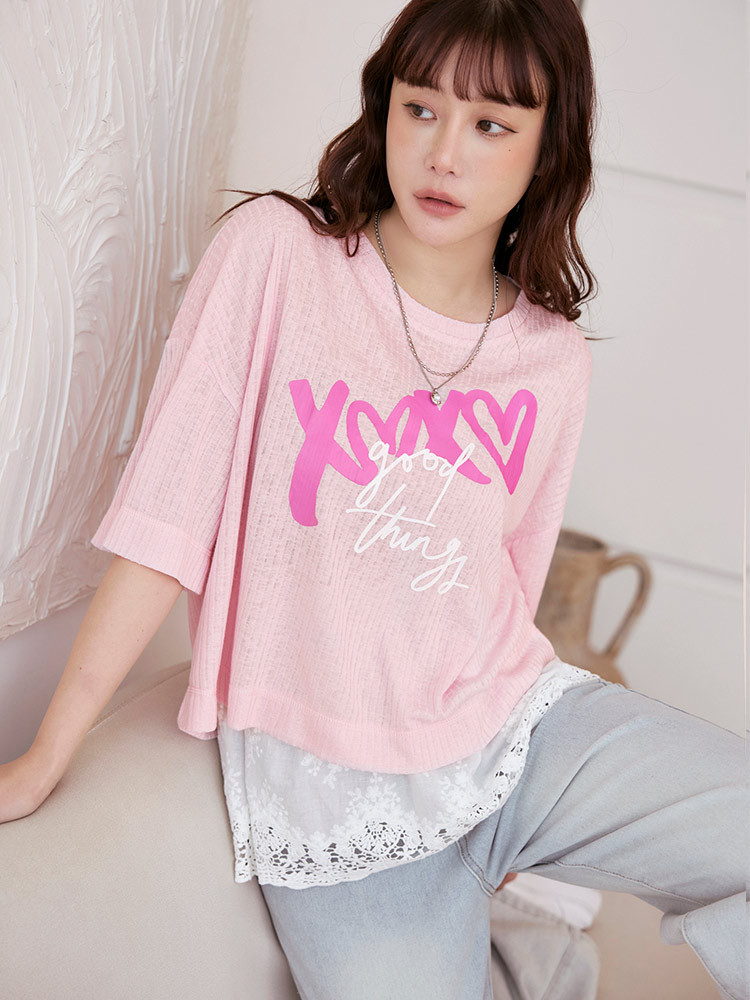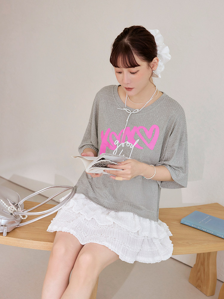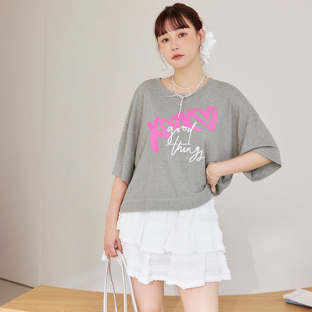 OB嚴選 坑條針織字母印花寬鬆上衣 《AB20295》淺灰,F|淺灰,XL|淺灰,2L|淺灰,3L|淺粉,F|淺粉,XL|淺粉,2L|淺粉,3LT-shirtsOB嚴選官方旗艦店