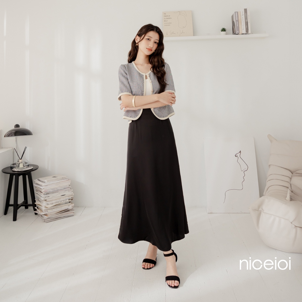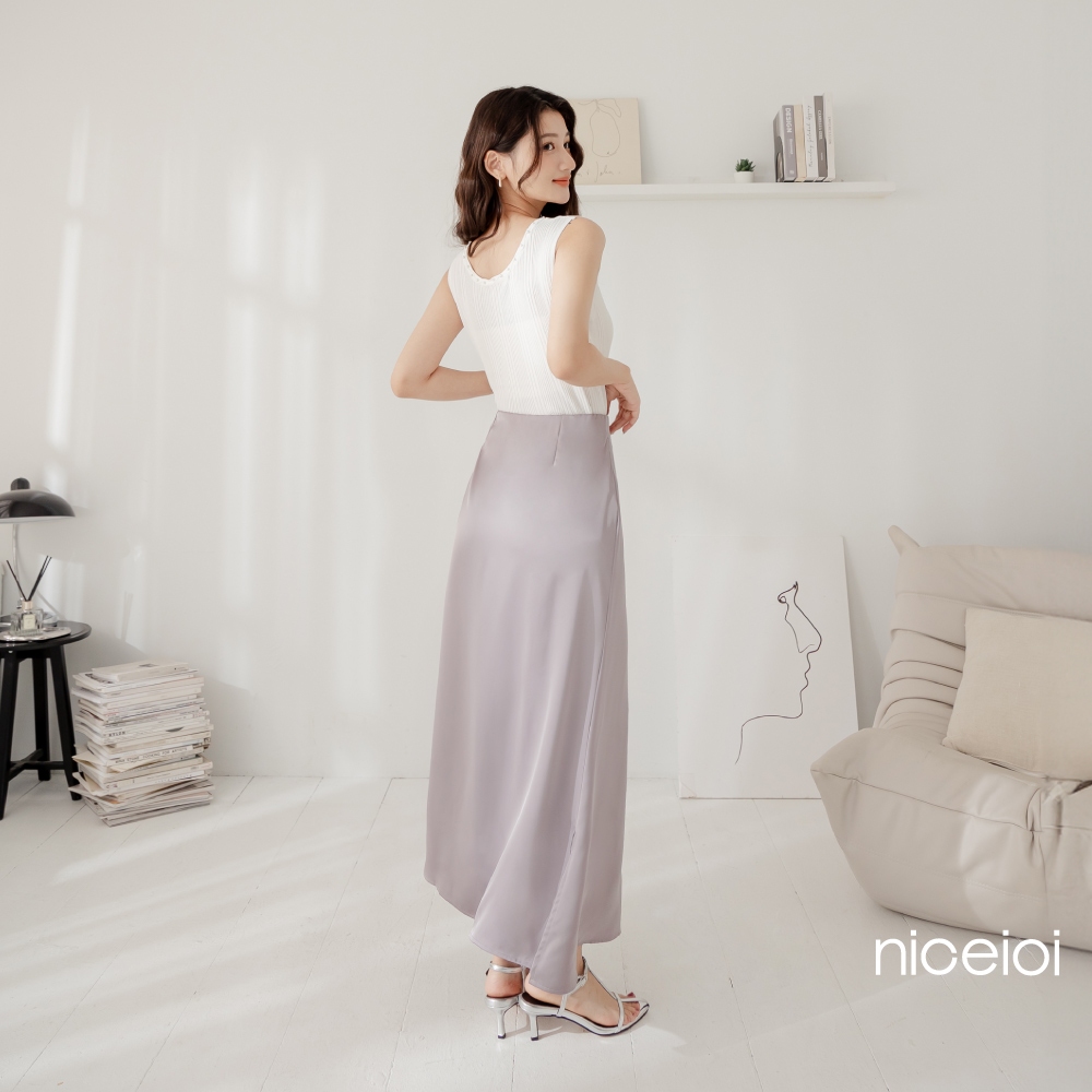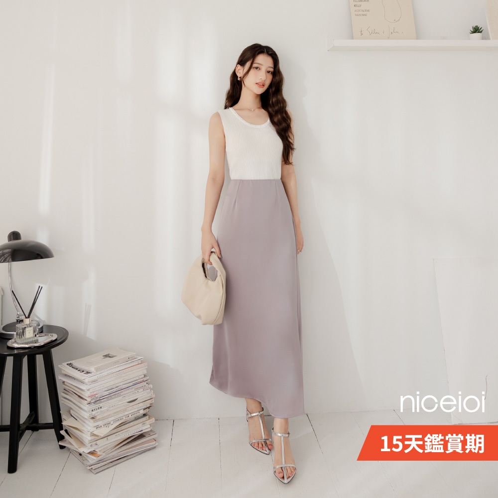 niceioi【特惠】氣質修身微光澤長裙 (共2色) 女裝灰,M|灰,L|灰,XL|黑,S|黑,M|黑,L|黑,XL|灰,Sniceioi 官方旗艦店