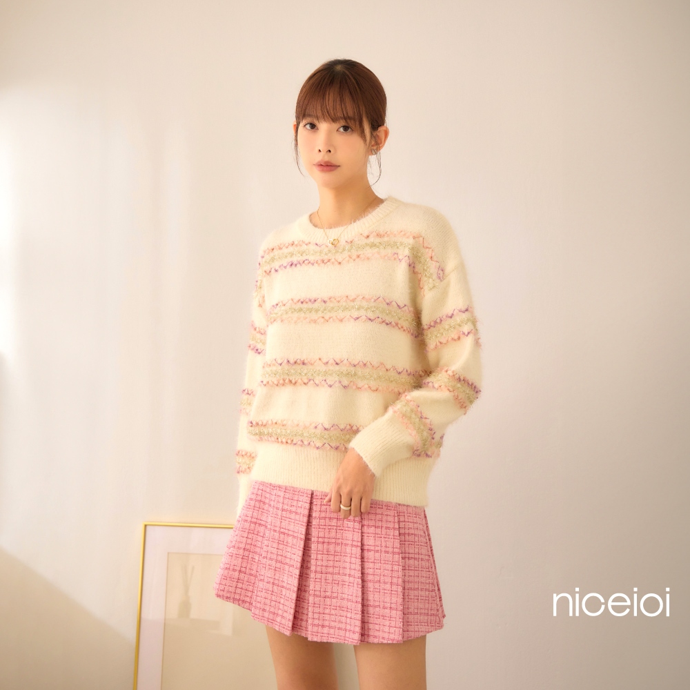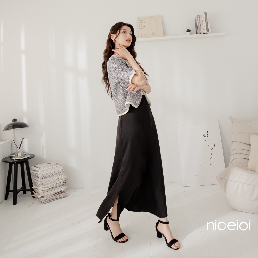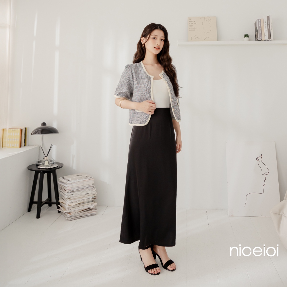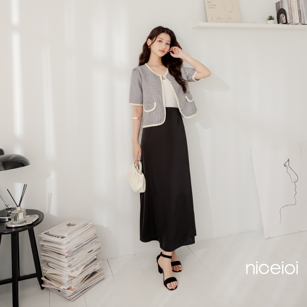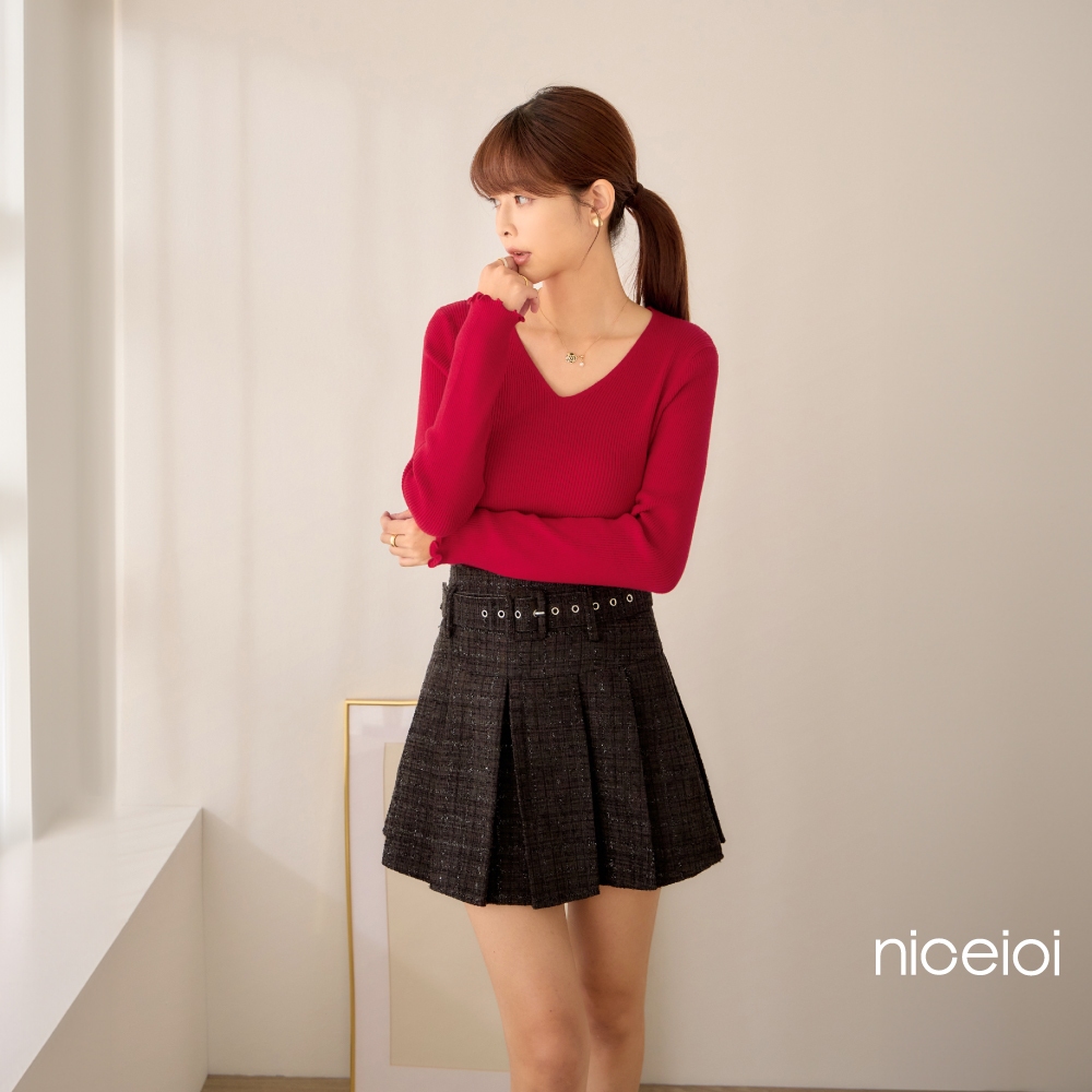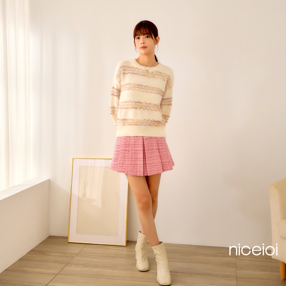 niceioi【特惠】Bling Bling小香中高腰百褶短裙 (共2色) 女裝黑,F|粉,Fniceioi 官方旗艦店