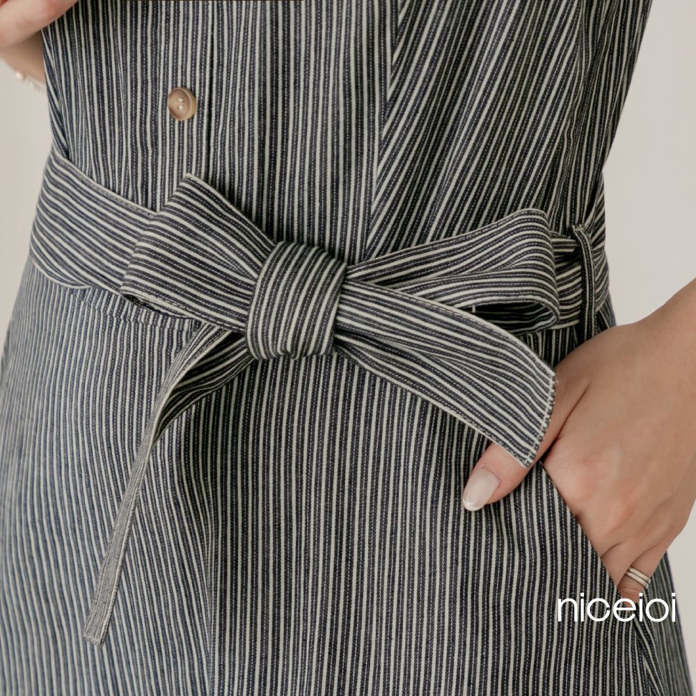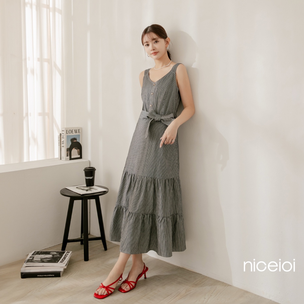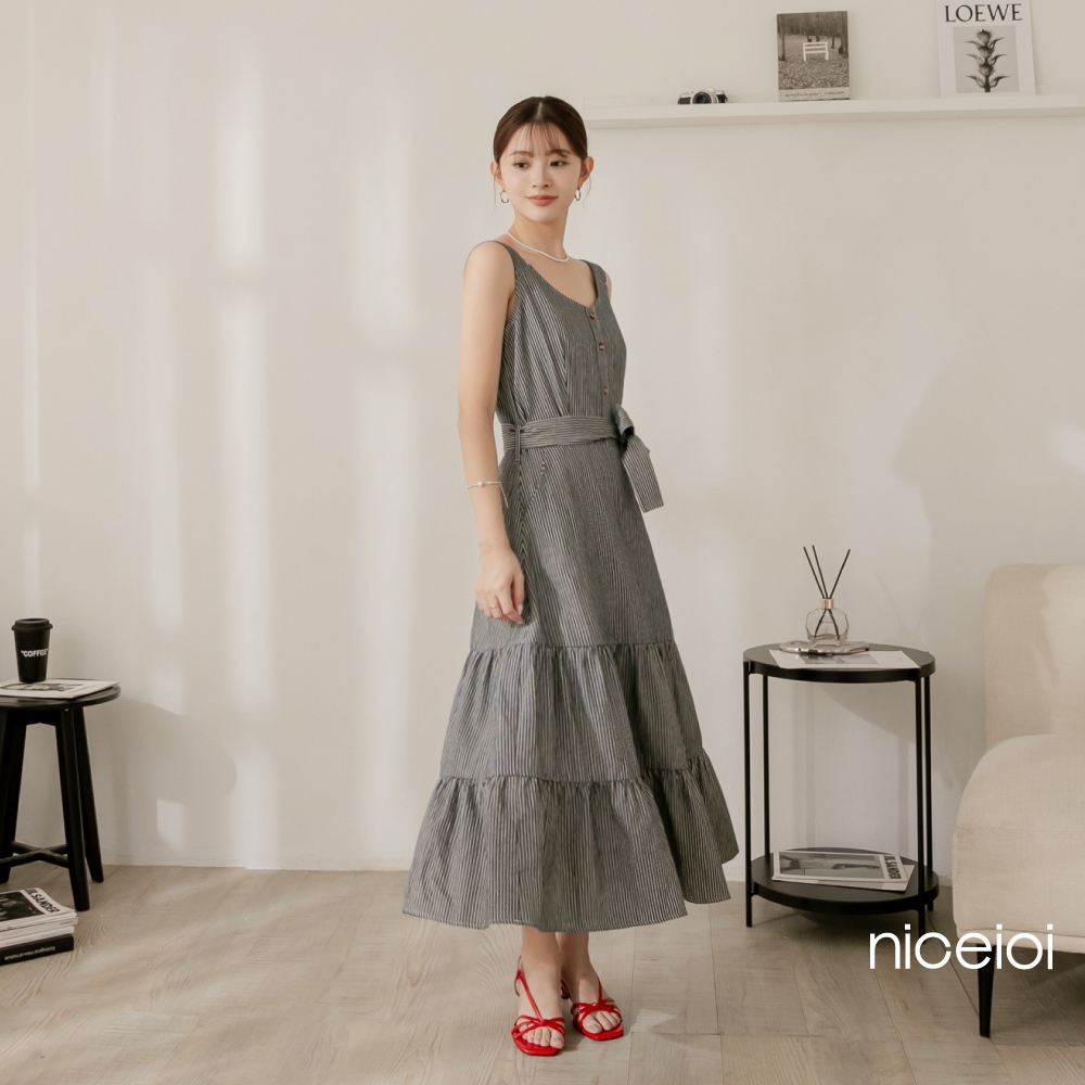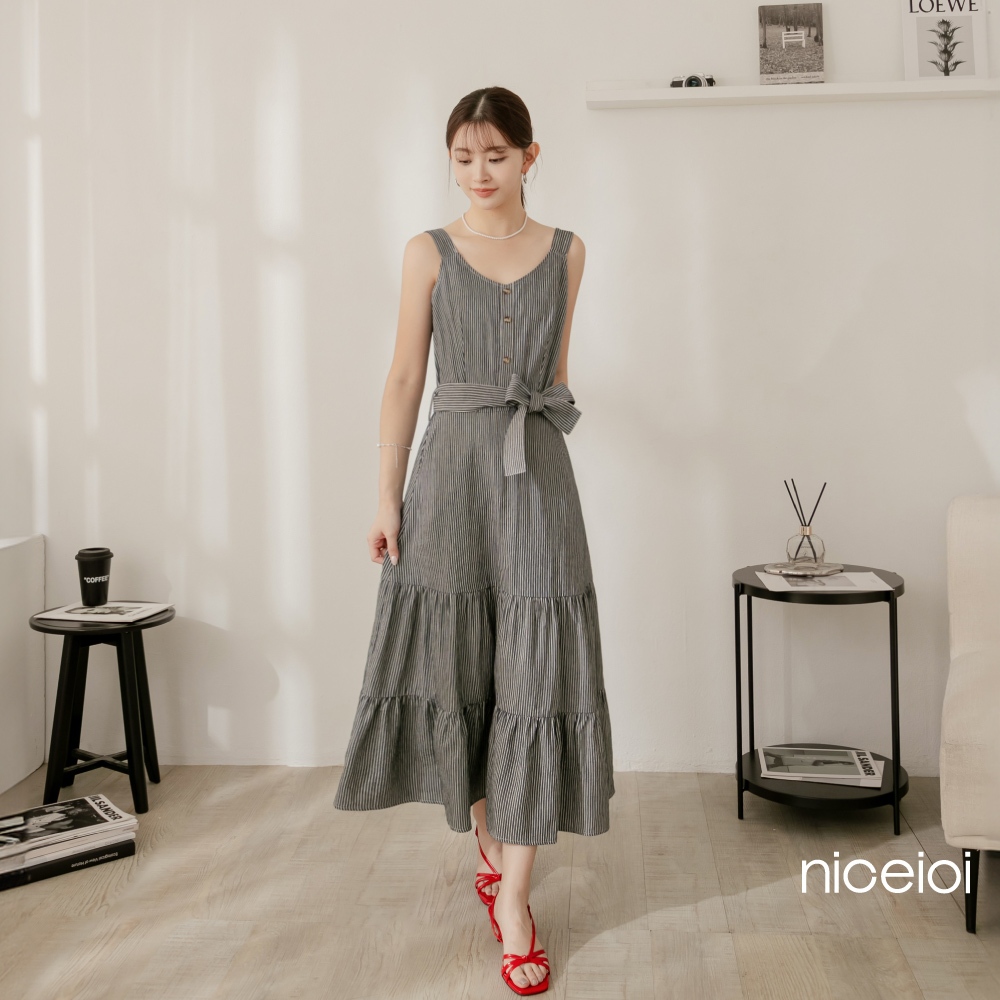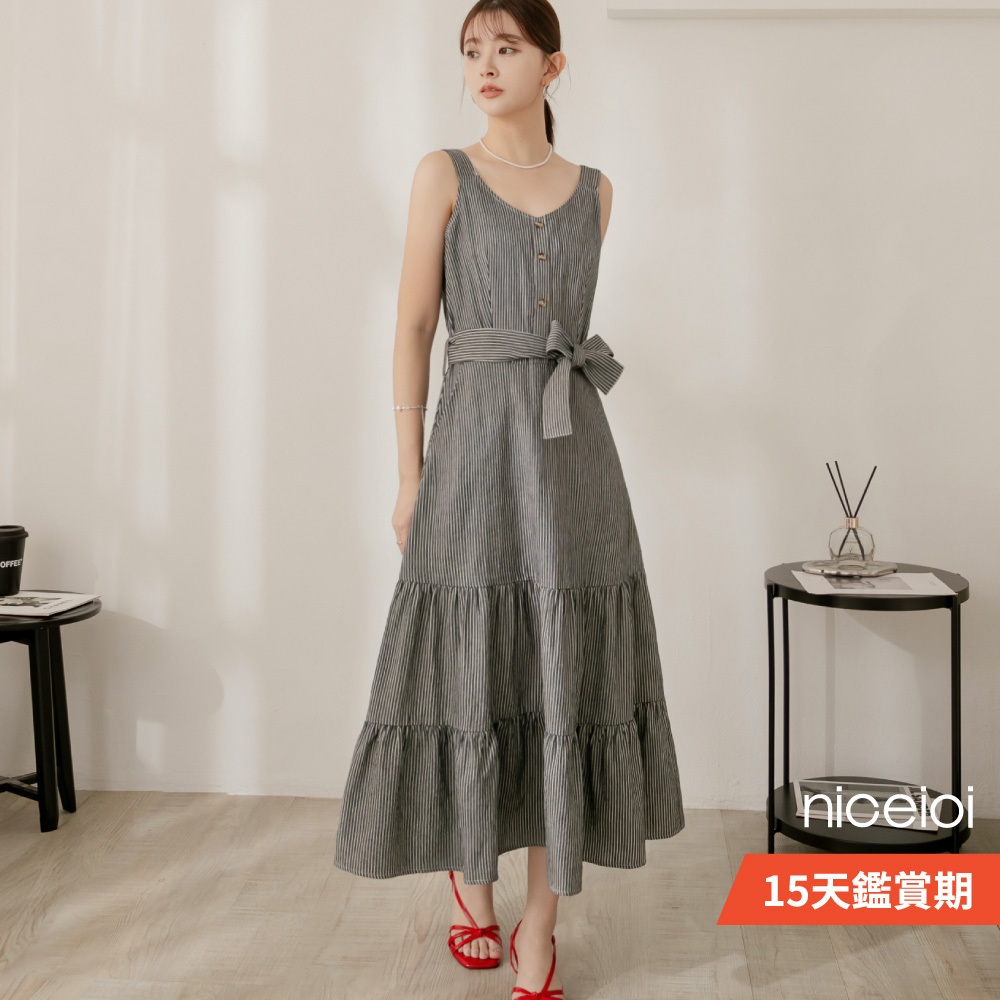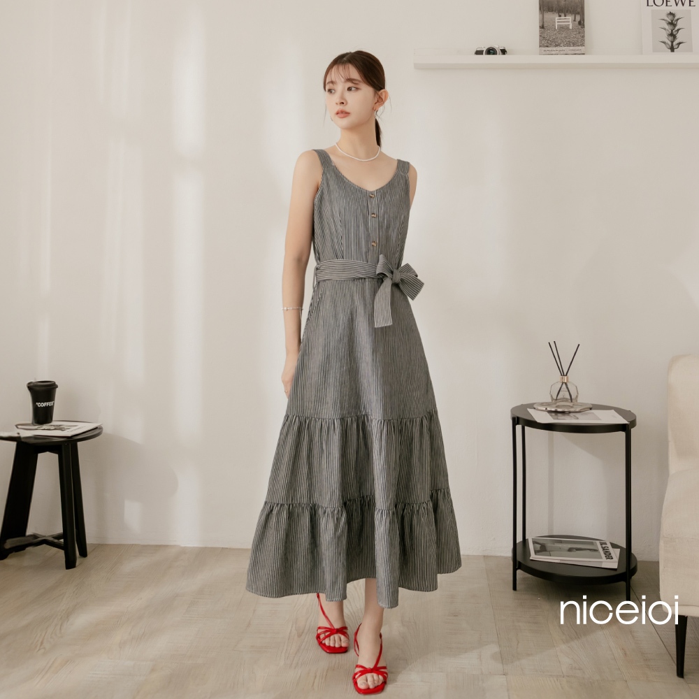 niceioi【特惠】春日蕩漾直條紋蛋糕洋裝(附綁帶) 女裝藍,S|藍,M|藍,L|藍,XLniceioi 官方旗艦店