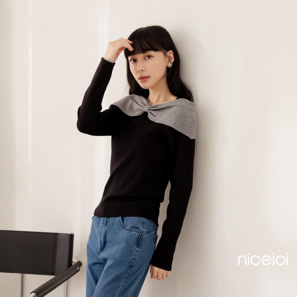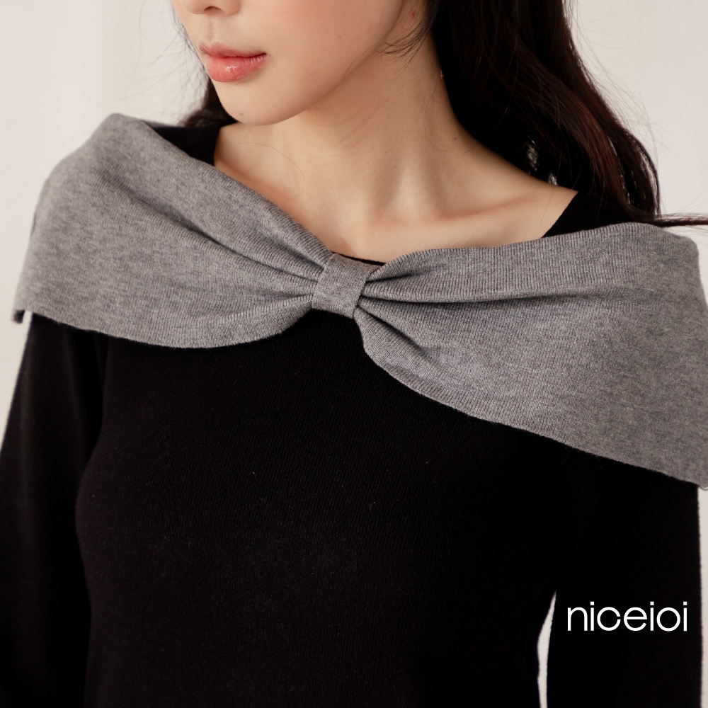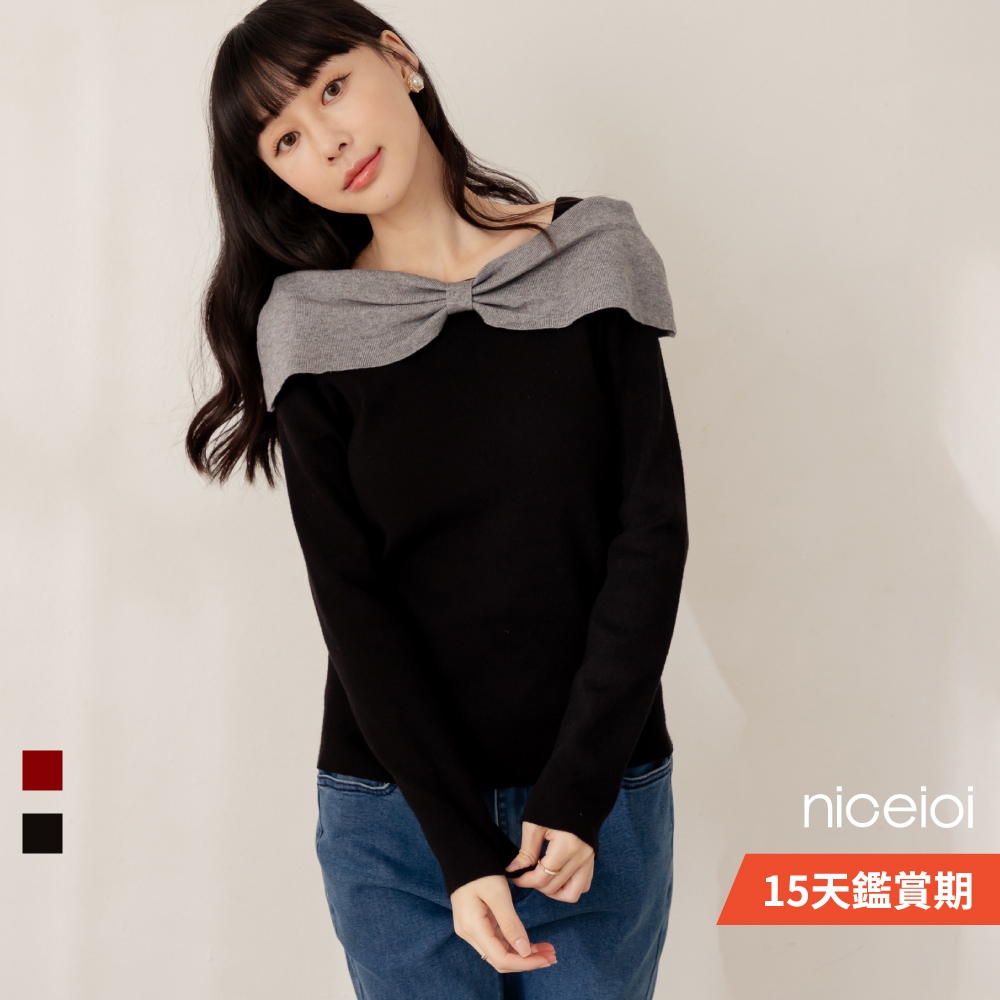 niceioi【特惠】大器蝴蝶結船領針織上衣 (共2色) 女裝