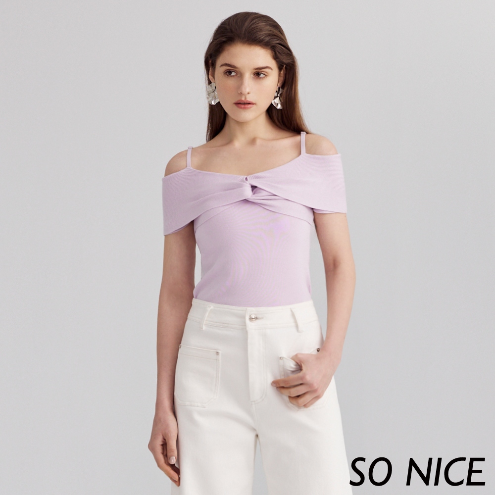 SO NICE【特惠】淡紫丁香露肩扭結修身針織上衣|都會時尚女裝【93430018】紫,34(XS)|紫,36(S)|紫,38(M)|紫,40(L)SO NICE 官方旗艦店