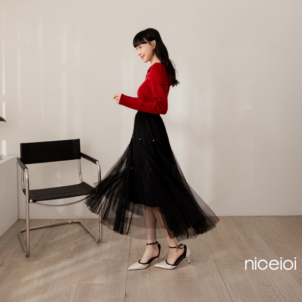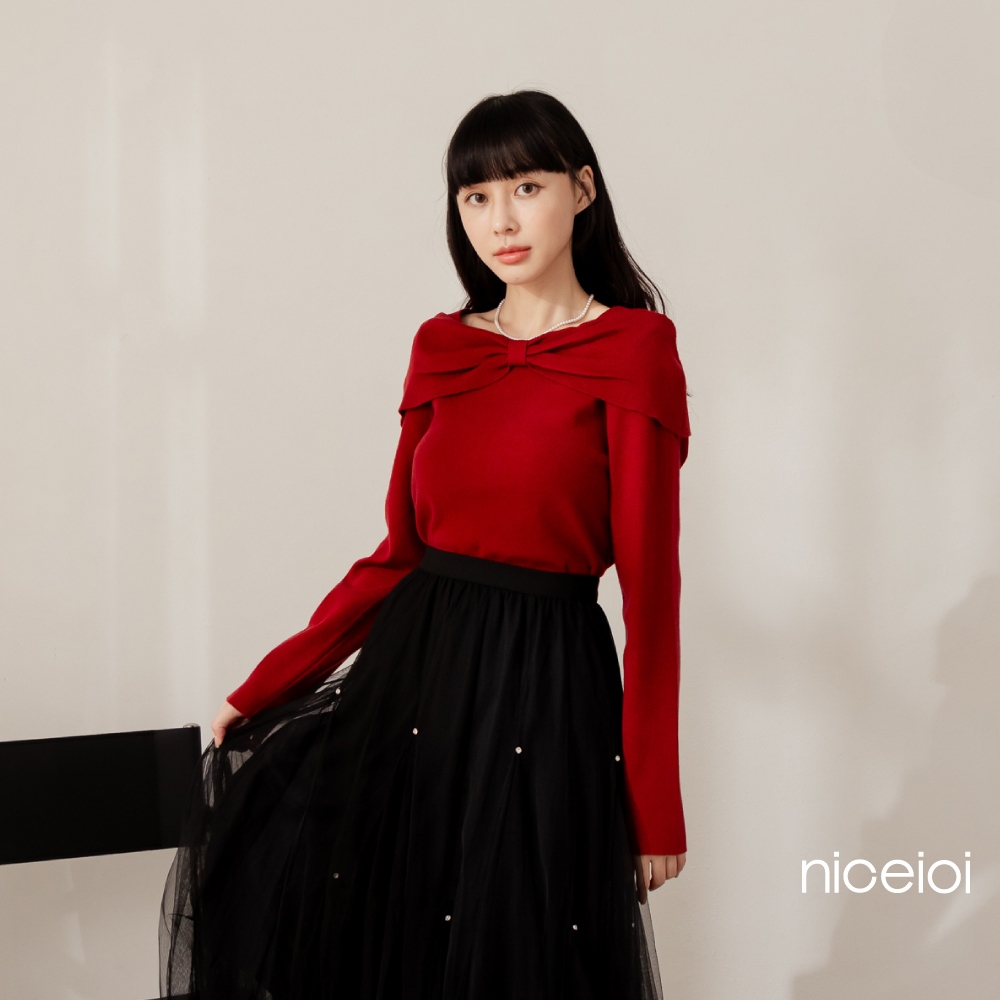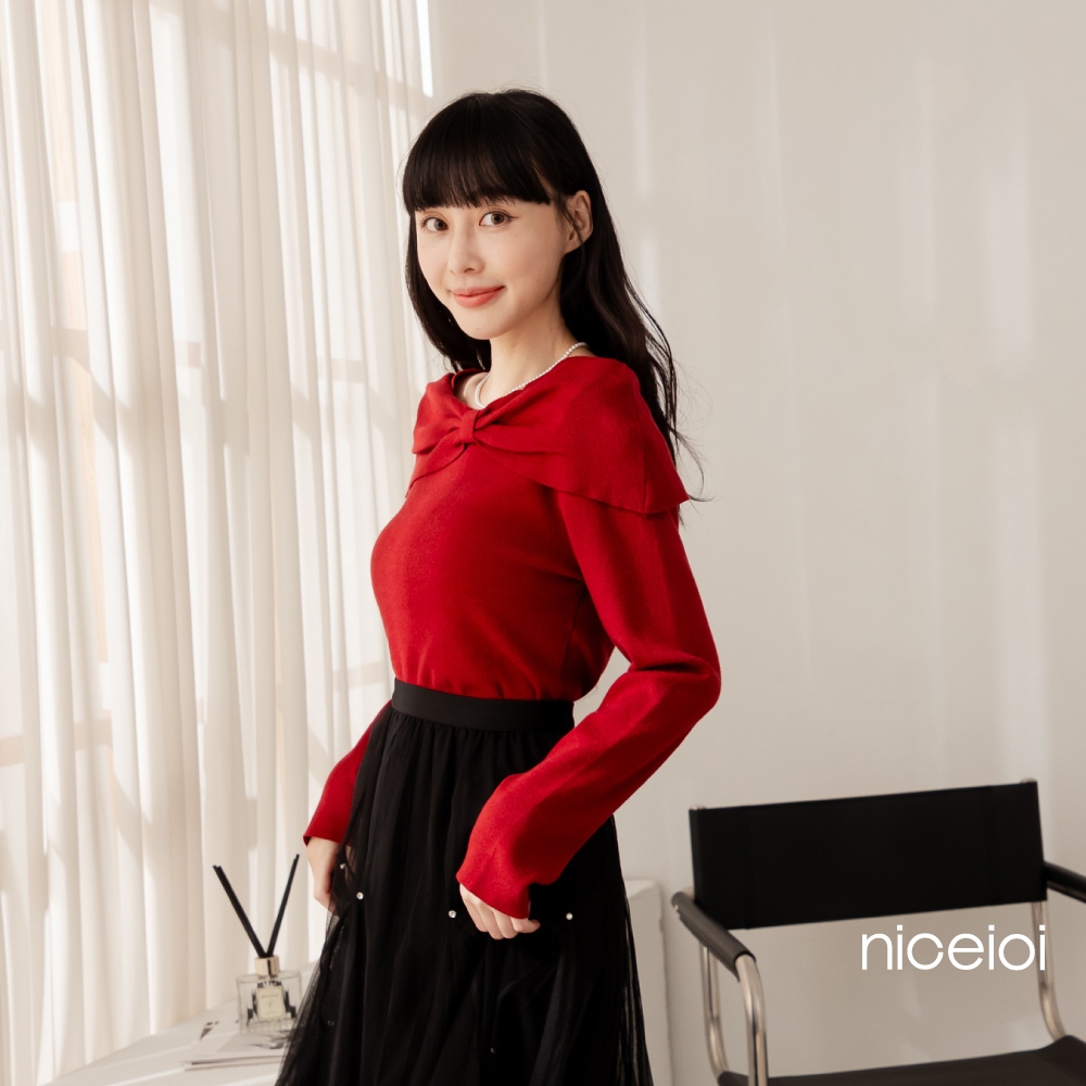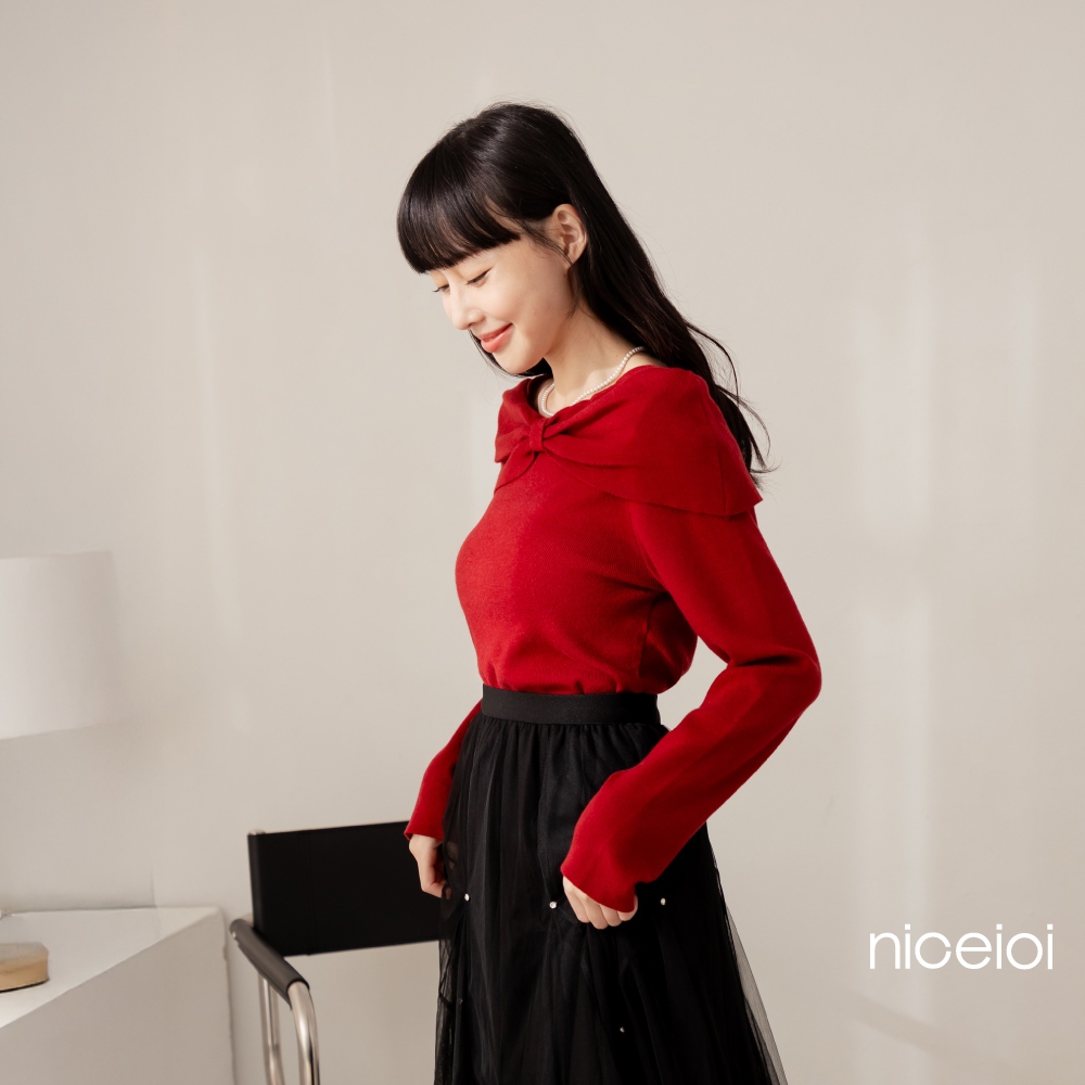 niceioi【特惠】大器蝴蝶結船領針織上衣 (共2色) 女裝黑,S|黑,M|黑,L|紅,S|紅,M|紅,Lniceioi 官方旗艦店