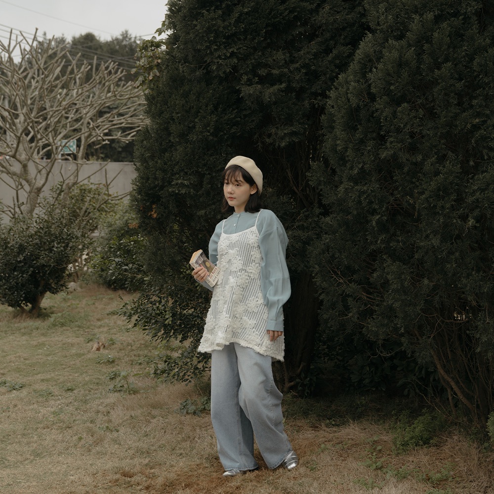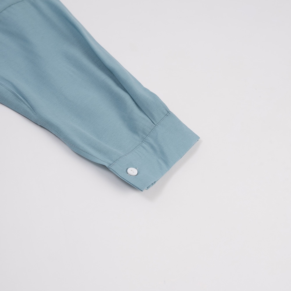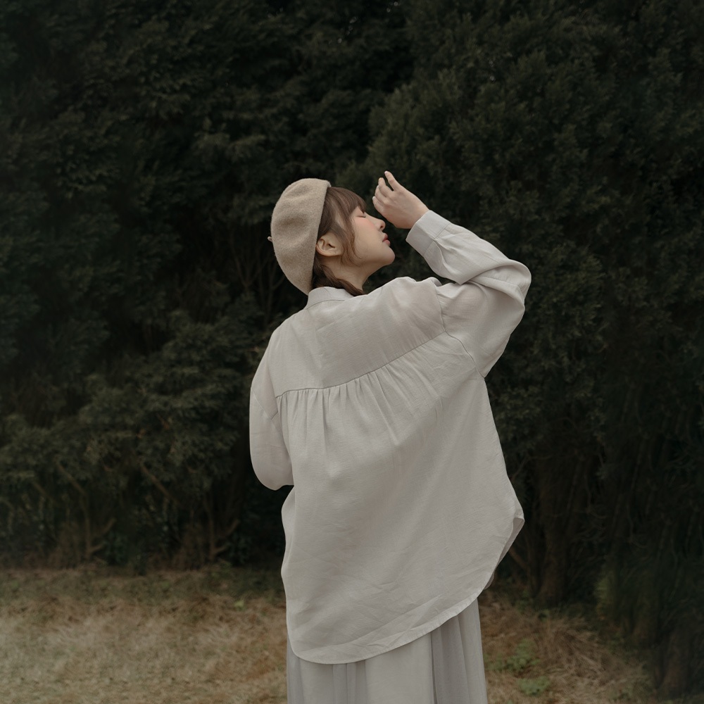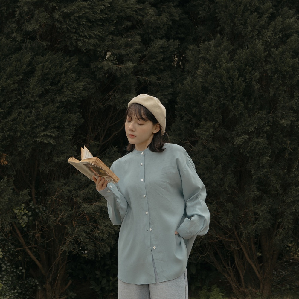 QUEENSHOP_ S 女裝 長袖 素面微透膚剪接中山領襯衫 三色售 現+預 【01025257】藍|杏|淺灰Shirts & BlousesQUEENSHOP