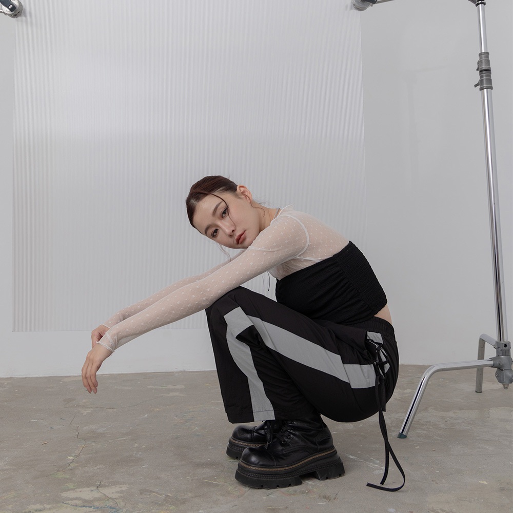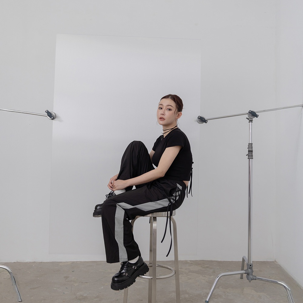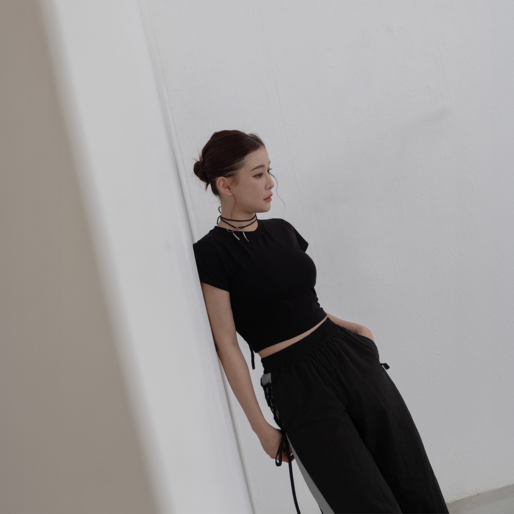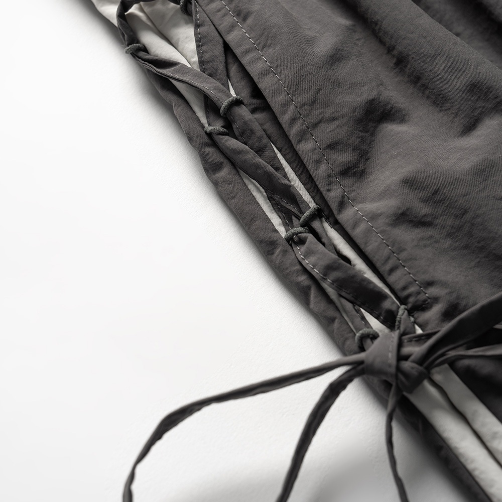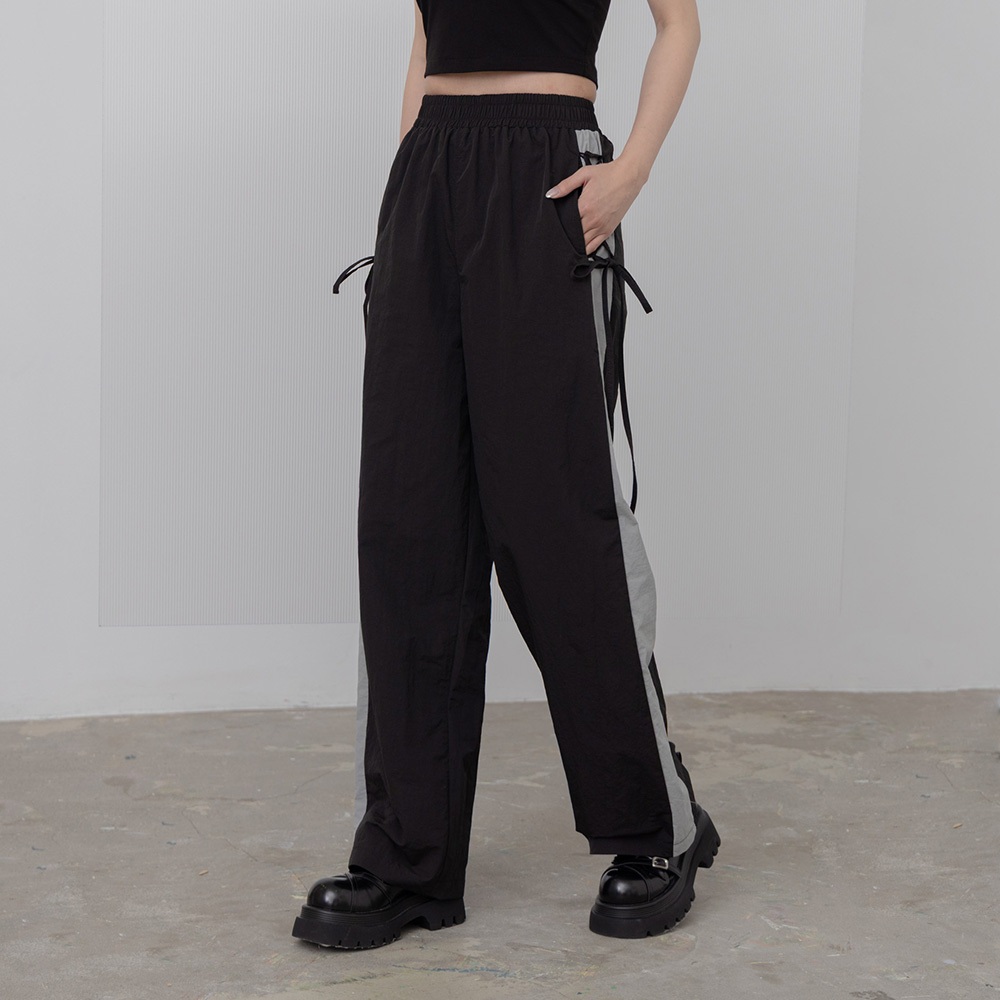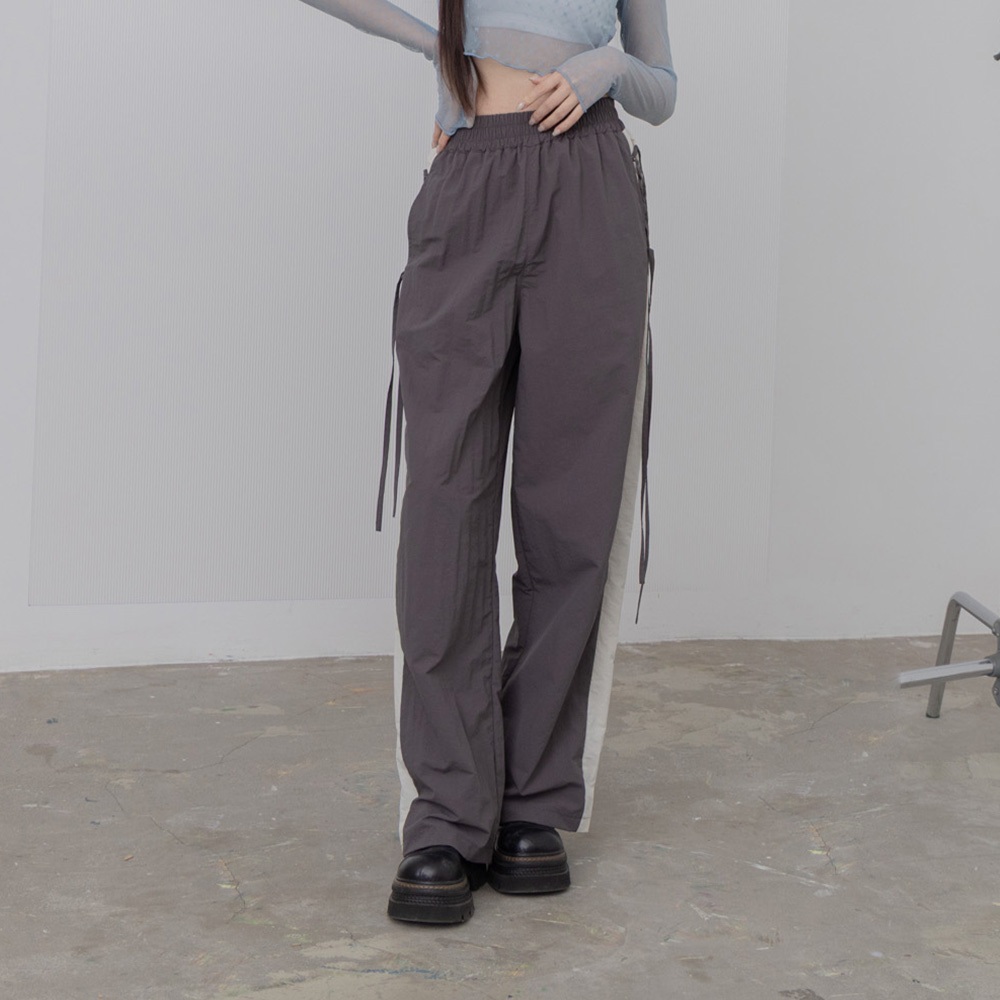 QUEENSHOP_ S 女裝 側撞色拼接交叉綁帶長褲 兩色售 現+預 【04101928】黑|深灰PantsQUEENSHOP