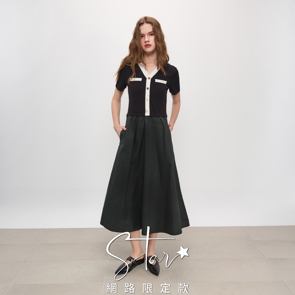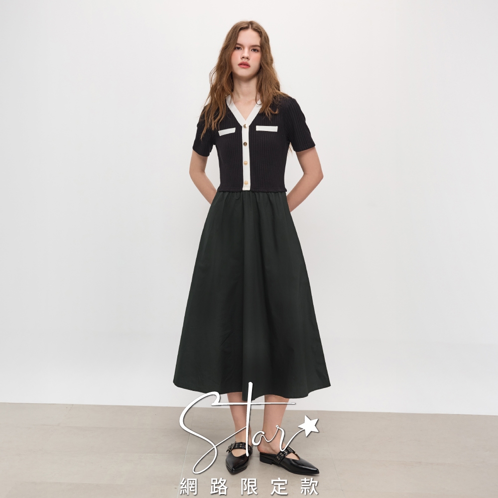 SO NICE 小香風撞色V領顯瘦坑條拼接時裝布長洋裝|STAR|都會時尚女裝【3553F012】黑,36(S)|黑,38(M)|黑,40(L)|黑,42(XL)|黑,34(XS)SO NICE 官方旗艦店