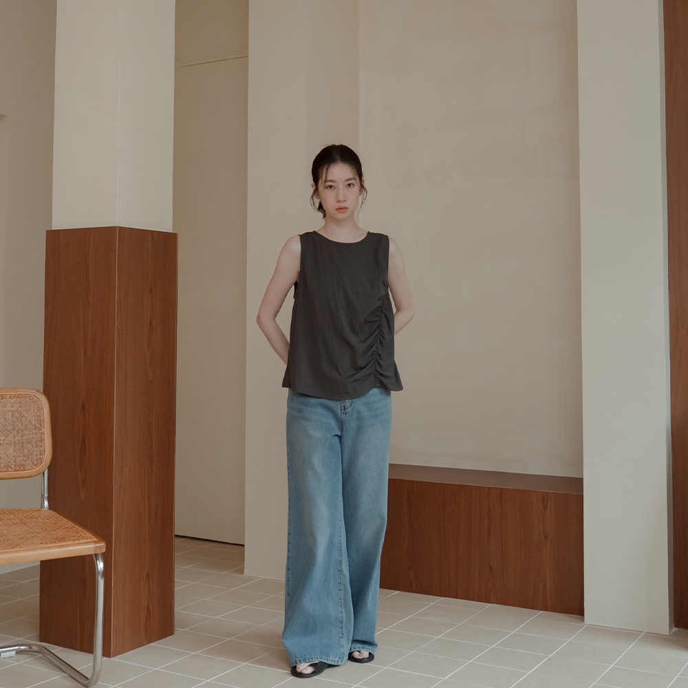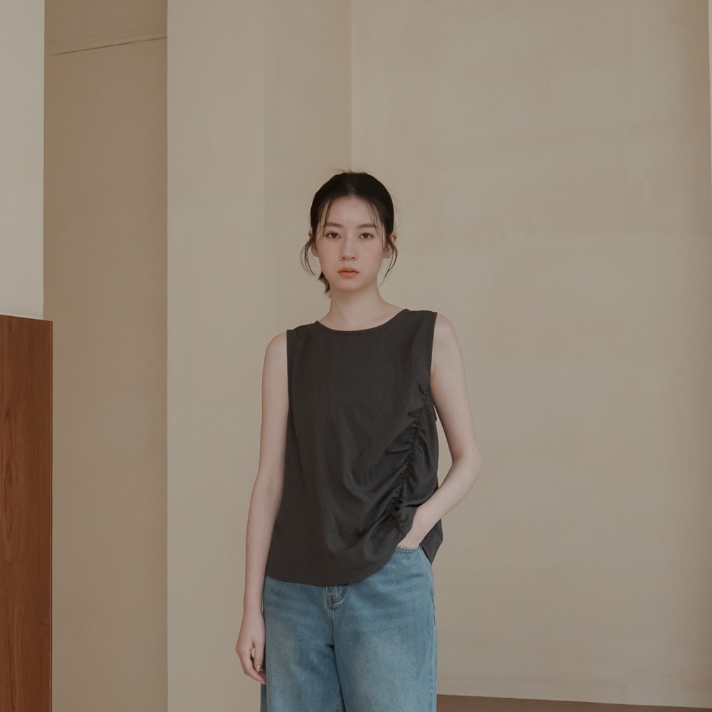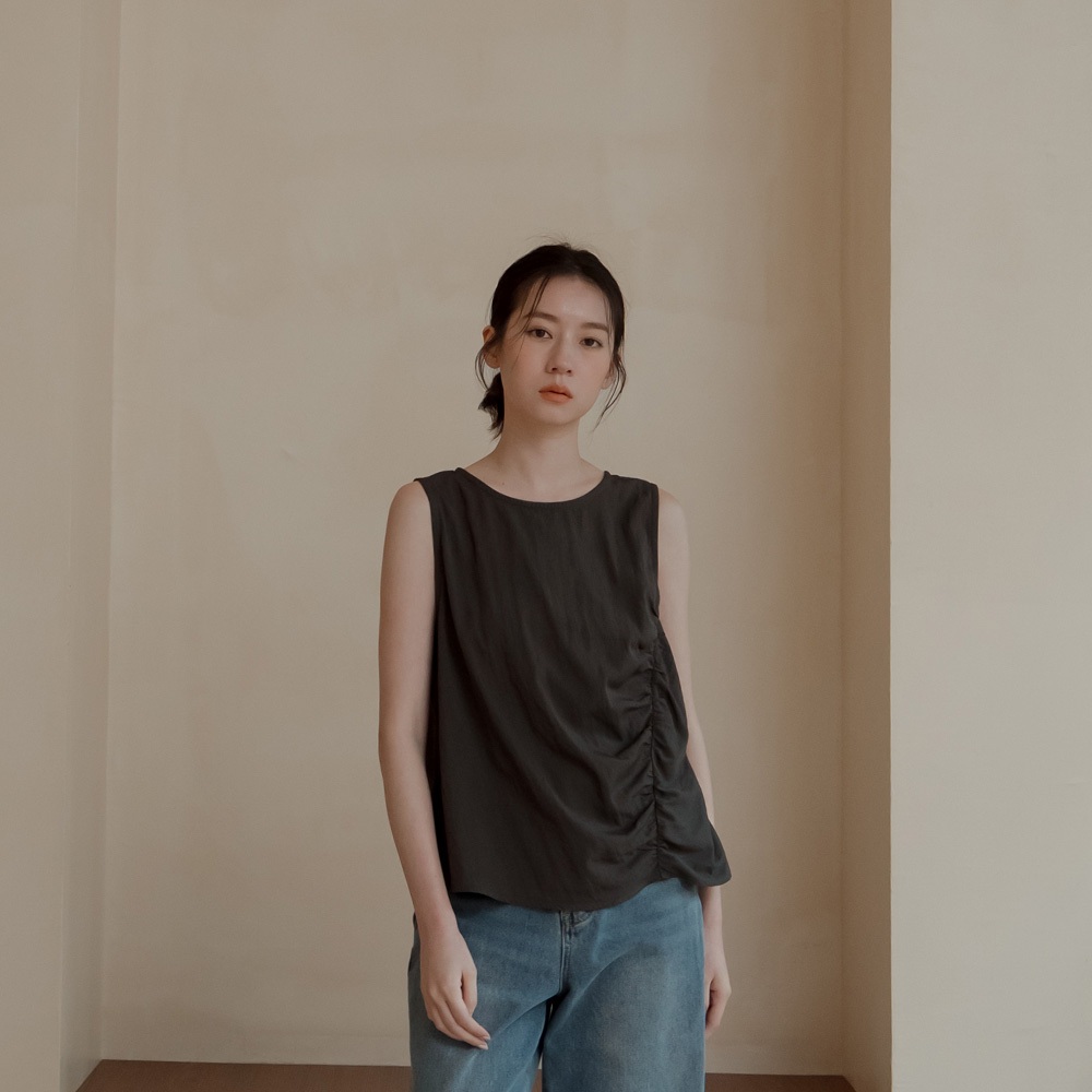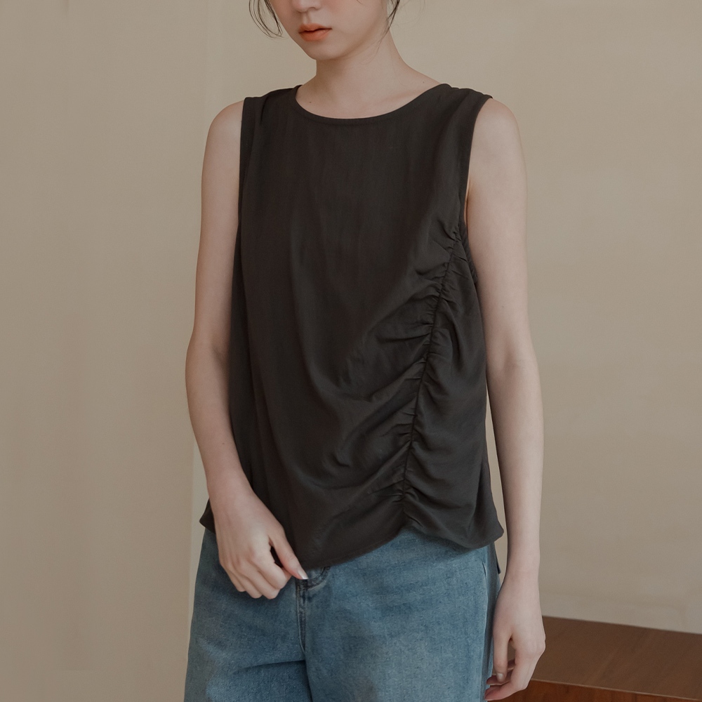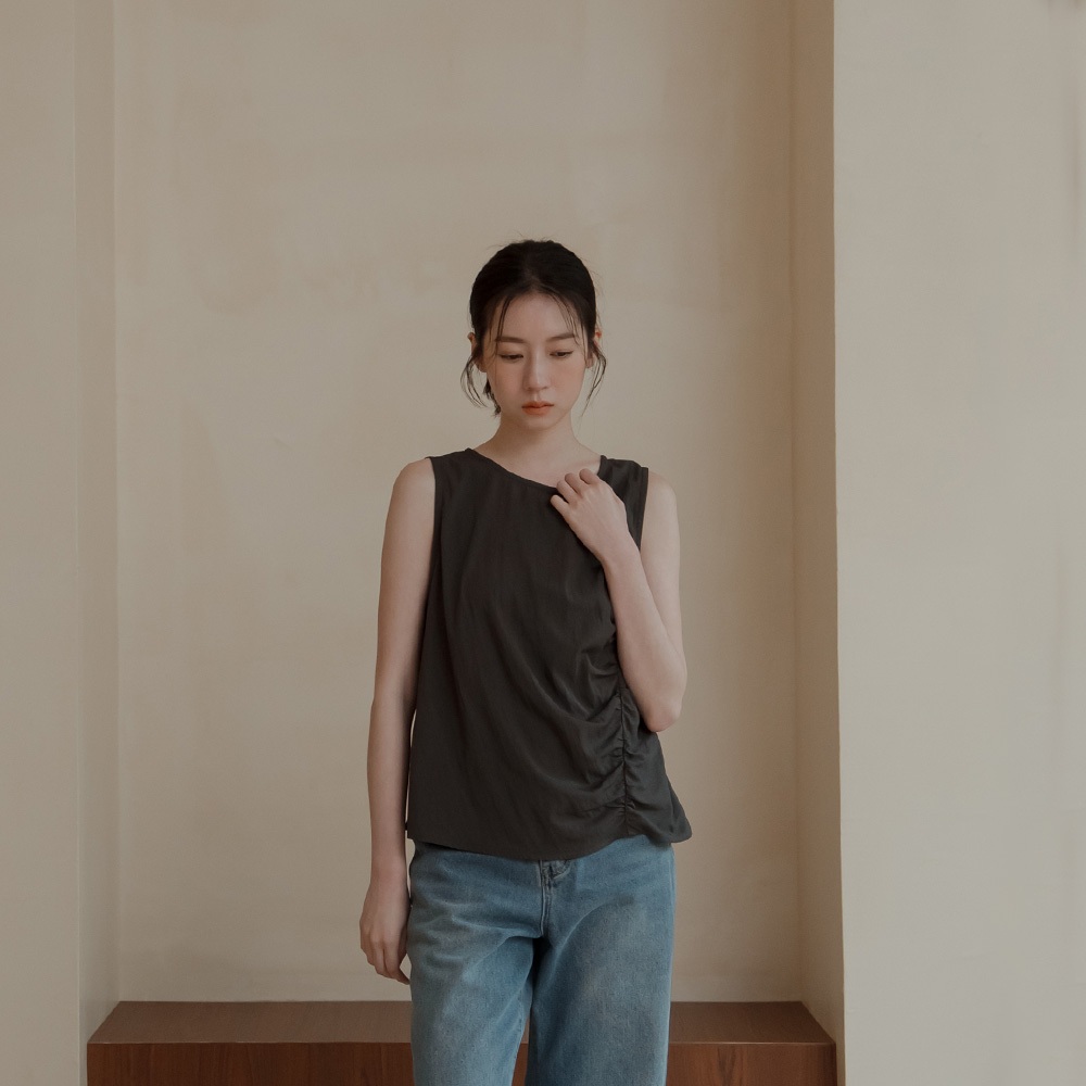 QUEENSHOP_ S 女裝 簡約側邊前胸抓皺寬版背心-灰 現+預 【01150447】灰OthersQUEENSHOP