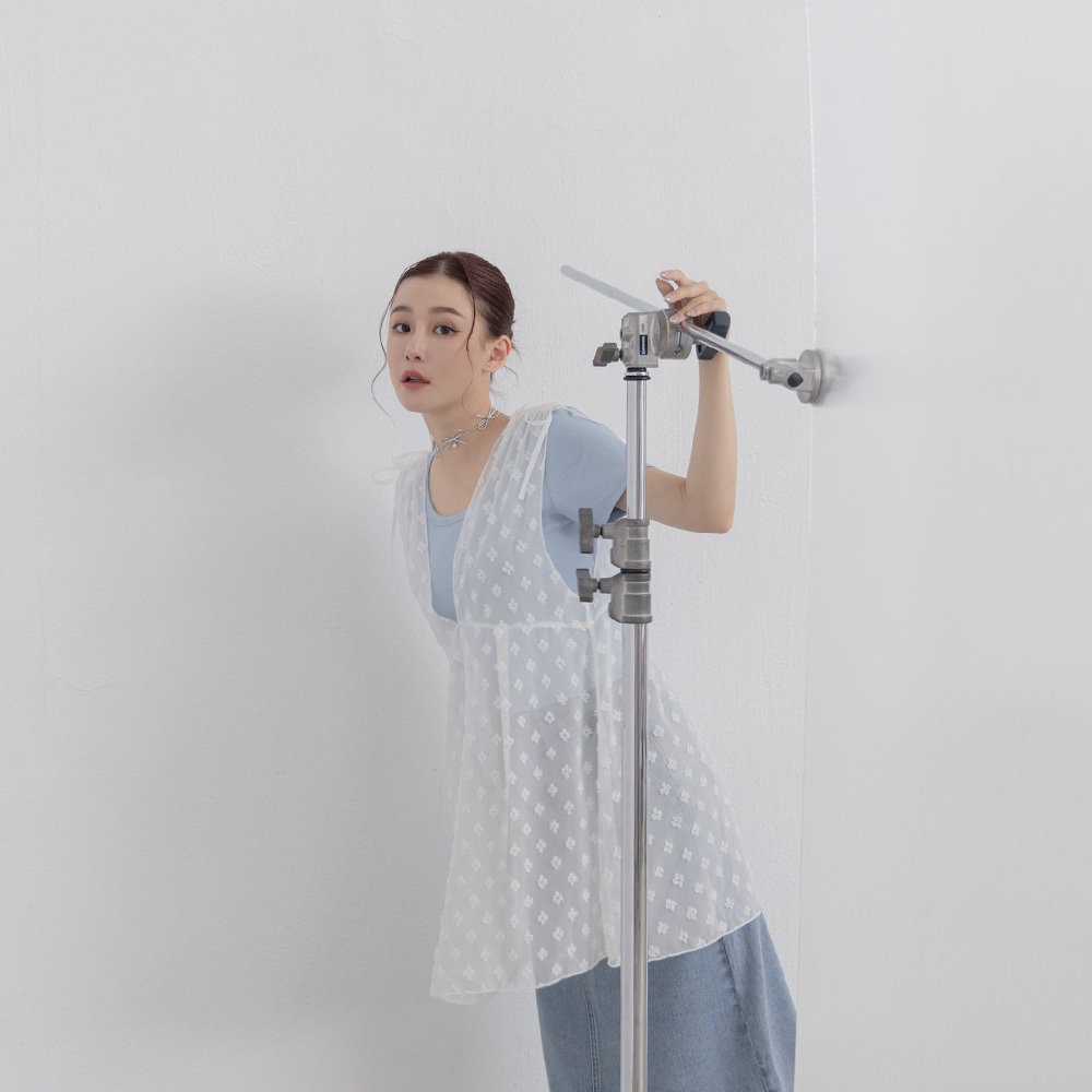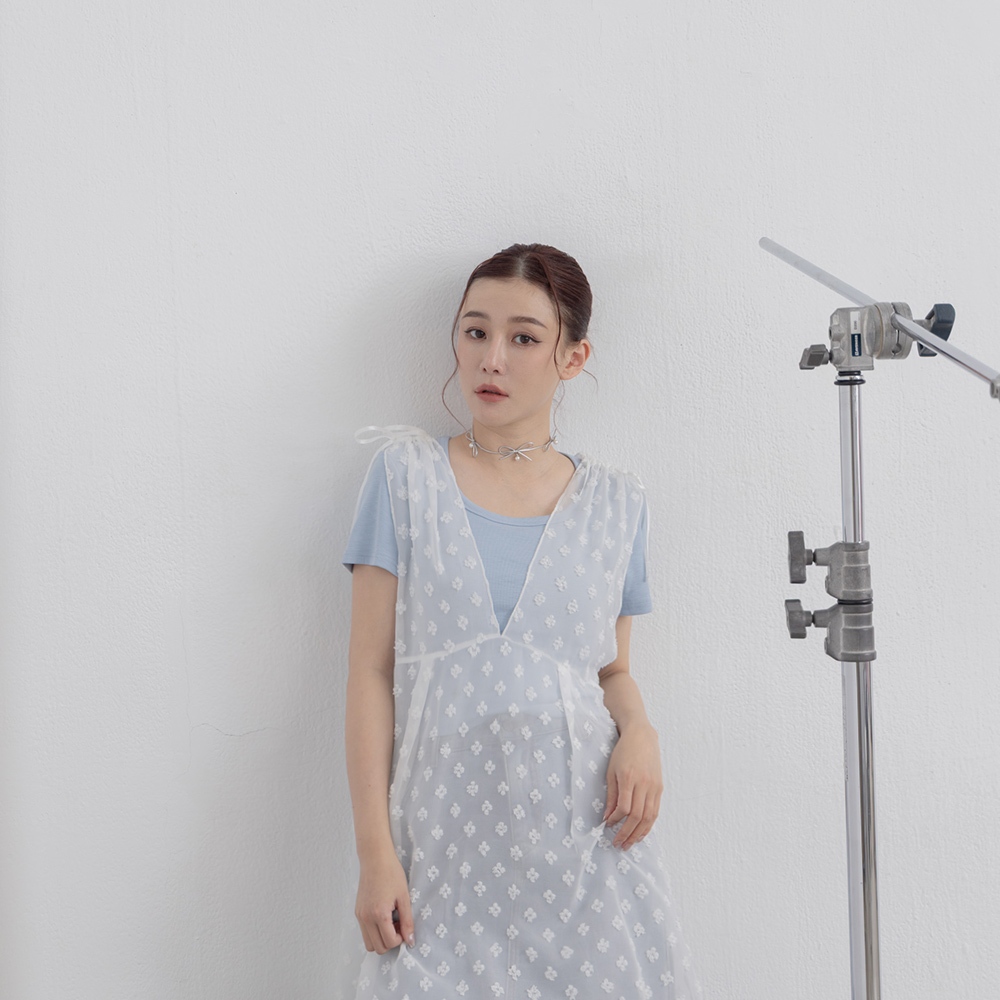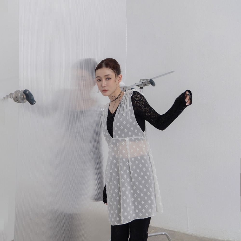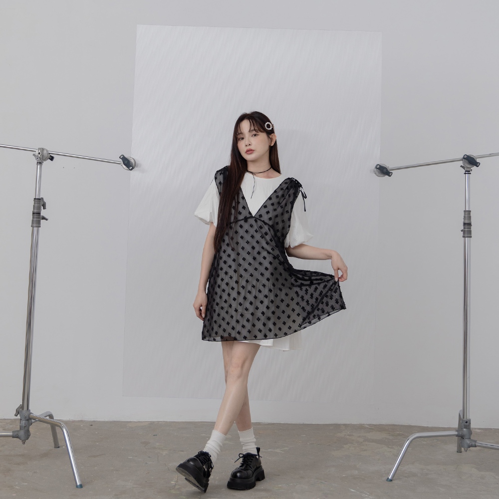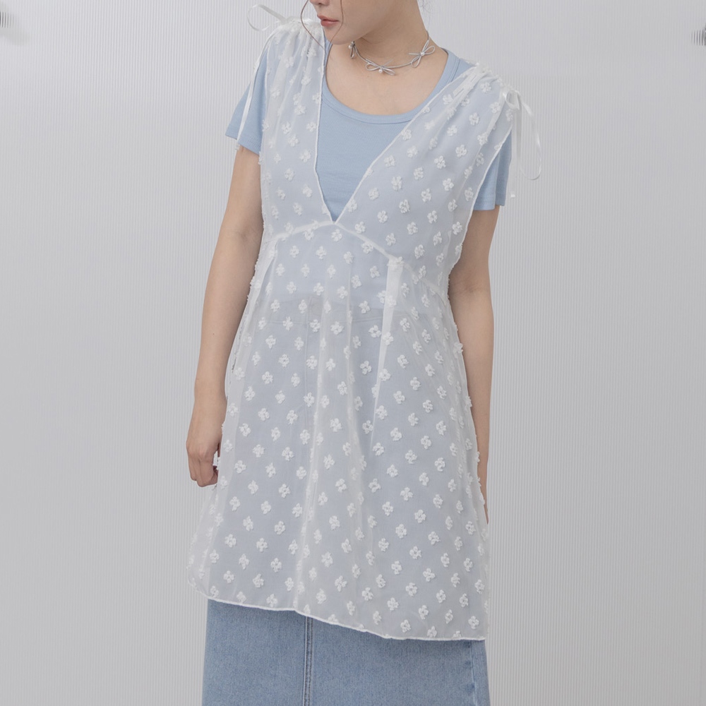 QUEENSHOP_ S 女裝 肩抽皺綁帶小花透紗罩衫背心 兩色售 現+預 【01099050】黑|白OthersQUEENSHOP