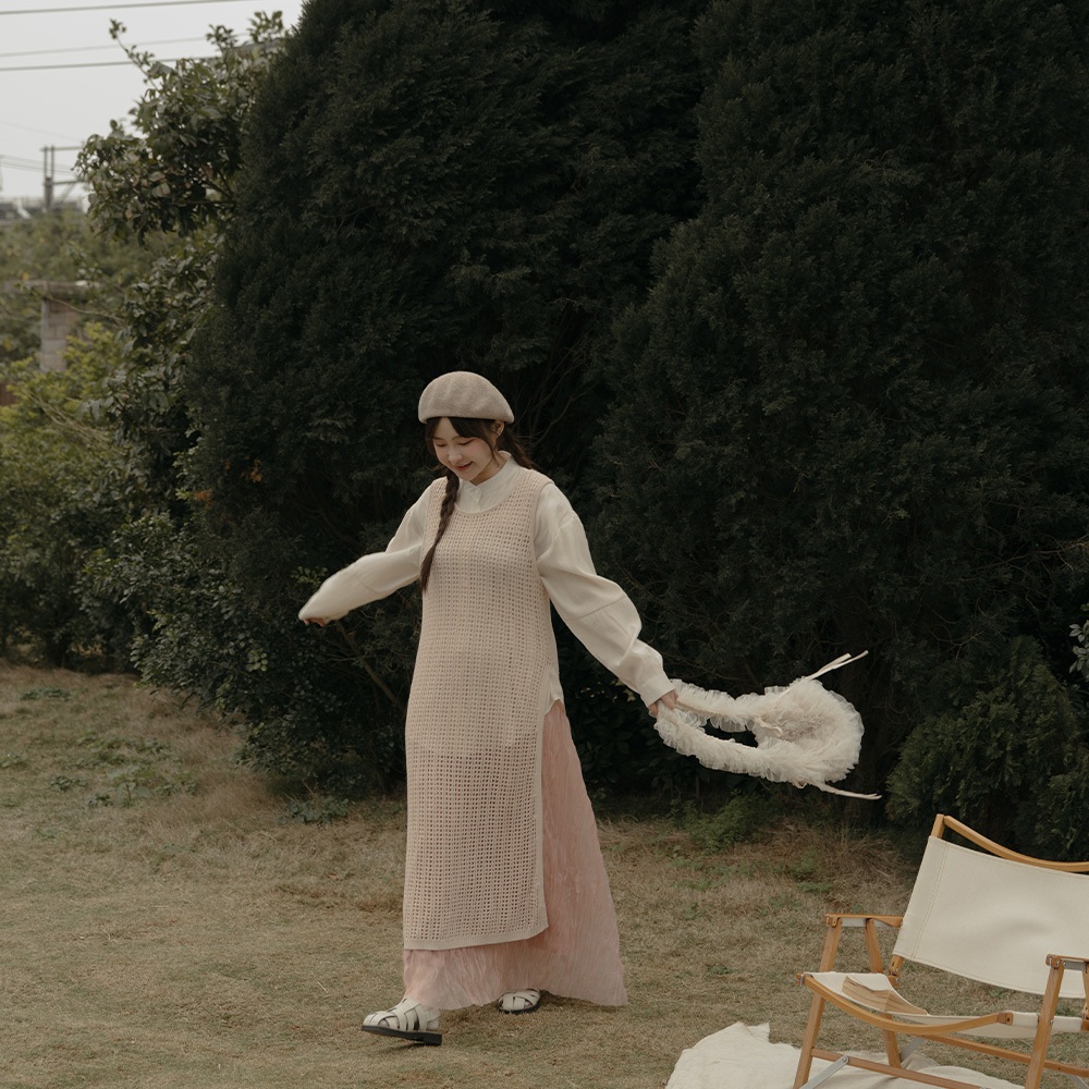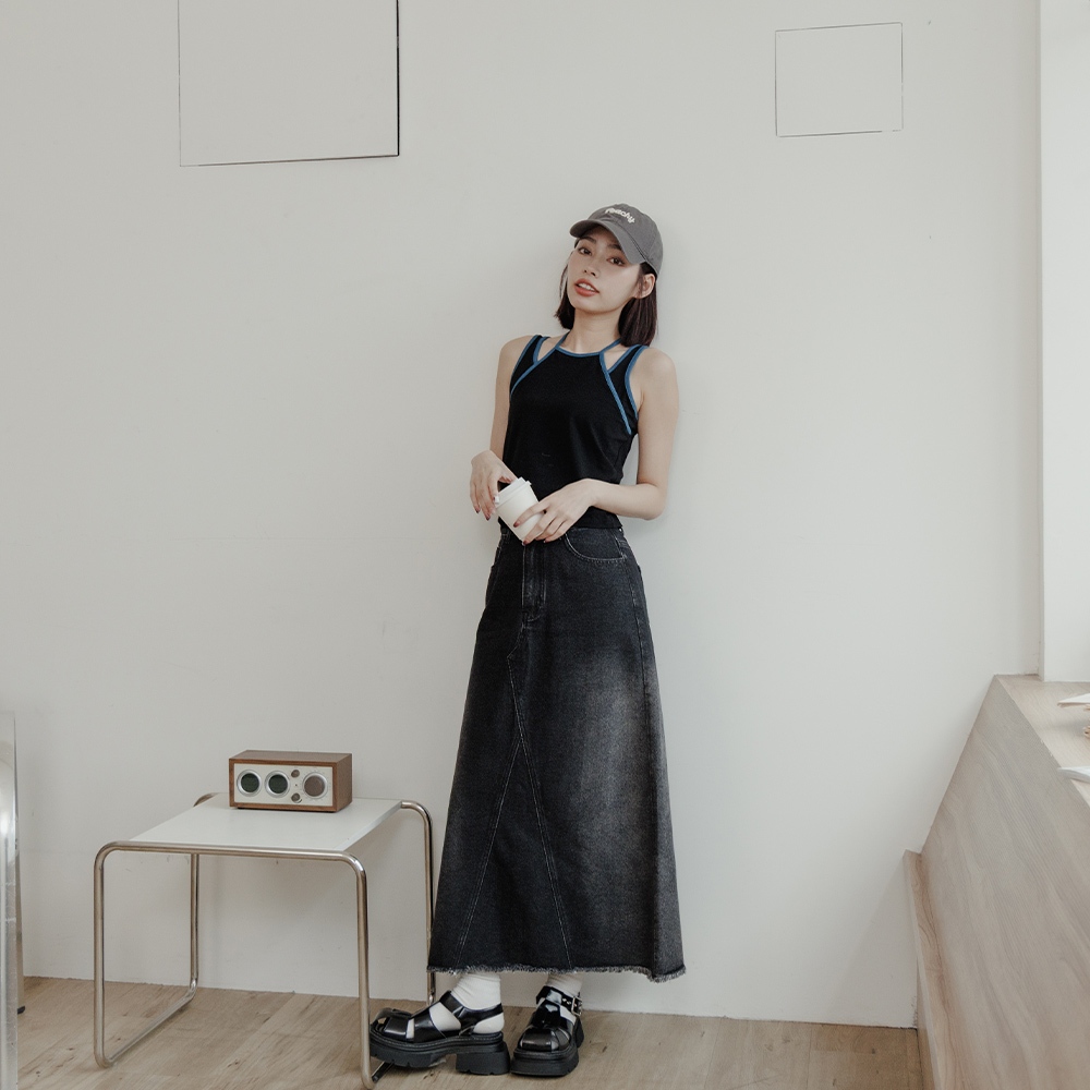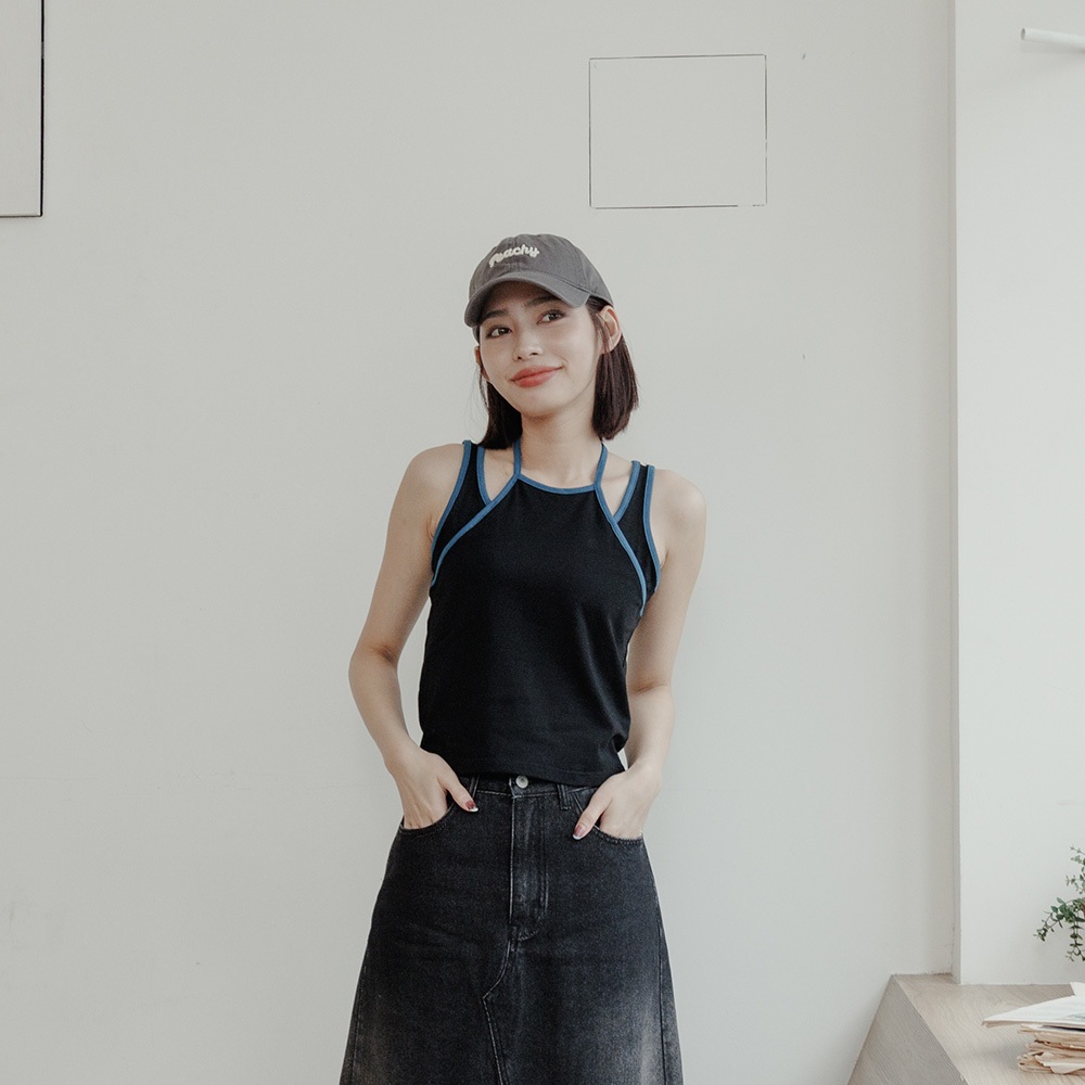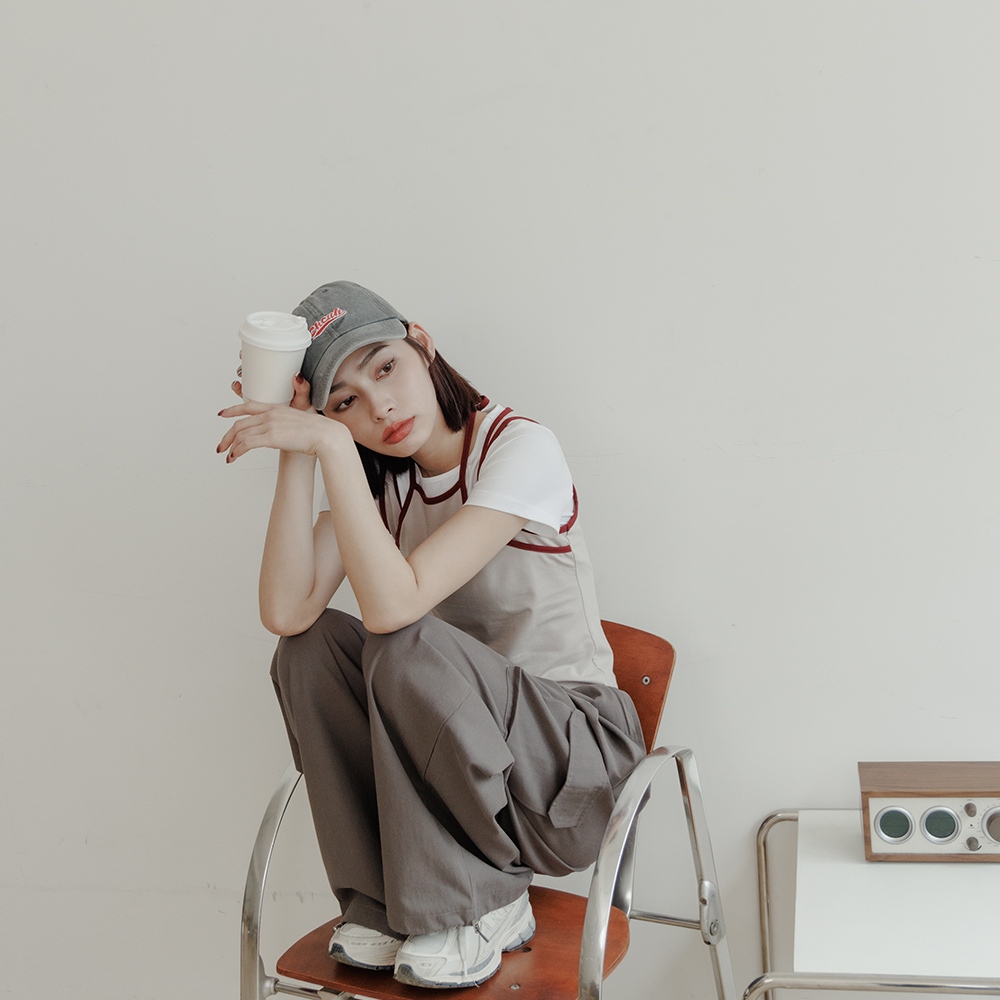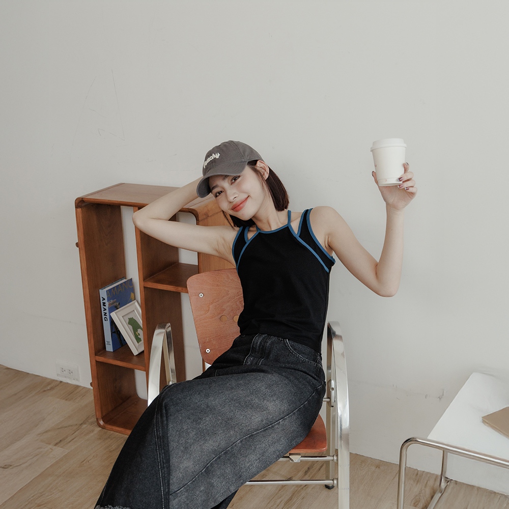 QUEENSHOP_ S 女裝 假兩件設計撞色綁帶背心 兩色售 現+預 【01150451】黑|杏灰Tanks & CamisolesQUEENSHOP