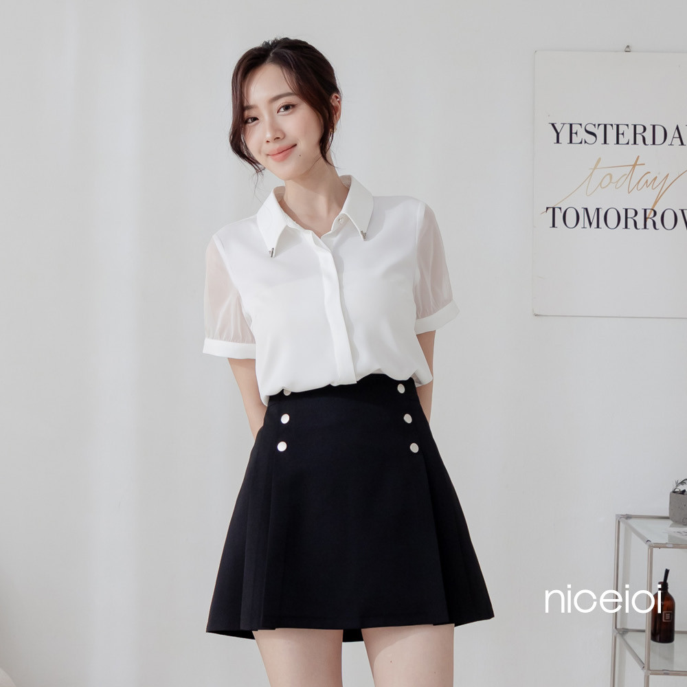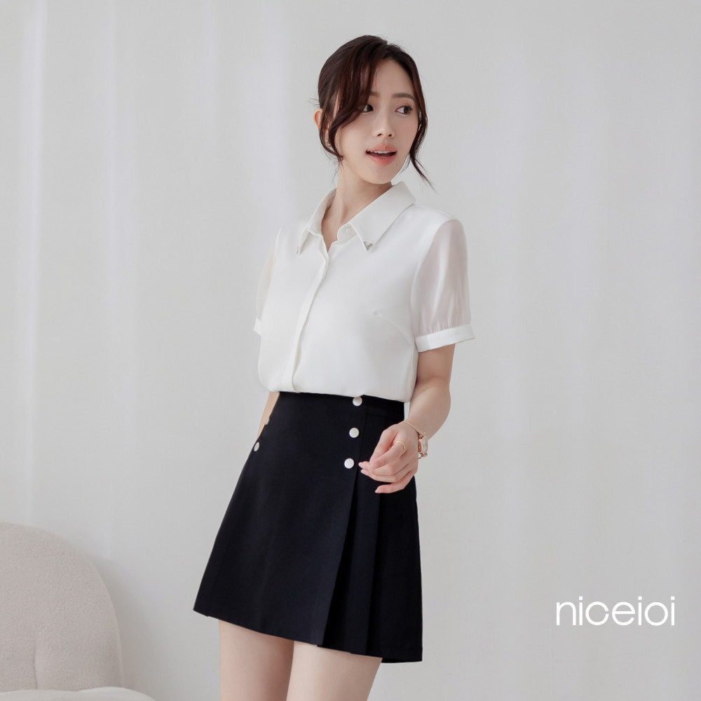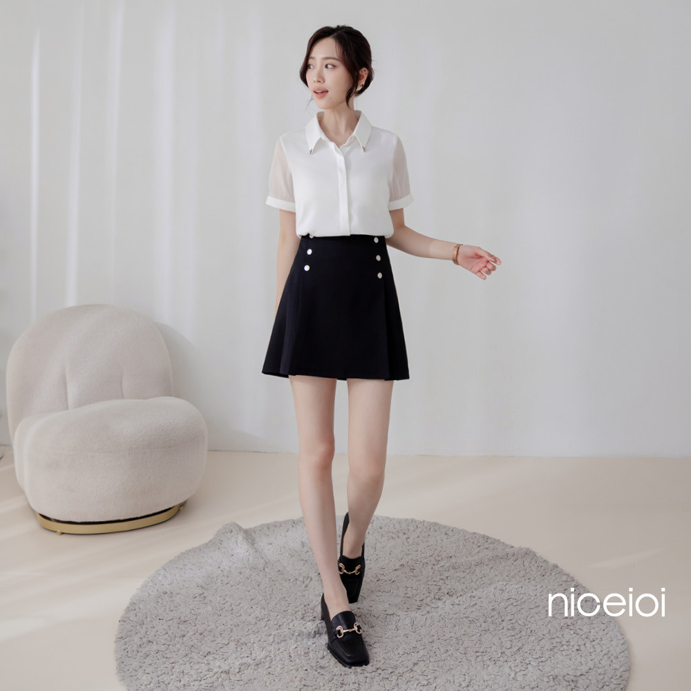 niceio 摩登都會高腰百褶時裝面料褲裙 女裝黑,S|黑,M|黑,L|黑,XLniceioi 官方旗艦店