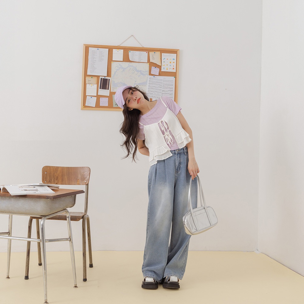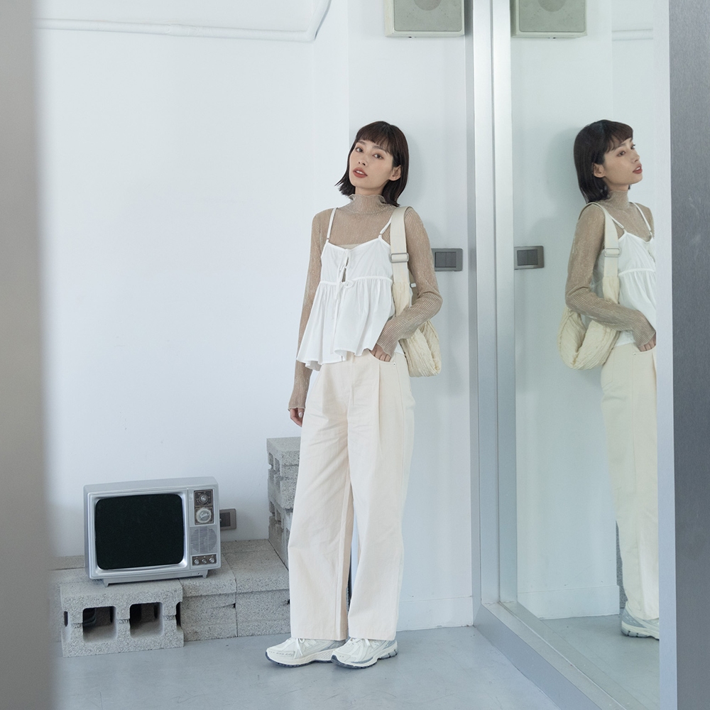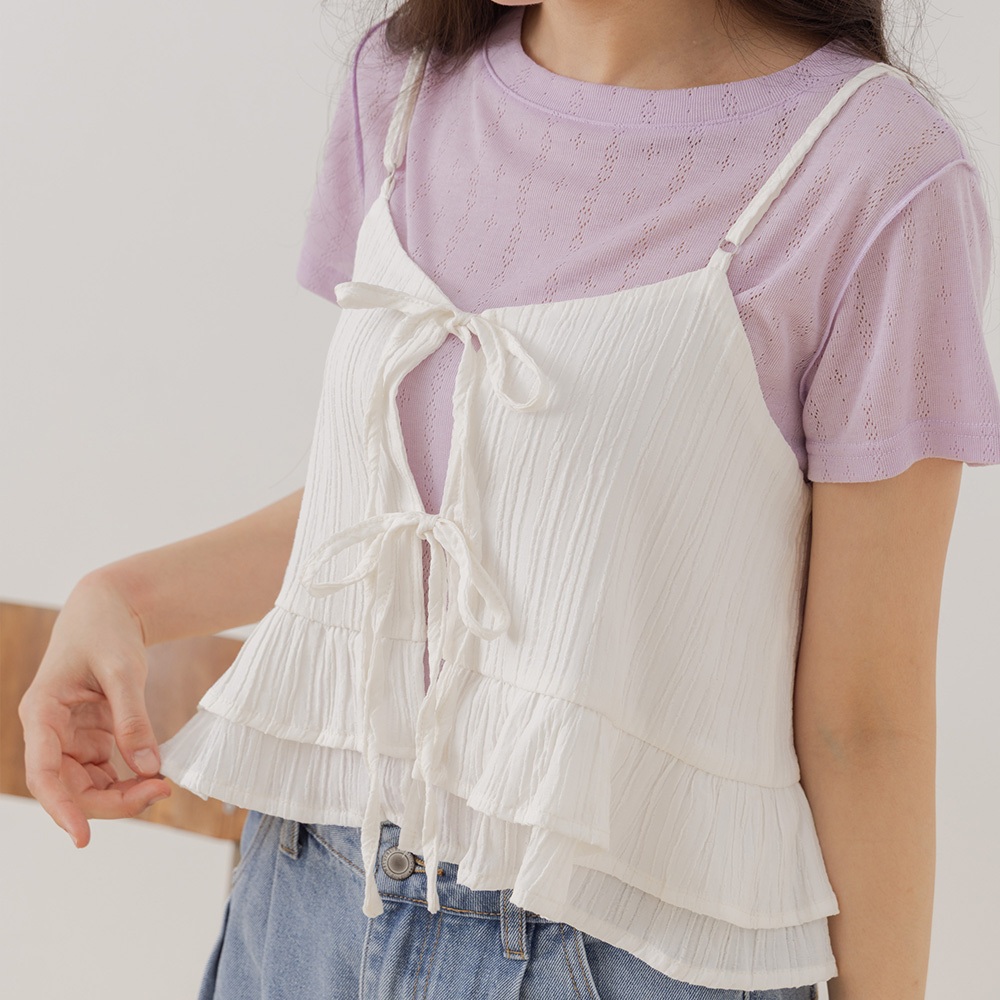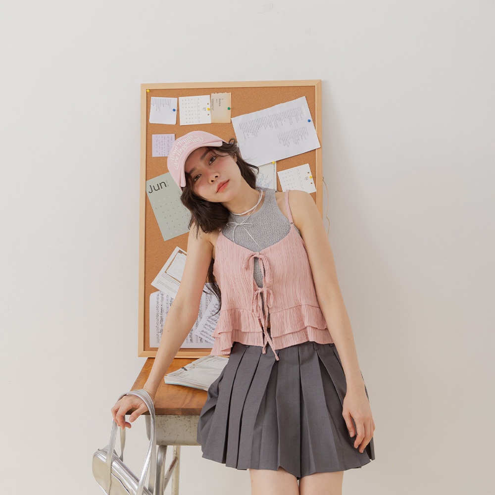 QUEENSHOP_ S 女裝 細褶綁帶荷葉下擺兩面穿背心 三色售 現+預 【01099094】粉|藍|米白Tanks & CamisolesQUEENSHOP