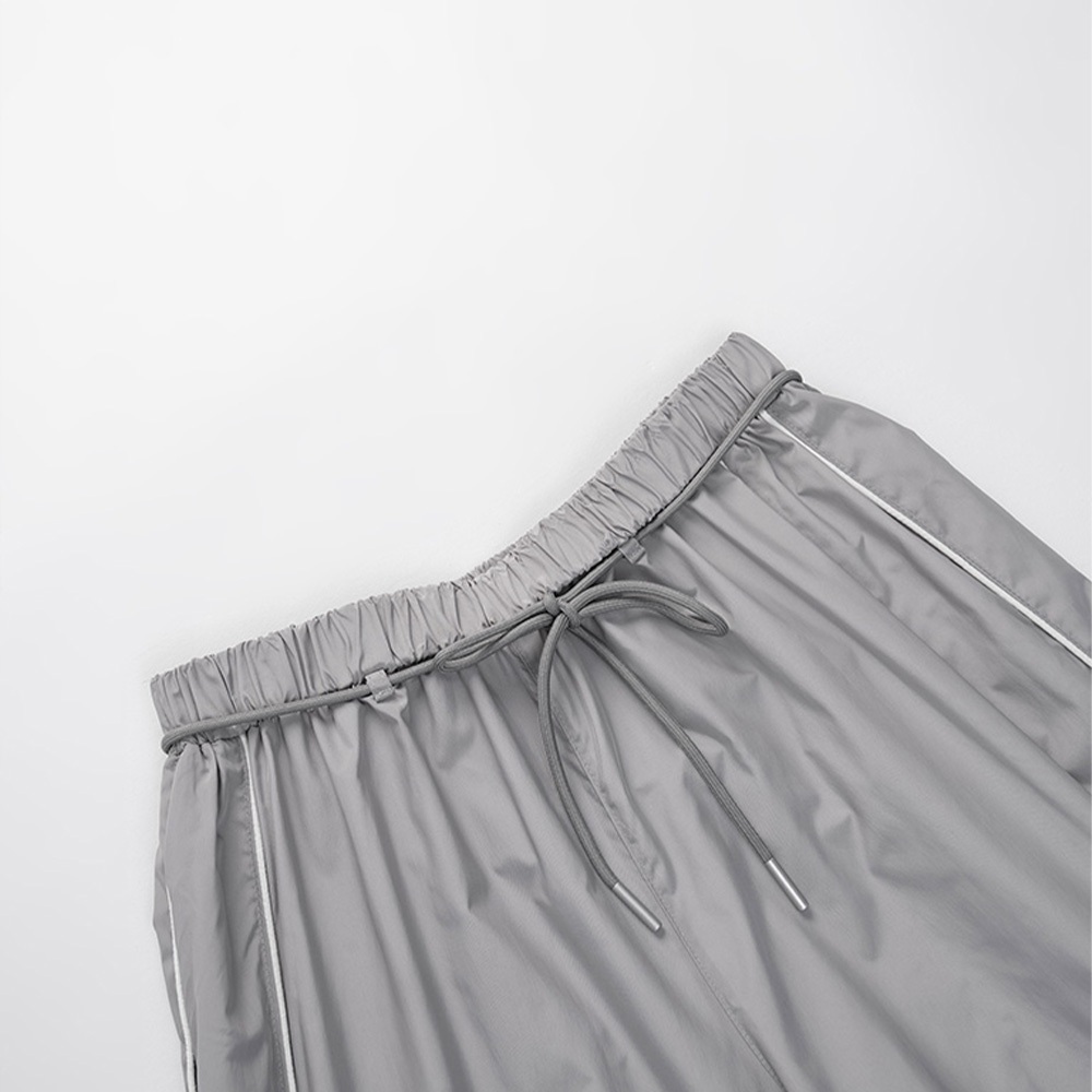 QUEENSHOP_ S 品子聯名 撞色剪接打褶工裝長褲-灰 S/M/L 現+預 【04101964】