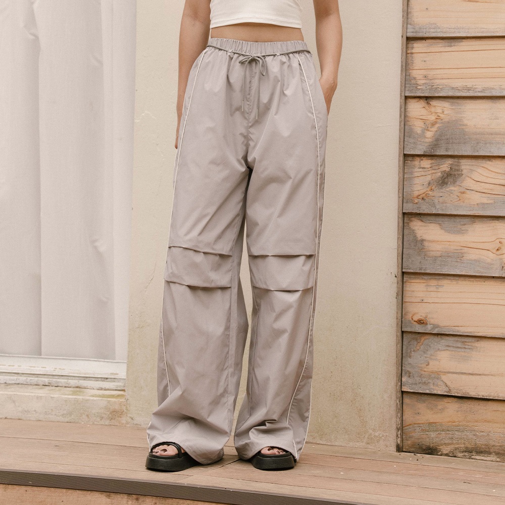 QUEENSHOP_ S 品子聯名 撞色剪接打褶工裝長褲-灰 S/M/L 現+預 【04101964】灰S|灰M|灰LPantsQUEENSHOP