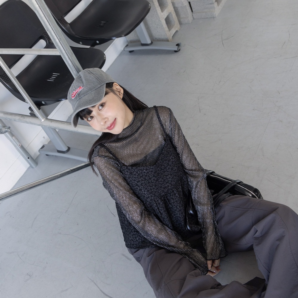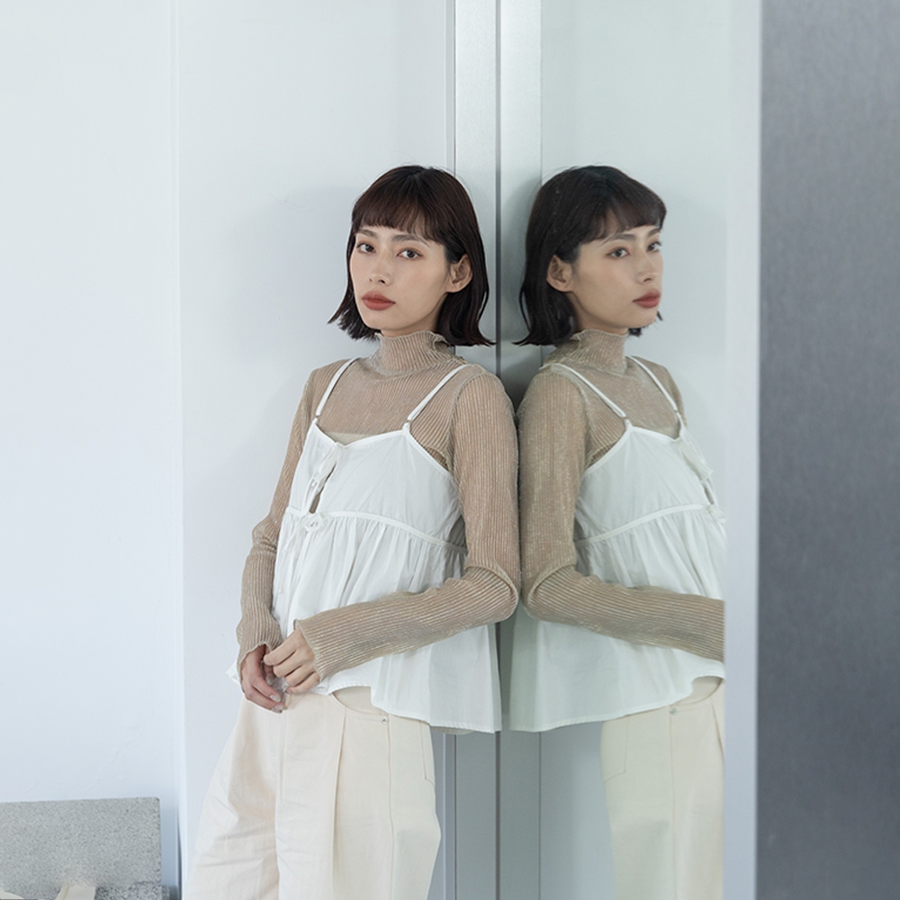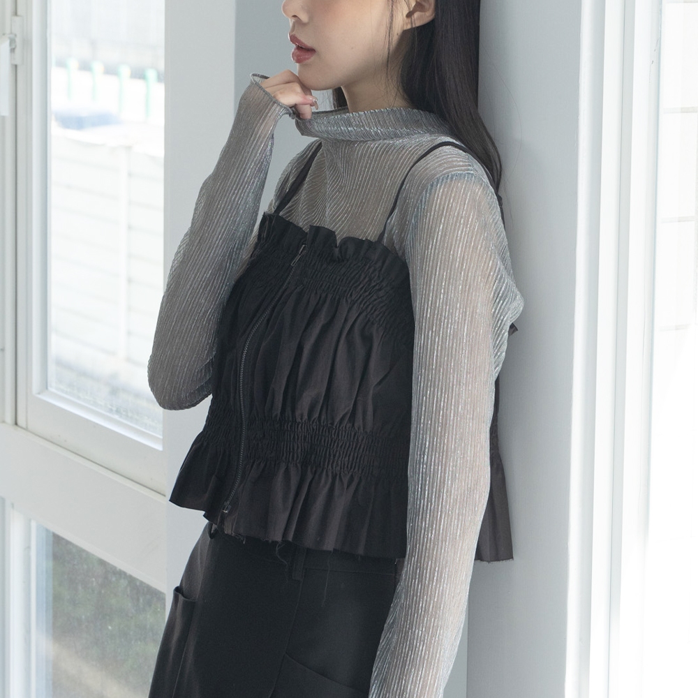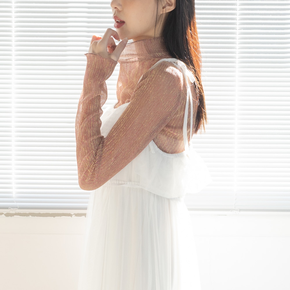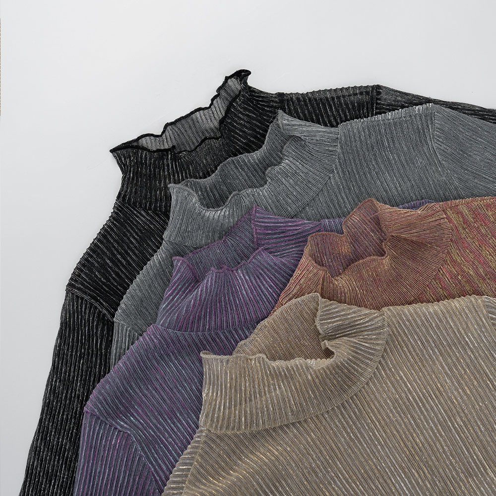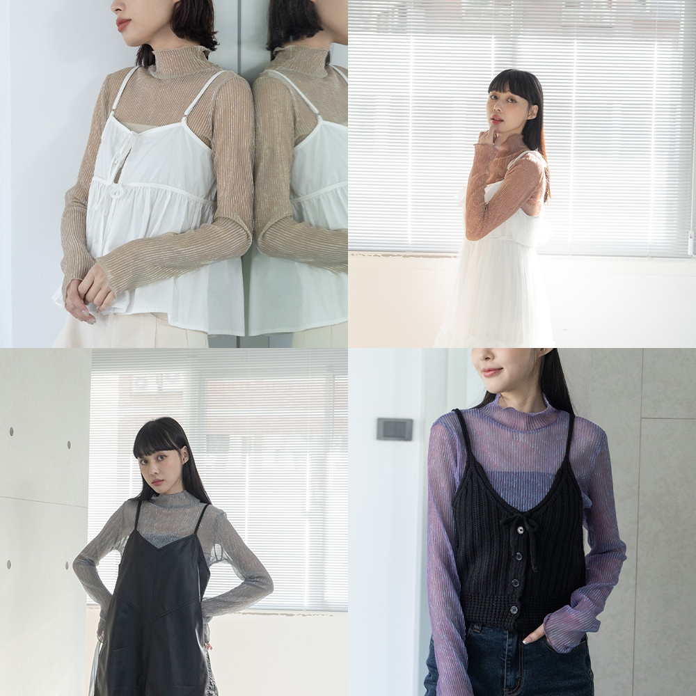 QUEENSHOP_ F 女裝 長袖 光澤坑條高領透膚上衣 五色售 現+預 【01098486】黑|粉|紫|杏|灰白OthersQUEENSHOP