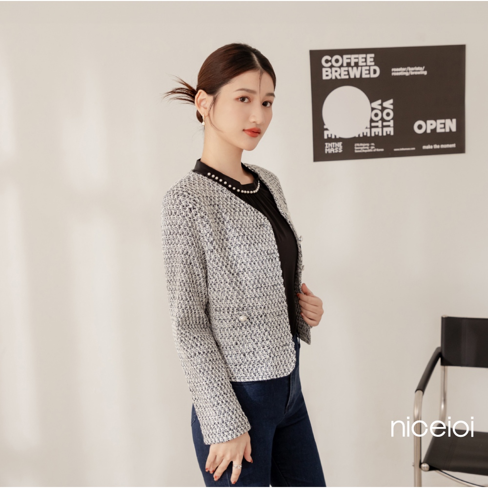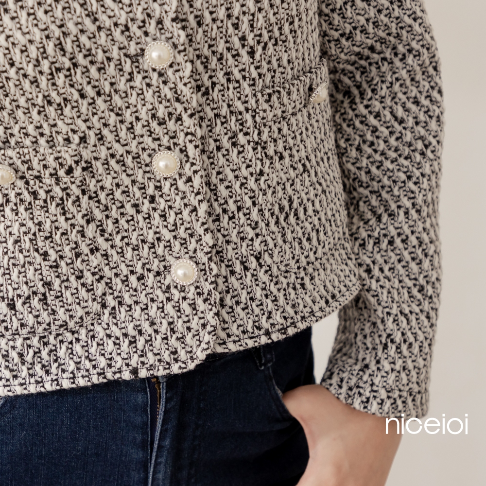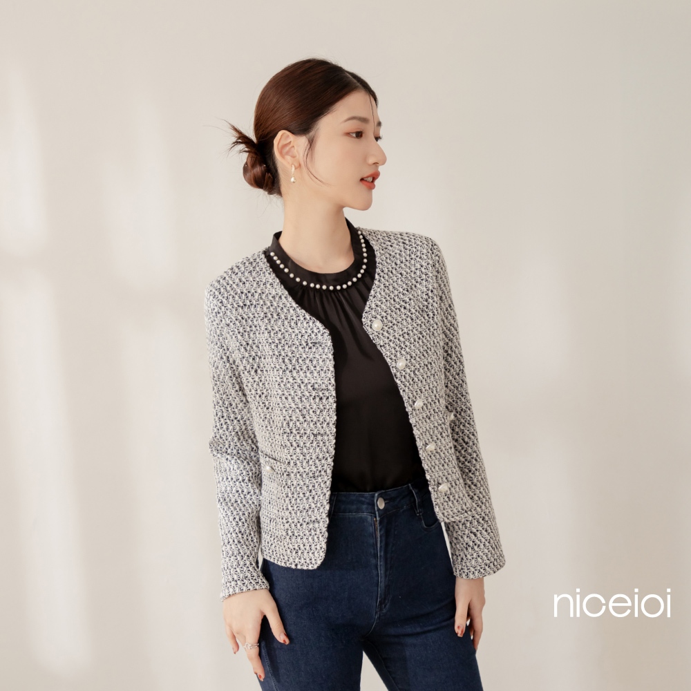 niceioi【特惠】富裕小香珍珠口袋無領外套 女裝黑,XL|黑,S|黑,M|黑,LBlazersniceioi 官方旗艦店