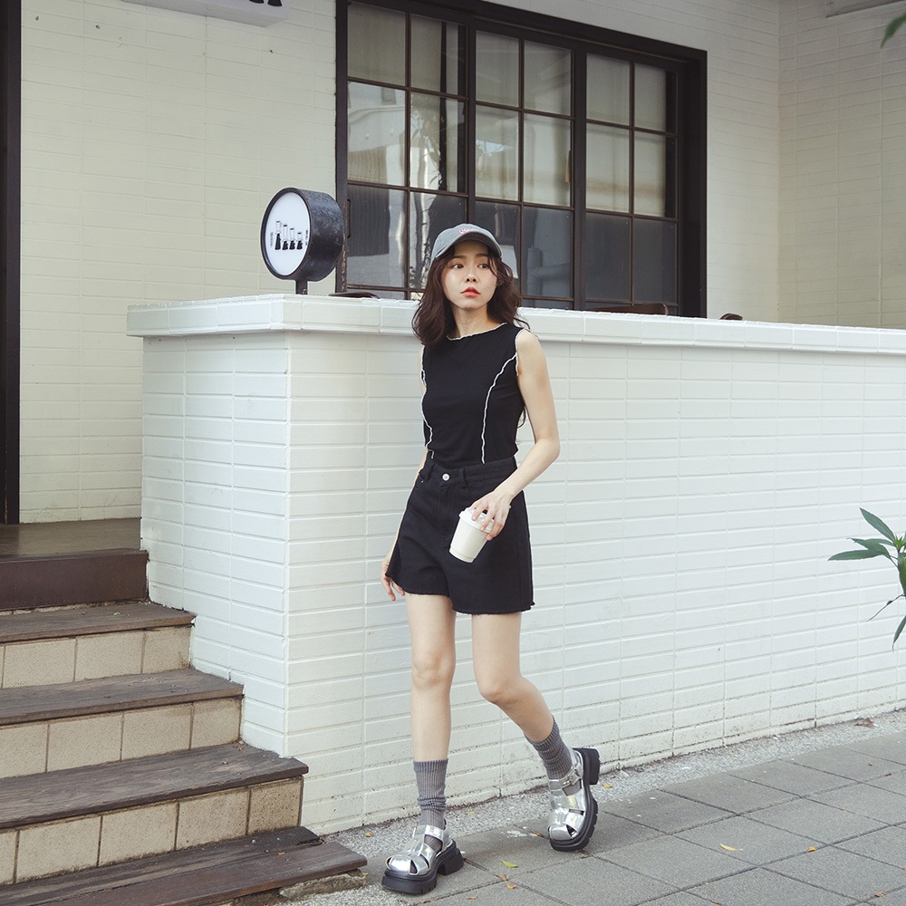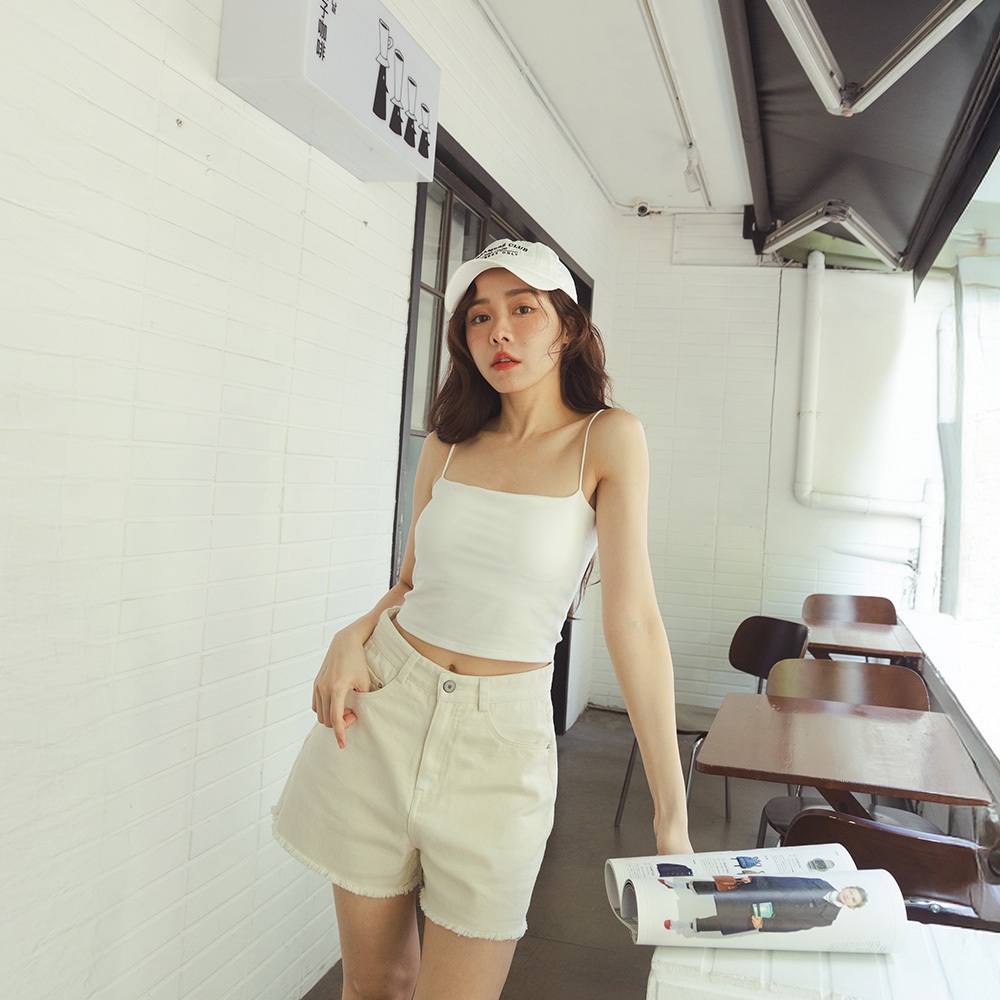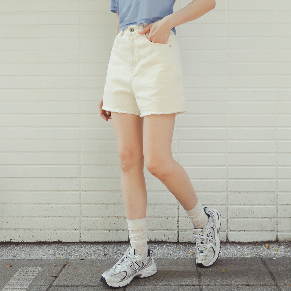 QUEENSHOP_ S 女裝 經典鬚邊設計牛仔短褲 兩色售S/M/L 現+預 【04130284】黑S|黑M|黑L|米白S|米白M|米白LShortsQUEENSHOP