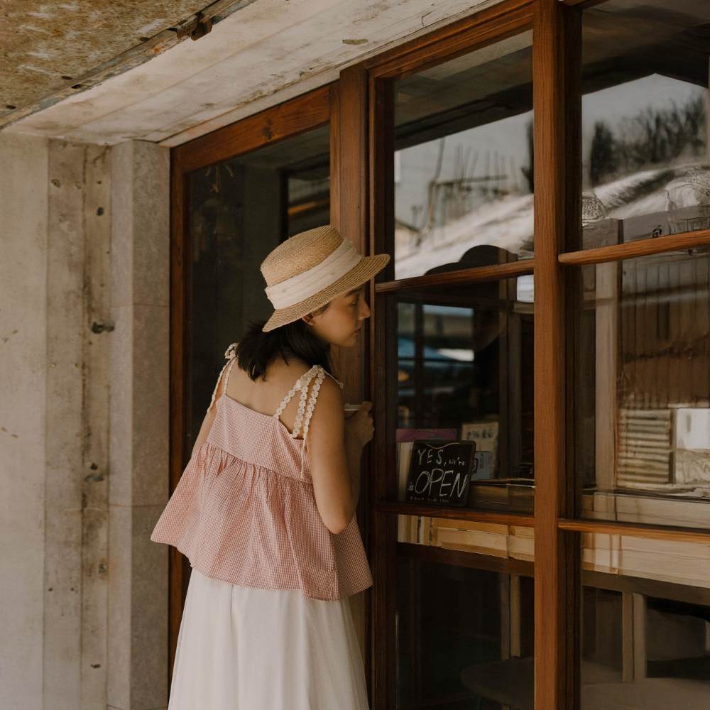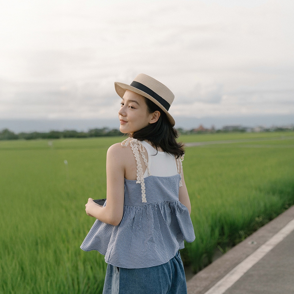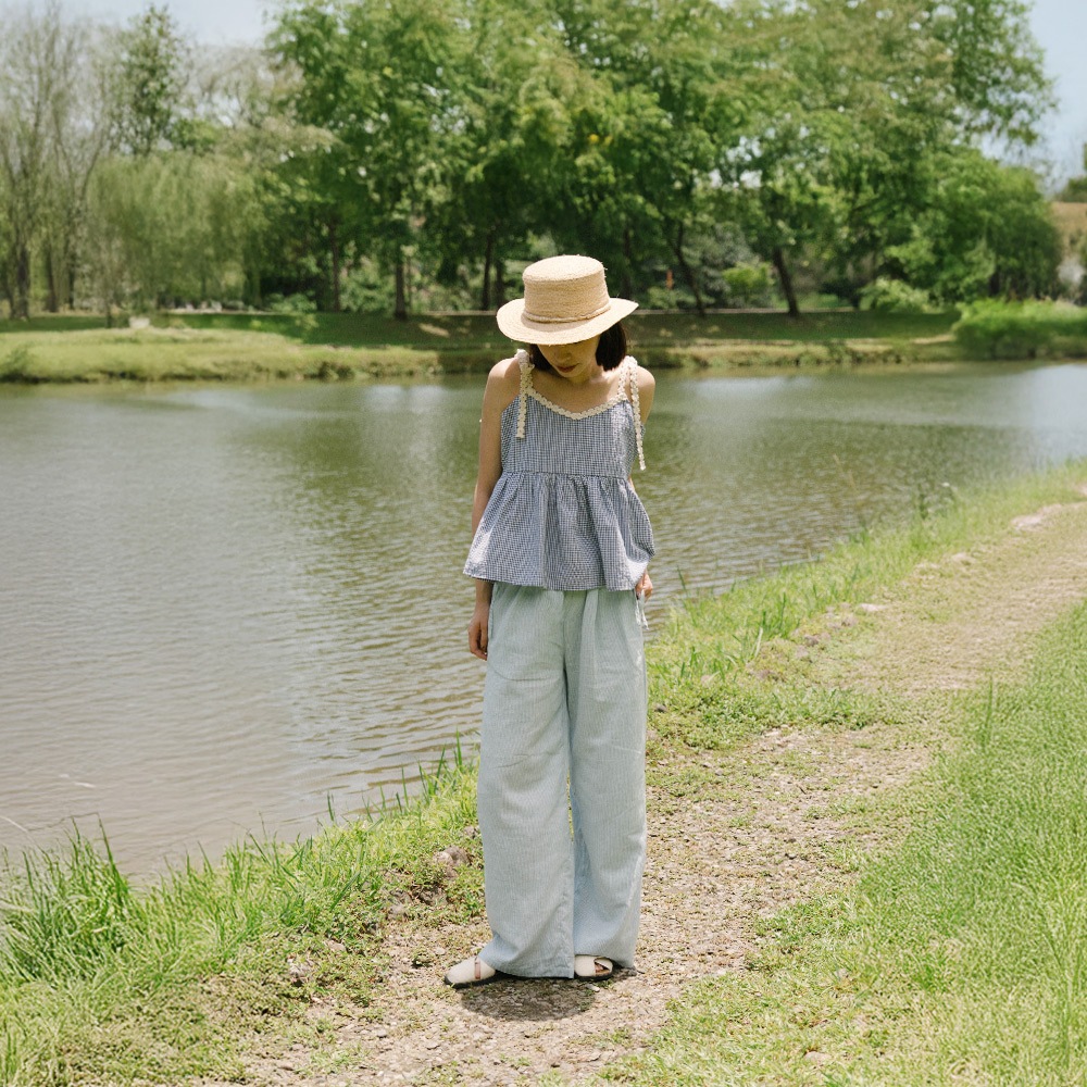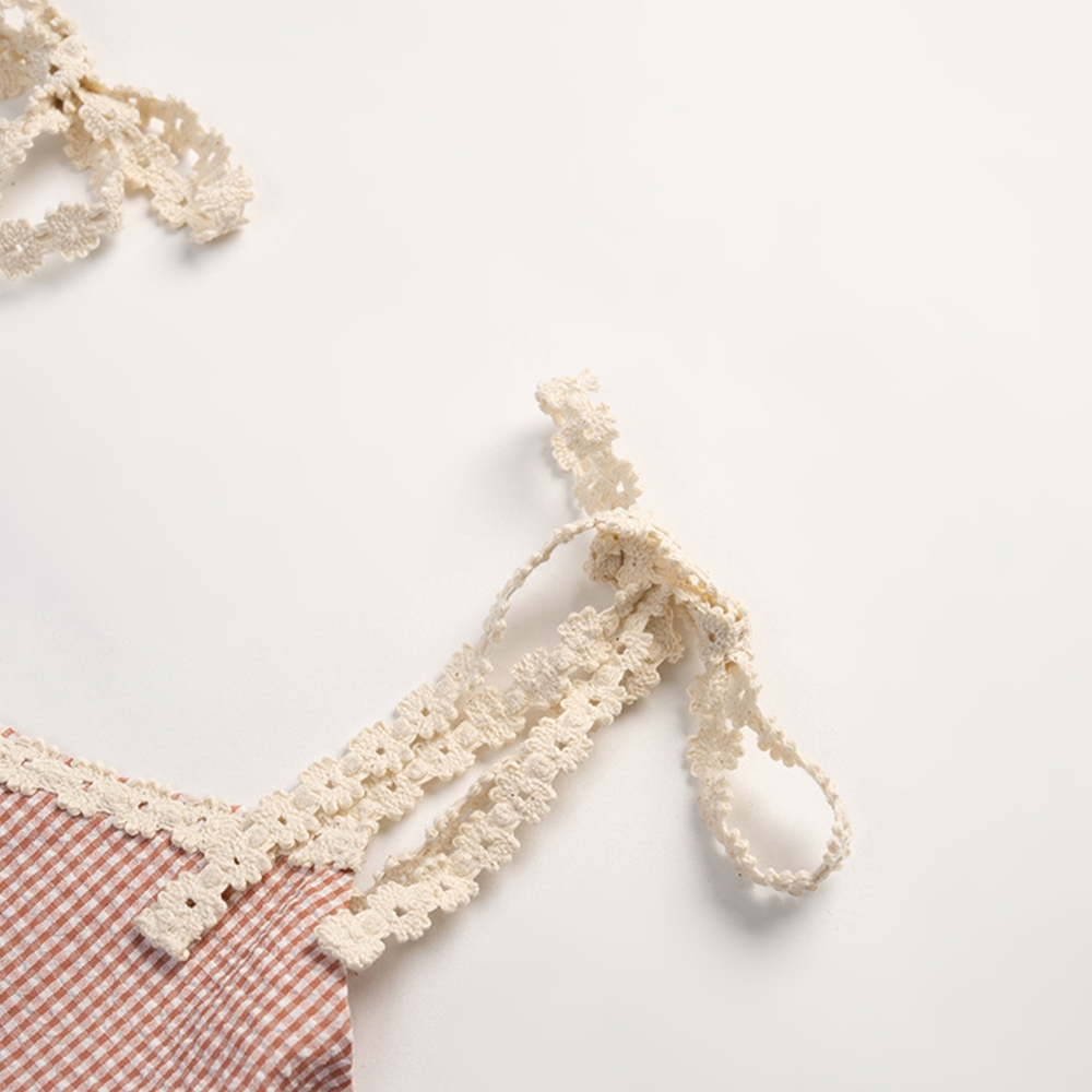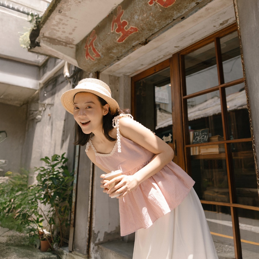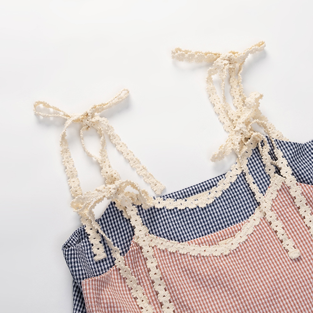 QUEENSHOP_ S 女裝 編織花花綁帶格紋傘擺背心 兩色售 現+預 【01099054】粉|深藍Tanks & CamisolesQUEENSHOP