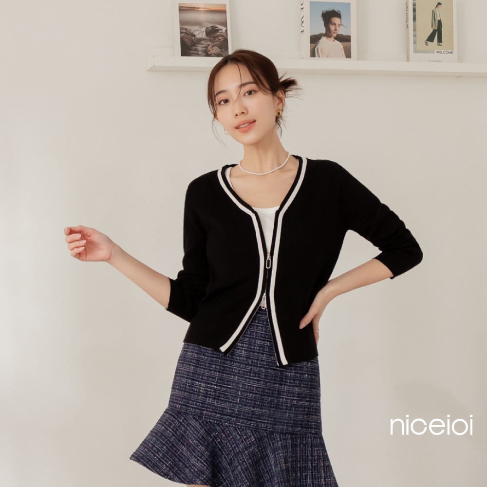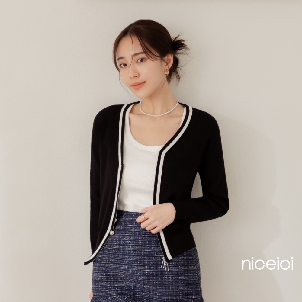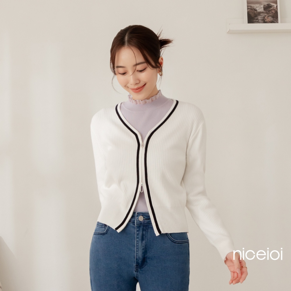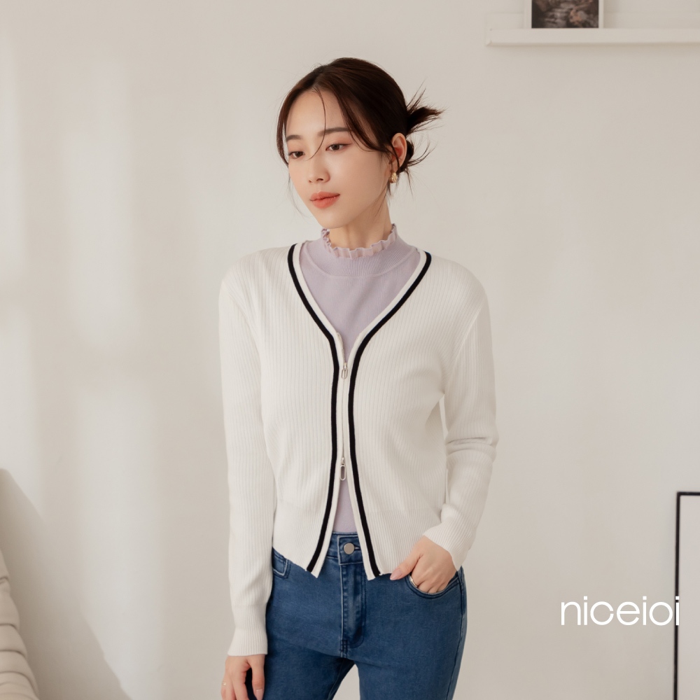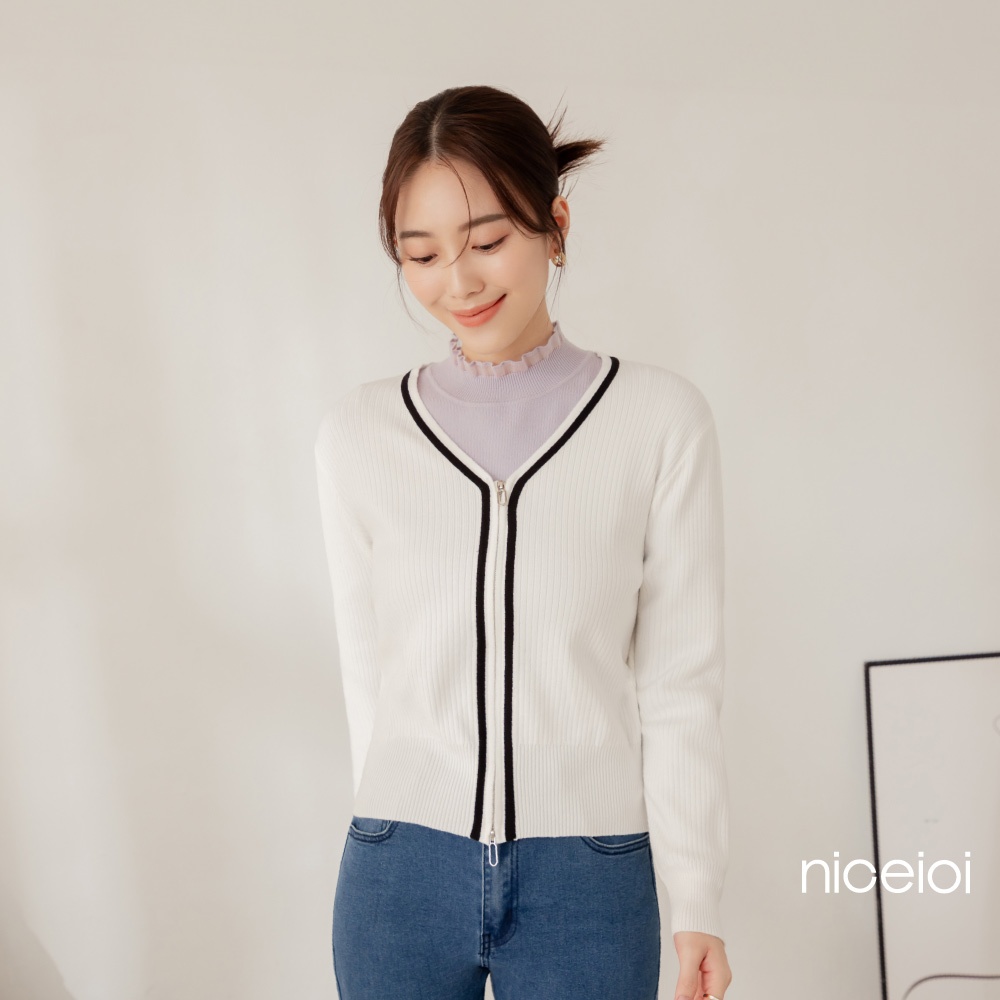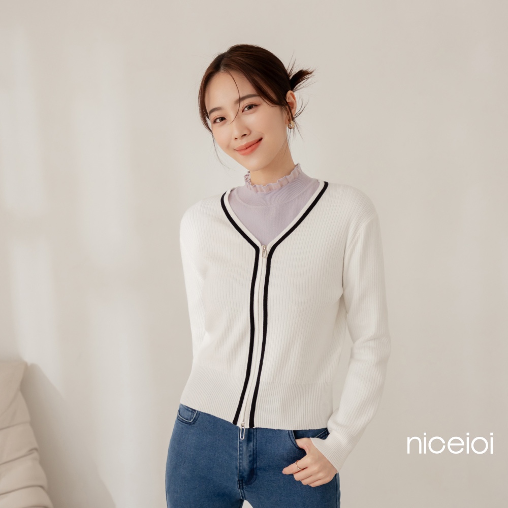 niceioi【特惠】針織外套 外套 開襟外套 黑色 [溫柔歐膩撞色雙向拉鍊針織外套] 女裝白,F|黑,Fniceioi 官方旗艦店