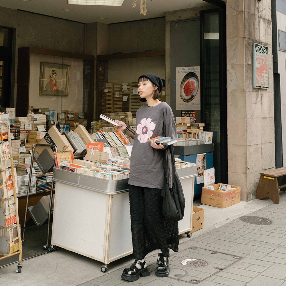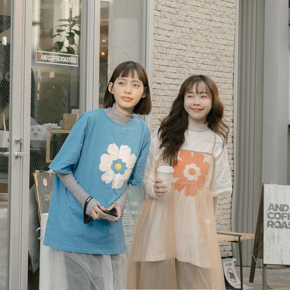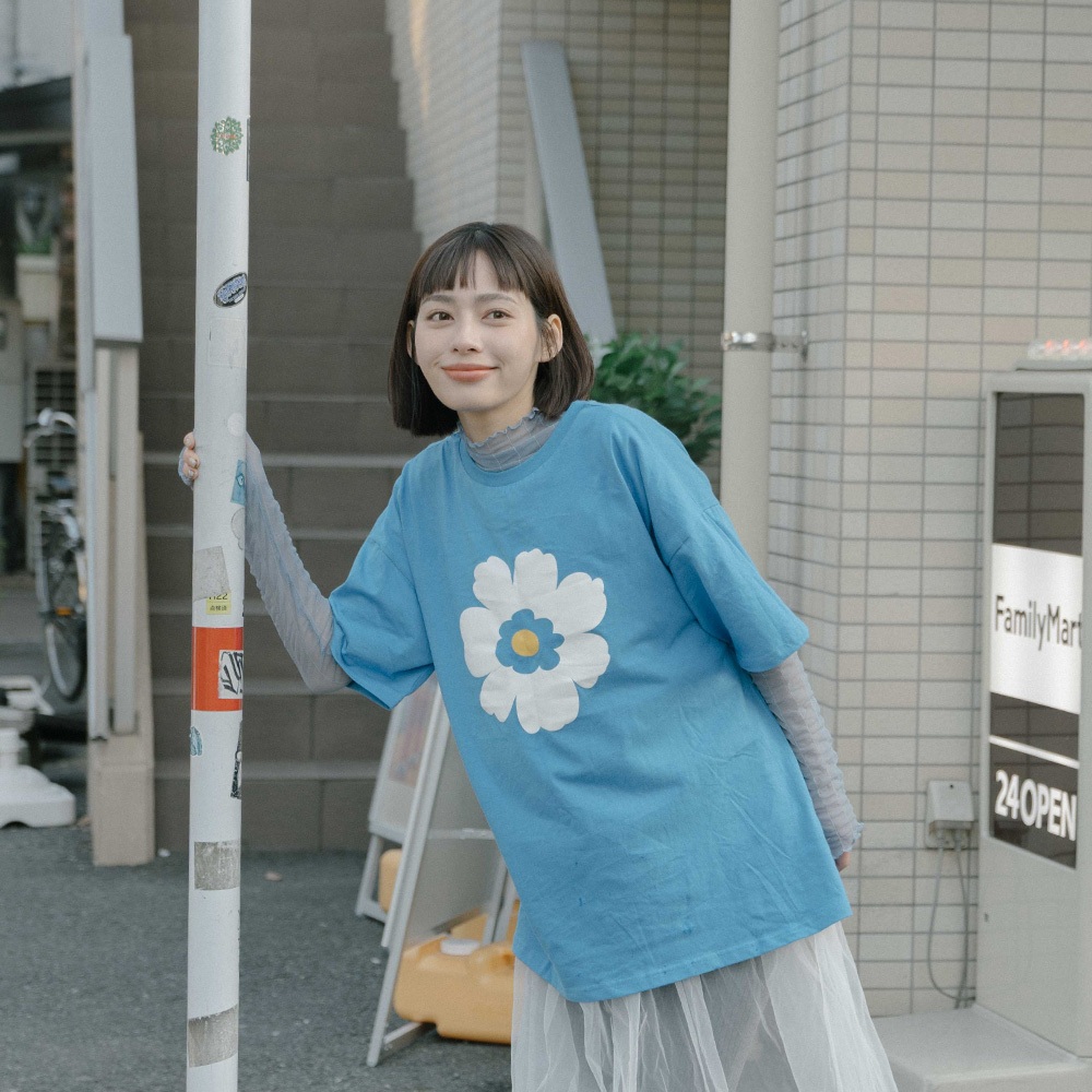 QUEENSHOP_ S 女裝 短袖 花花印圖寬版短袖上衣 四色售 現+預 【01190171】白|藍|紫|深灰T-shirtsQUEENSHOP