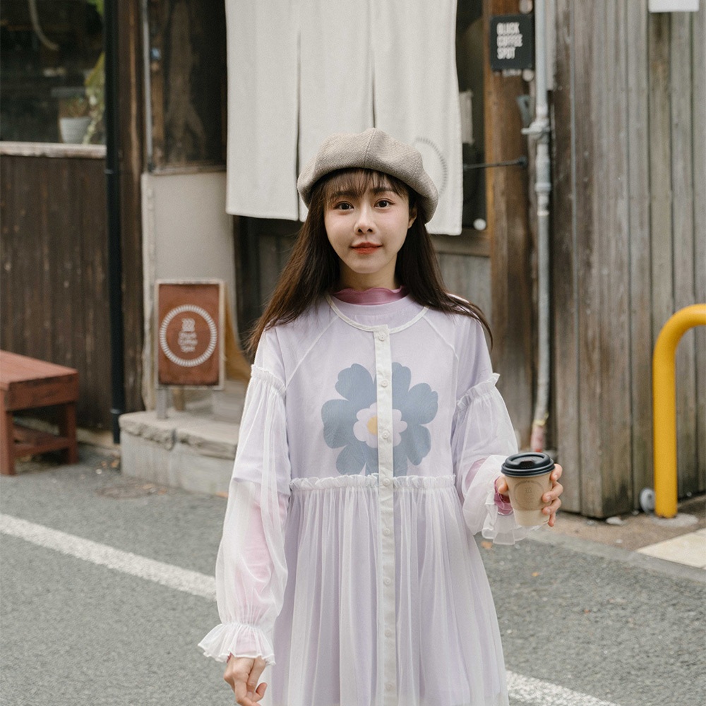 QUEENSHOP_ S 女裝 方領荷葉肩帶設計傘襬長洋裝 兩色售 現+預 【01086996】紫|米白QUEENSHOP