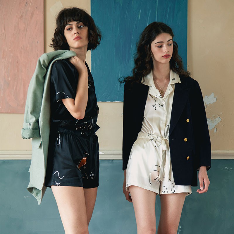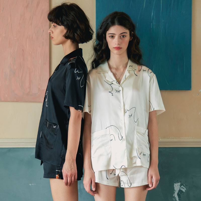 Not Just Pajama真絲印花居家服/女生睡衣/休閒服/桑蠶絲居家服套裝/英國品牌黑色,S|黑色,M|黑色,L|白色,S|白色,M|白色,L|白色,XL|黑色,XLPajamasNot Just Pajama 官方商城