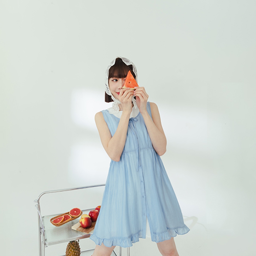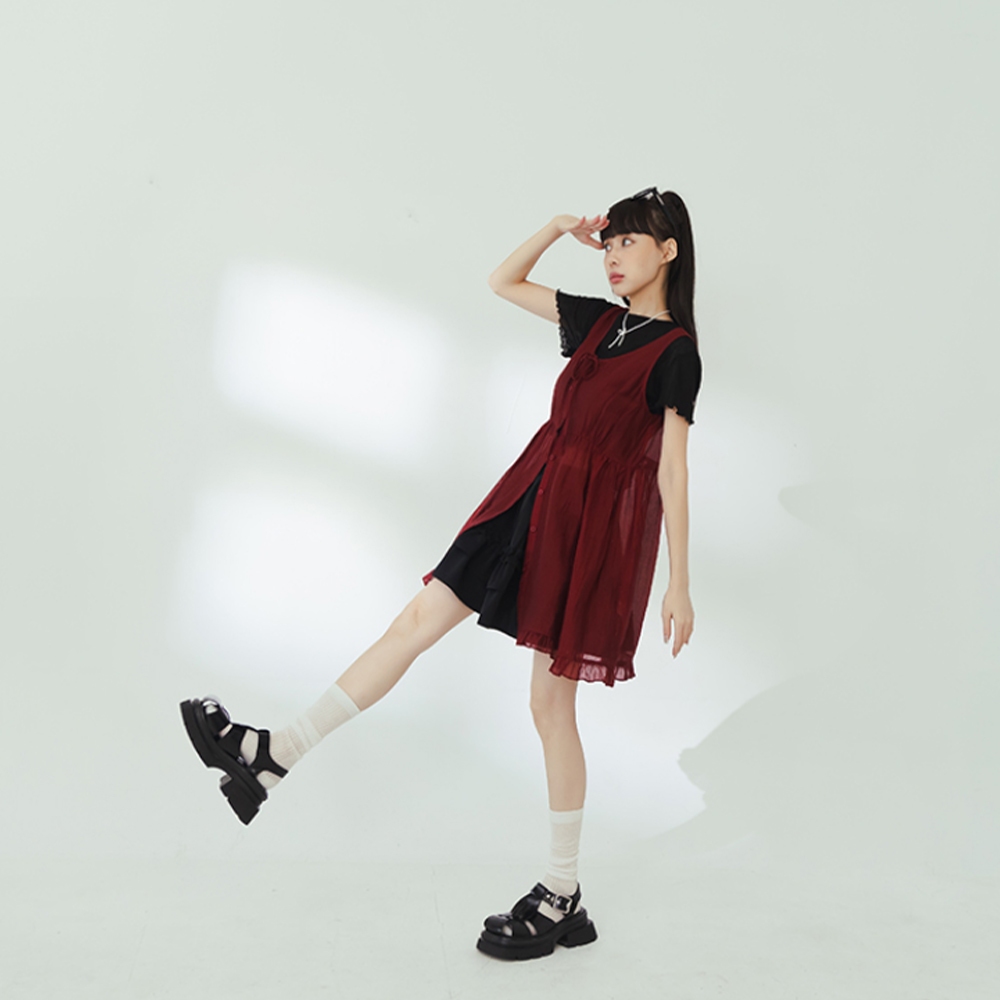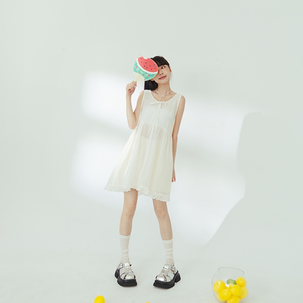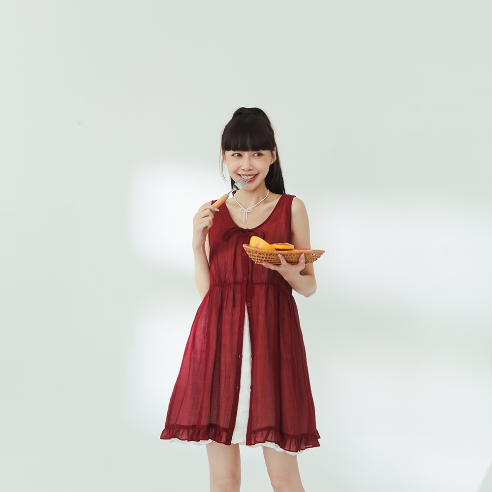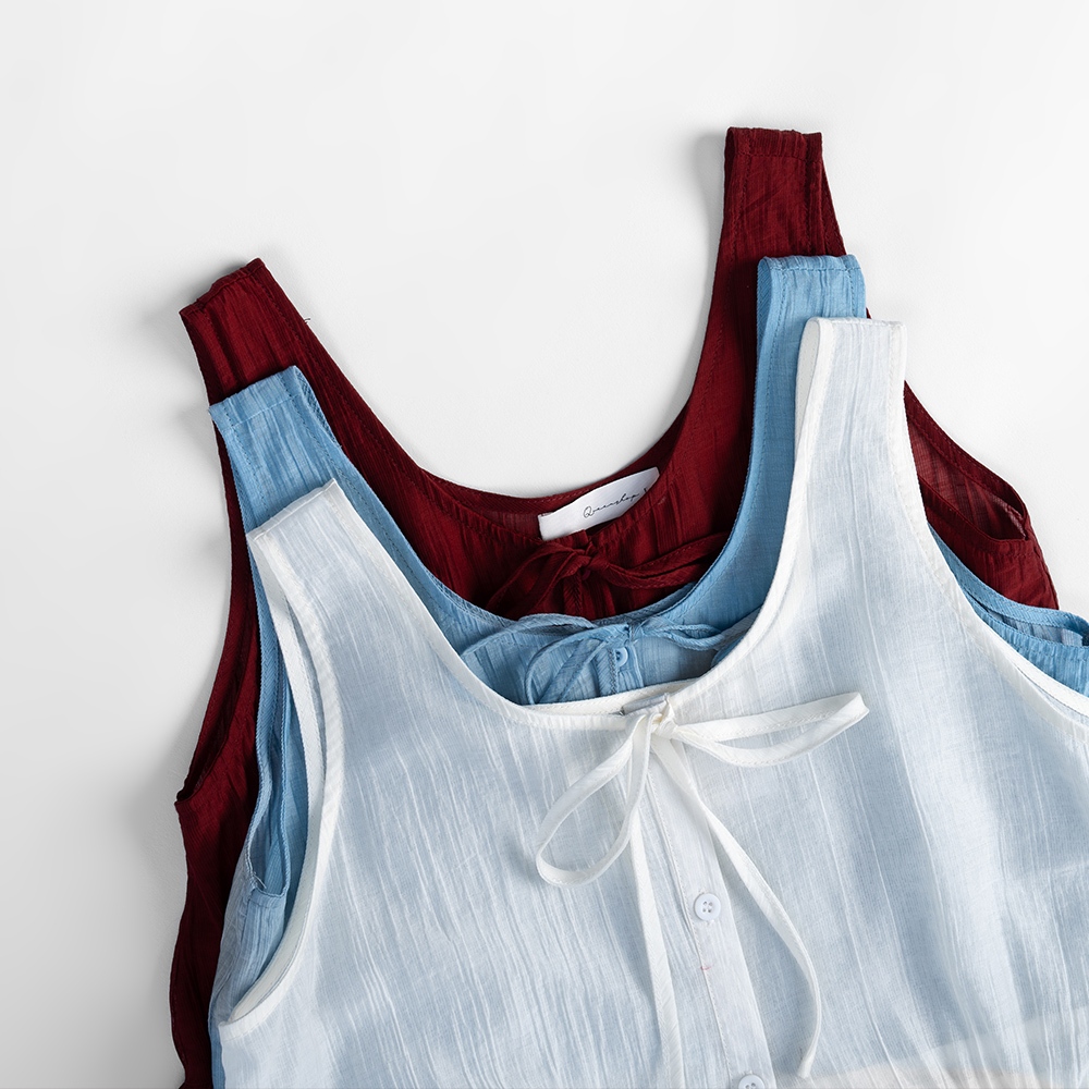 QUEENSHOP_ S 女裝 綁帶多層次蛋糕紗罩衫背心 三色售 現+預 【01098644】