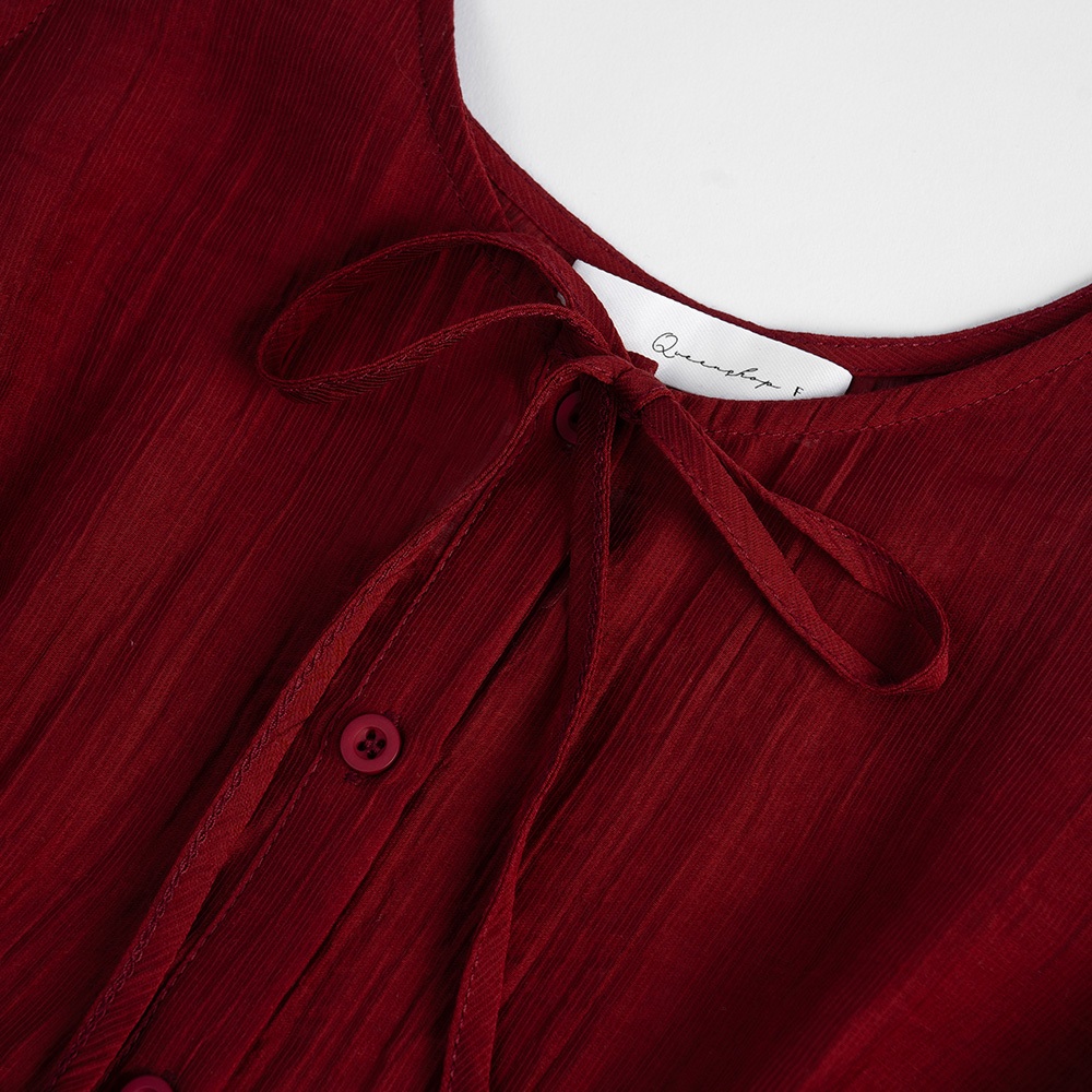 QUEENSHOP_ S 女裝 排釦綁帶荷葉下擺罩衫 三色售 現+預 【01098944】藍|米白|酒紅OthersQUEENSHOP